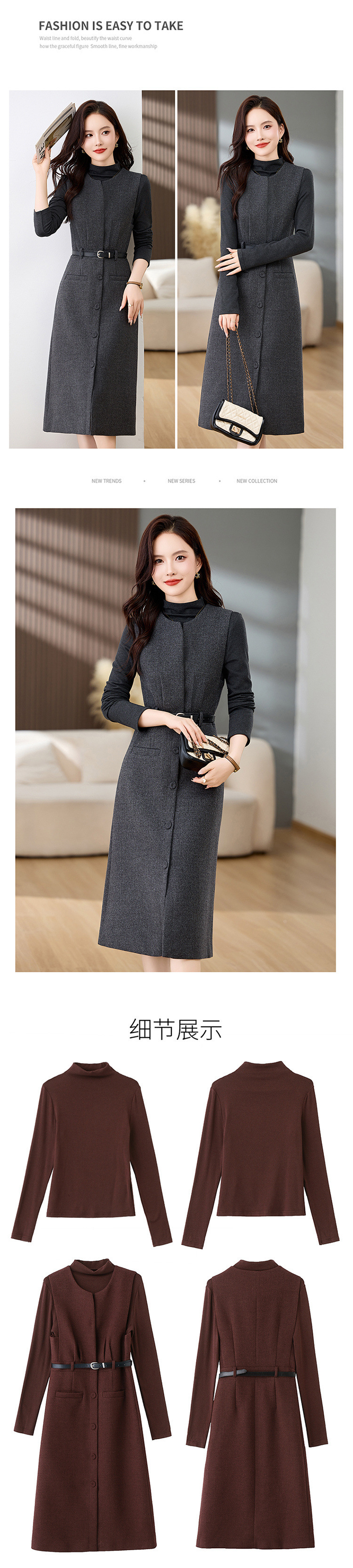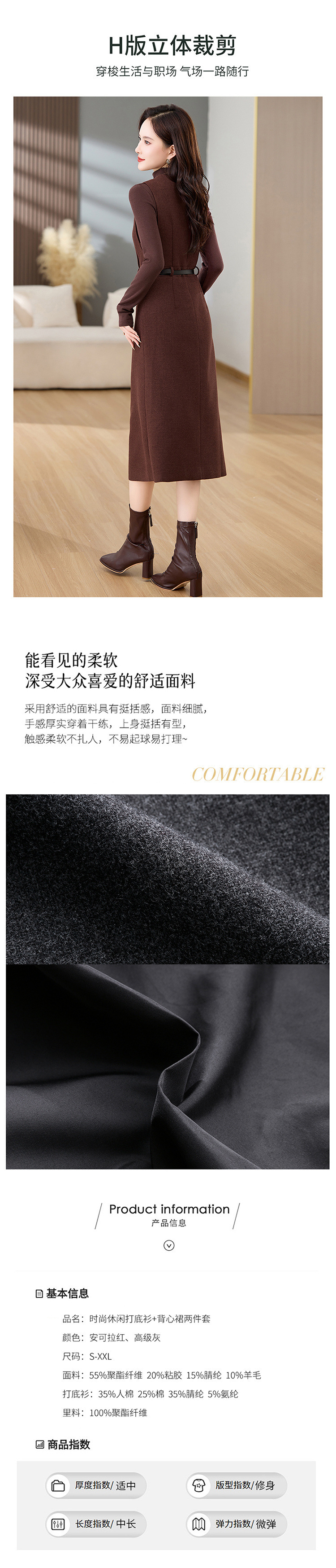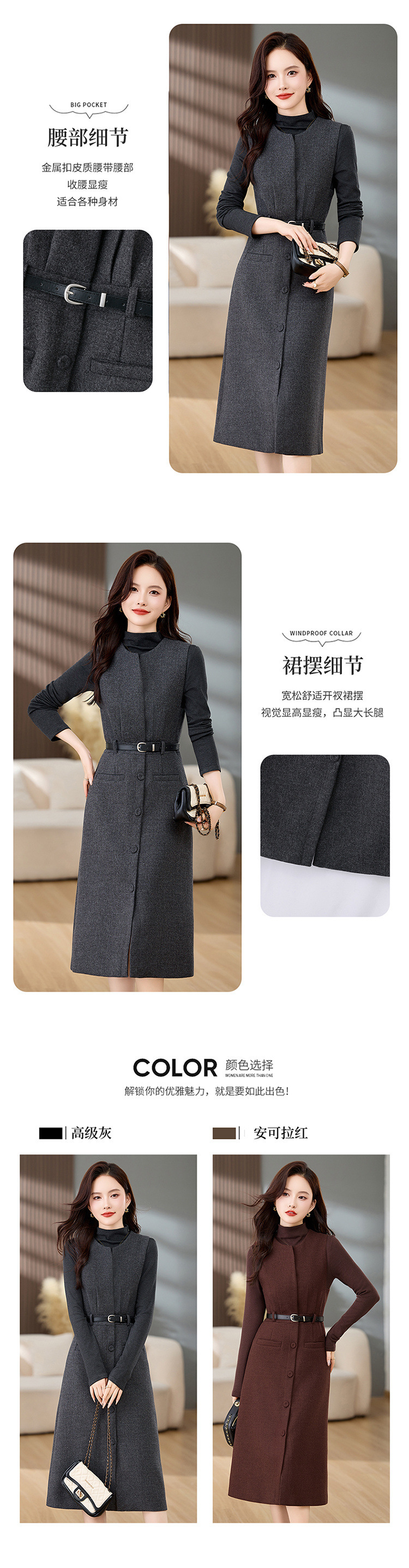 高级感气质羊毛呢加厚背带马甲连衣裙两件套女秋冬新款套装裙MEIQIN1835