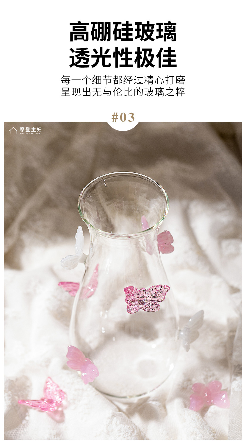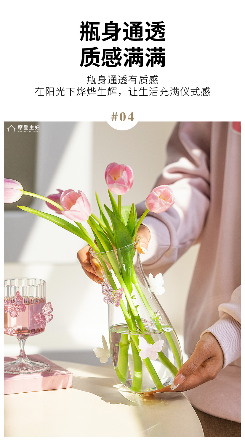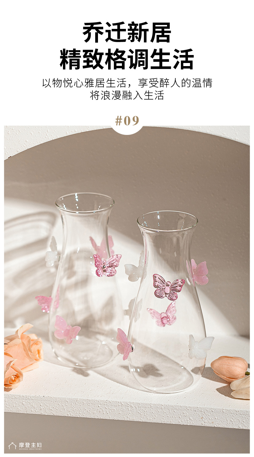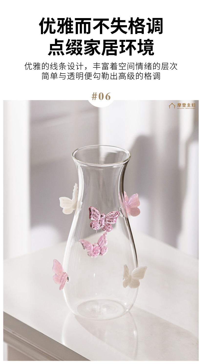 摩登主妇蝴蝶玻璃花瓶摆件客厅水养插花轻奢高级创意小众透明花瓶