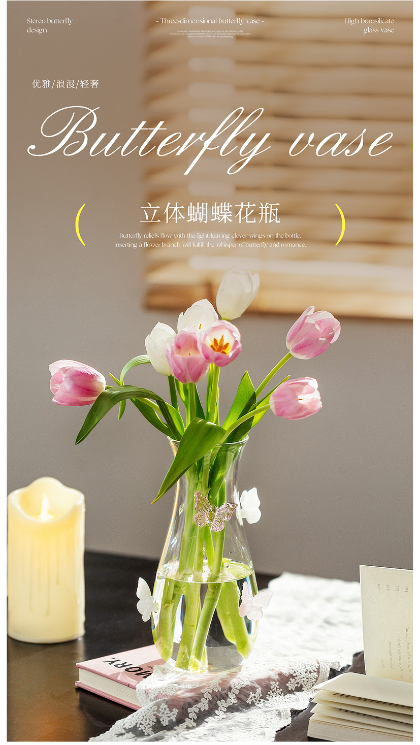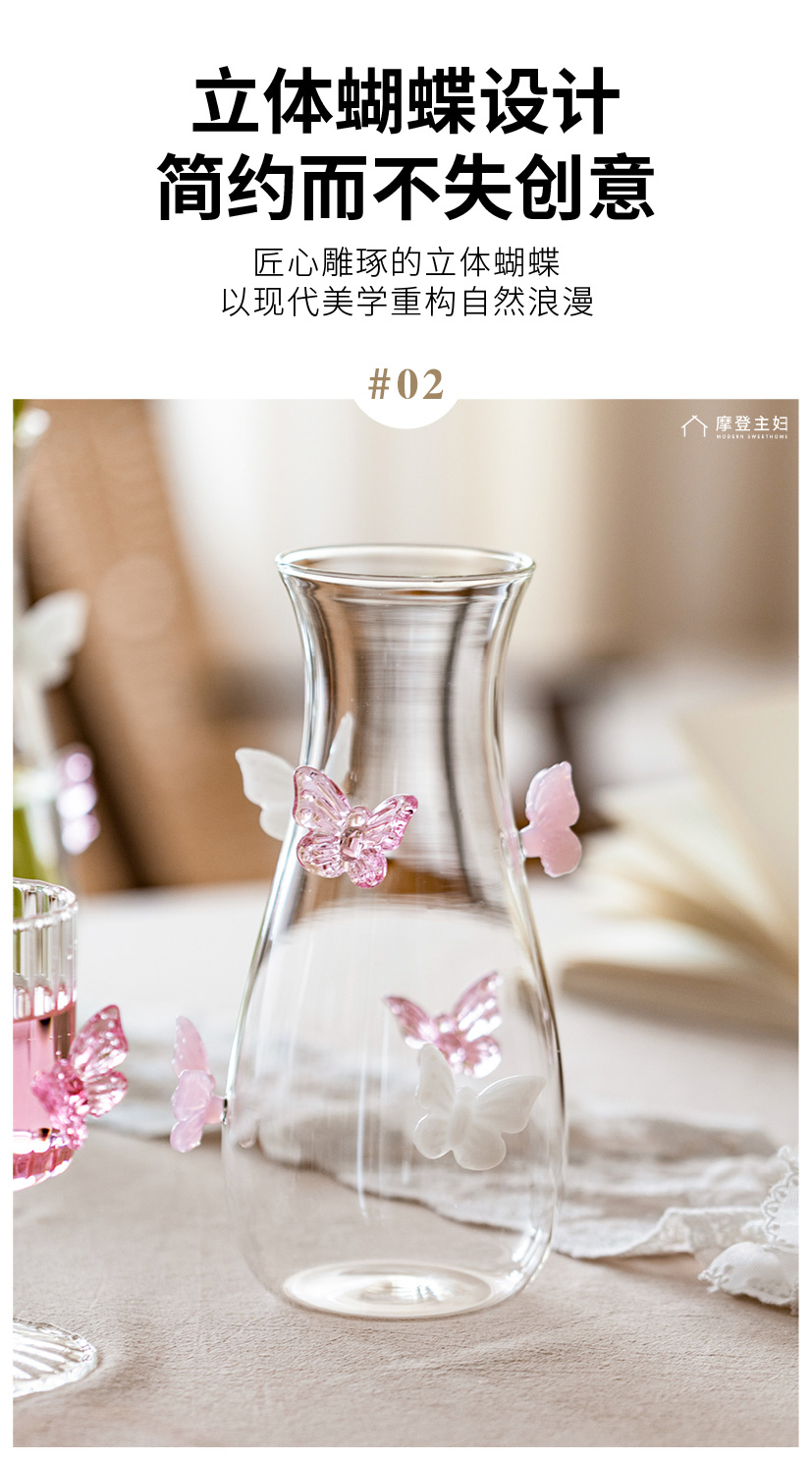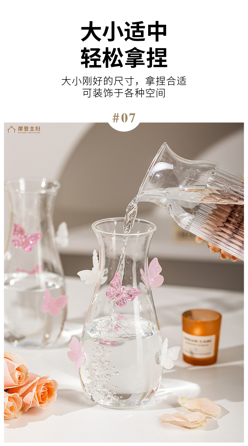 摩登主妇蝴蝶玻璃花瓶摆件客厅水养插花轻奢高级创意小众透明花瓶