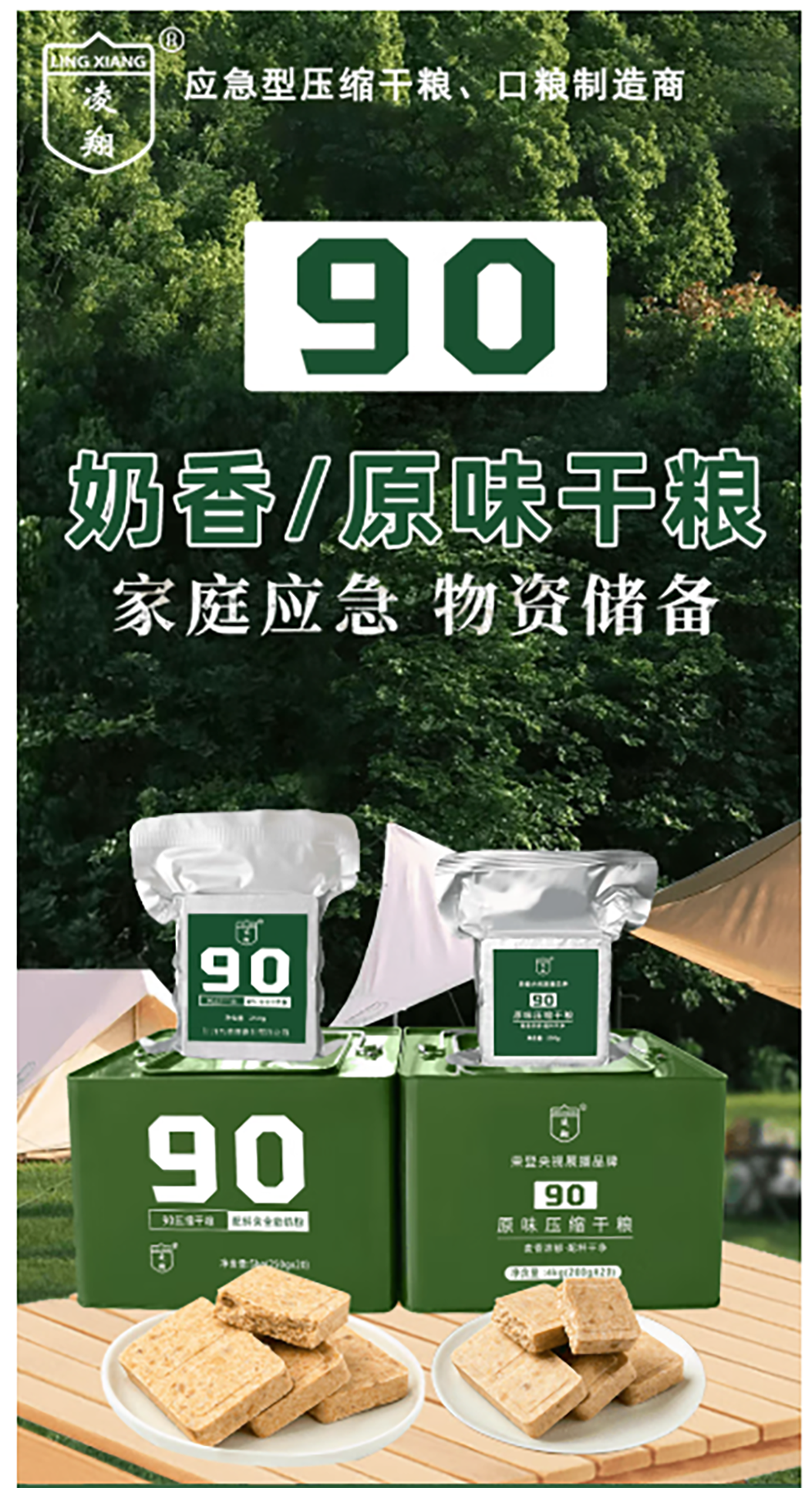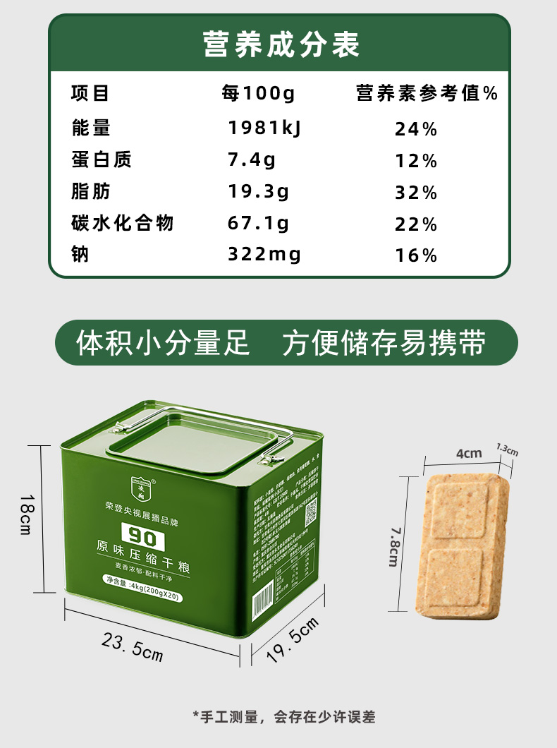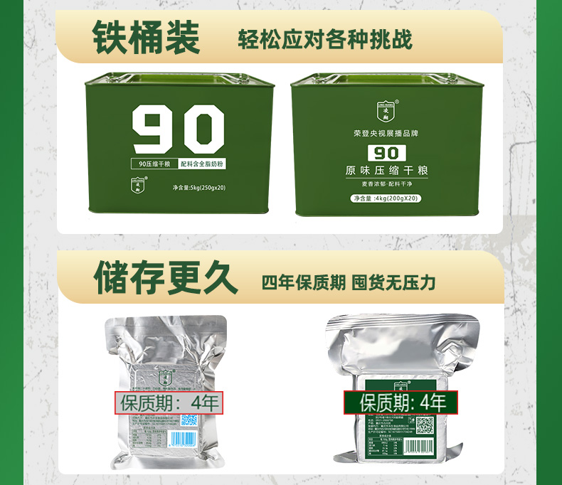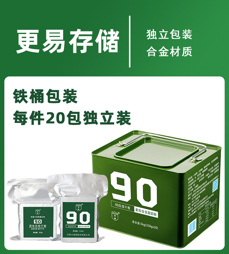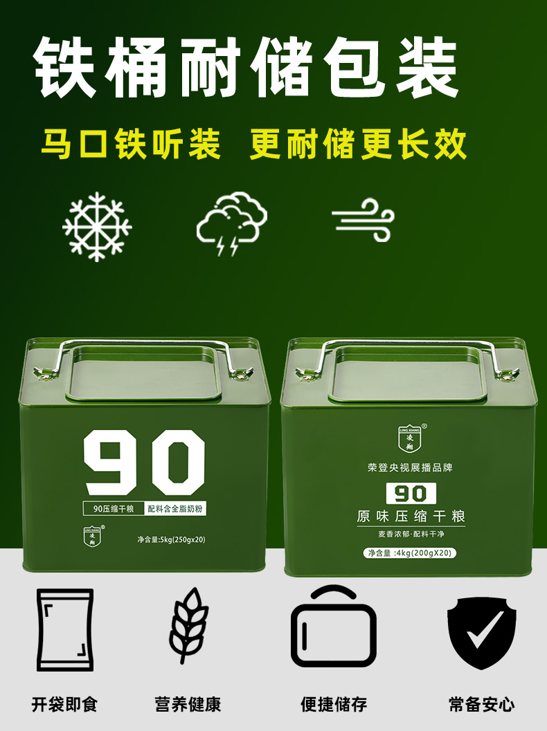 凌翔90压缩干粮250g压缩饼干铁桶户外即食代餐早餐饼干