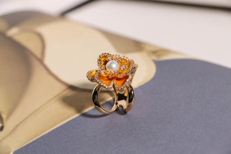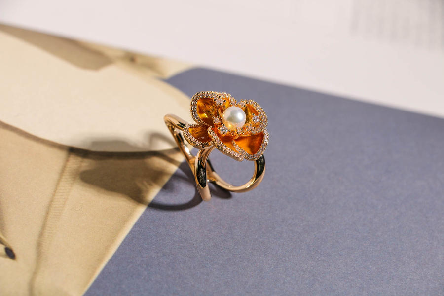 甄珠贝 山茶花天然淡水珍珠丝巾扣