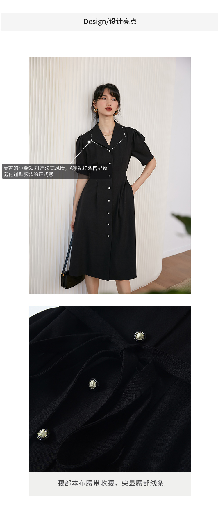 经典赫本风小黑裙 经典的赫本风小黑裙,上演着黑色的经典 有40年代的轻复古风潮,洒脱尖翻领 优雅小V释放出空间让配饰来补给所有的小细节 更有态度和力量 一眼抓住眼球的法式连衣裙 人群中自带光芒,通勤日常都可轻松驾驭! 延续了极简主义, 经典实穿又大方 复古的小翻领,打造法式风情 腰部本布腰带收腰,微收的腰身,穿上显瘦 可单穿,可搭配风衣做为内搭都是不错的选择。 |