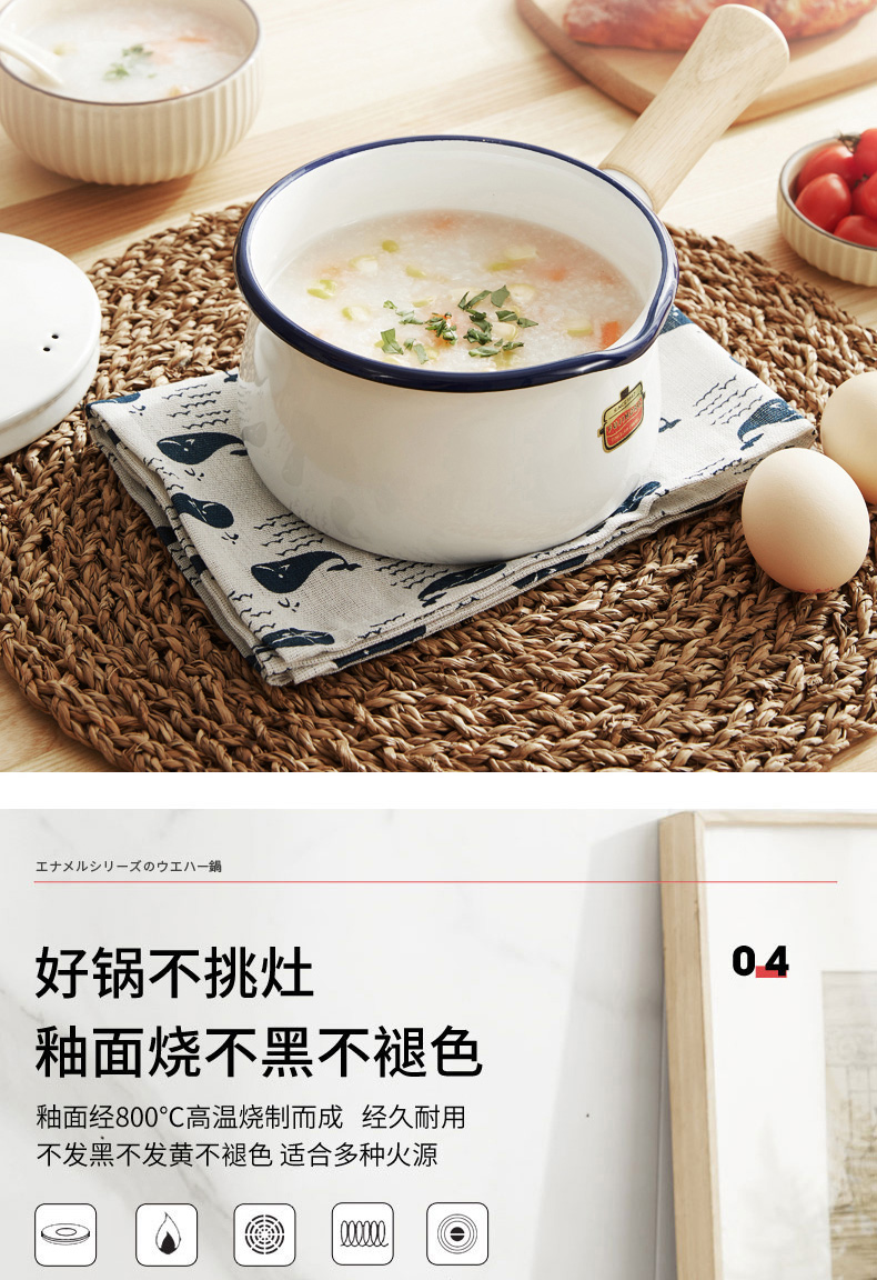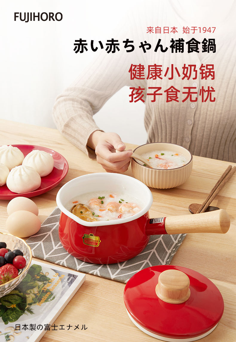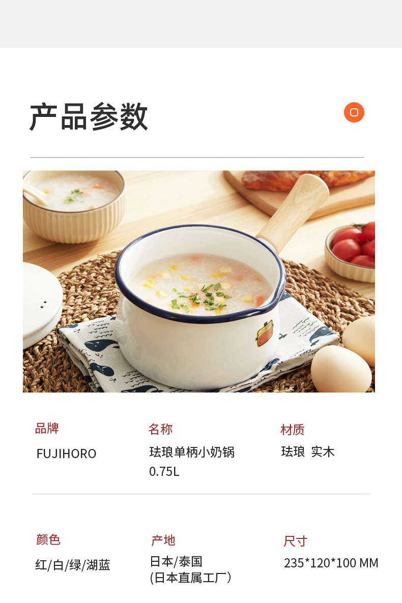 【FUJIHORO 富士珐琅】纯色系列木柄珐琅奶锅1.2L(附盖)