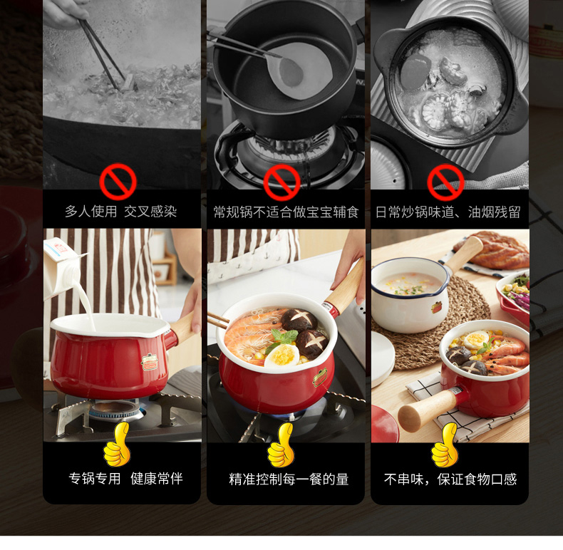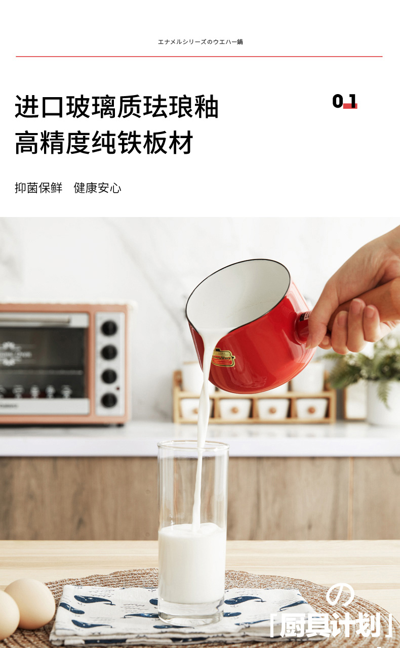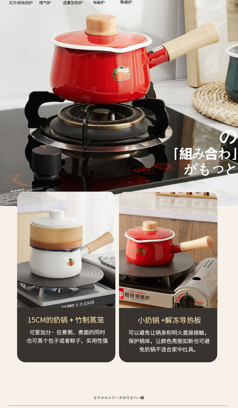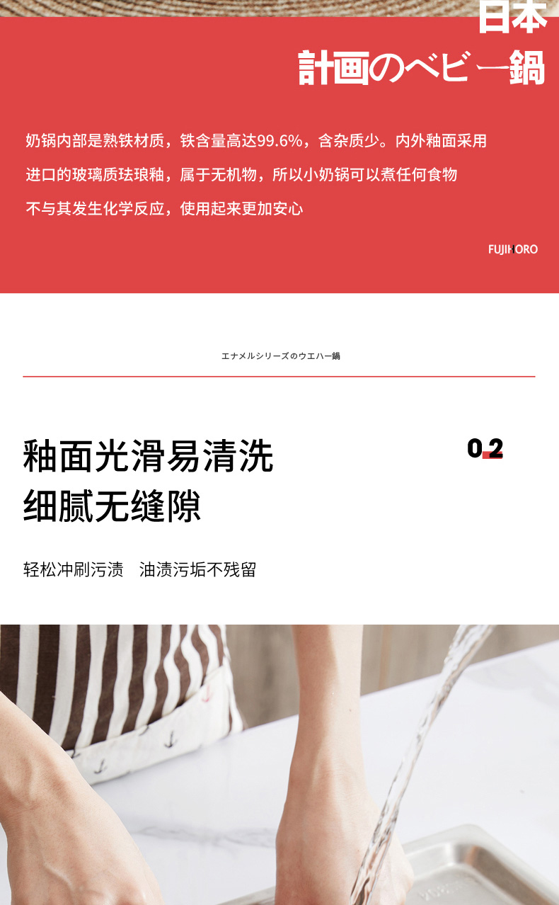 【FUJIHORO 富士珐琅】纯色系列木柄珐琅奶锅1.2L(附盖)