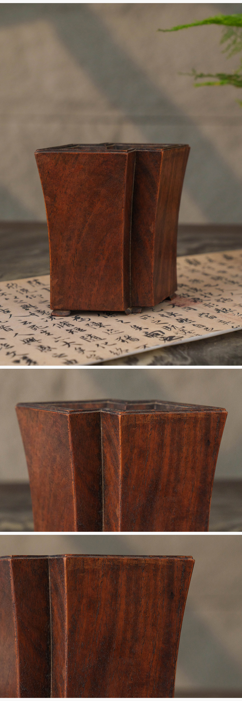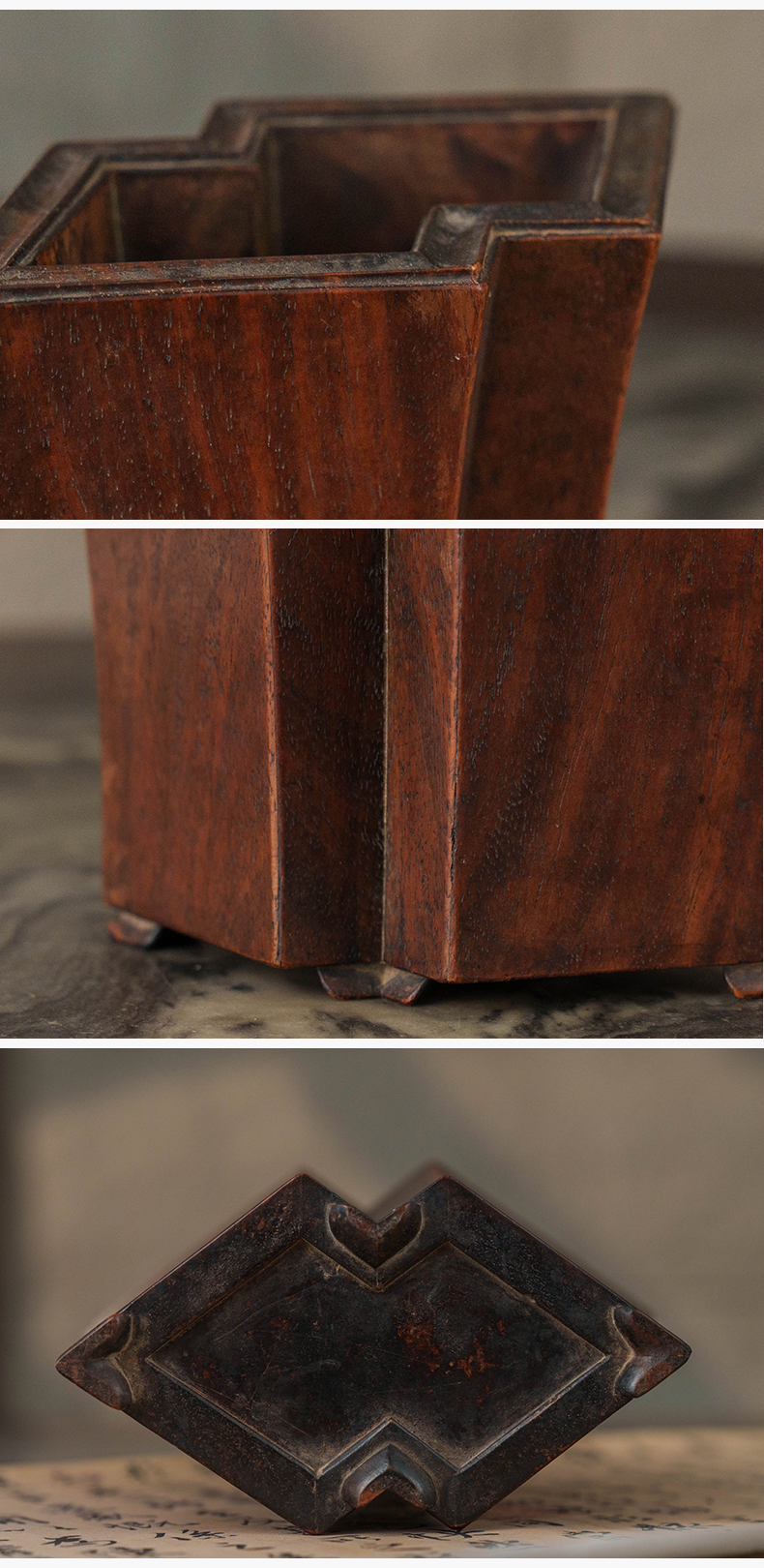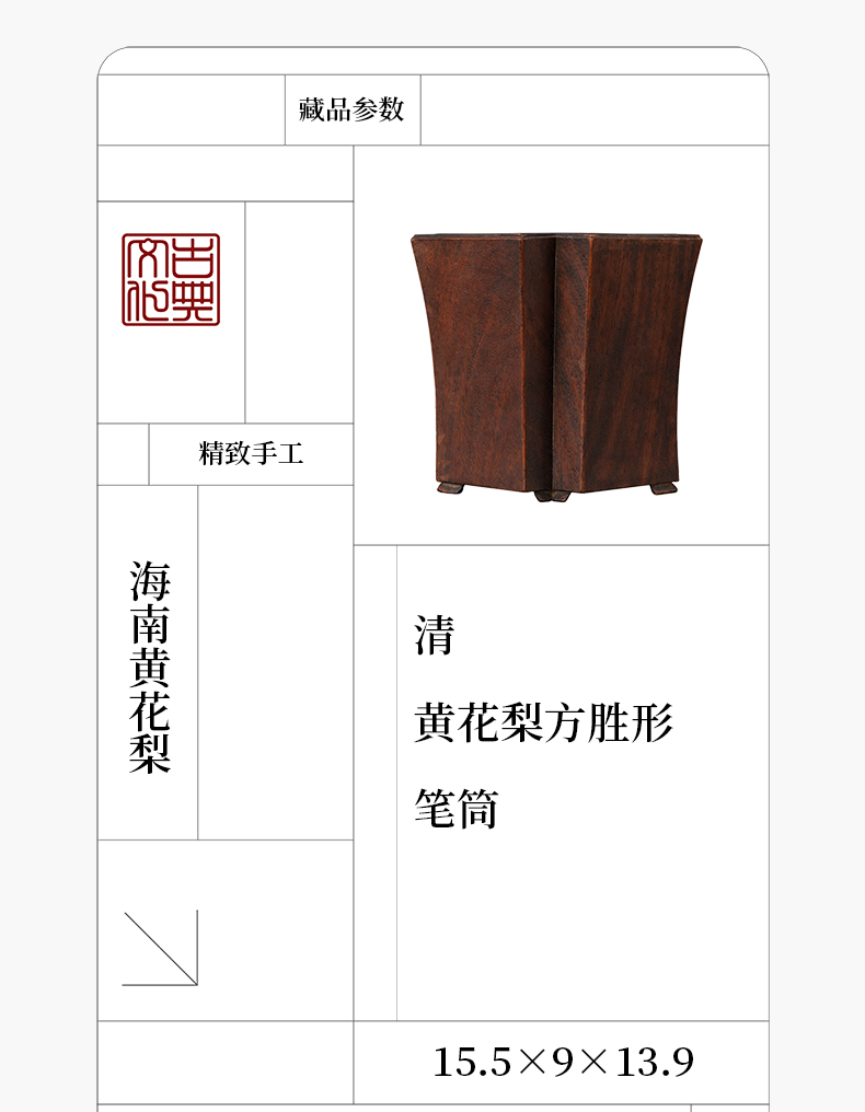 清 黄花梨方胜形笔筒