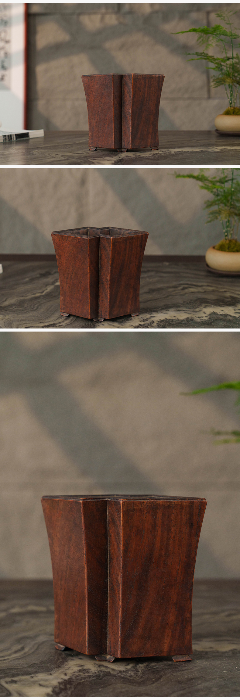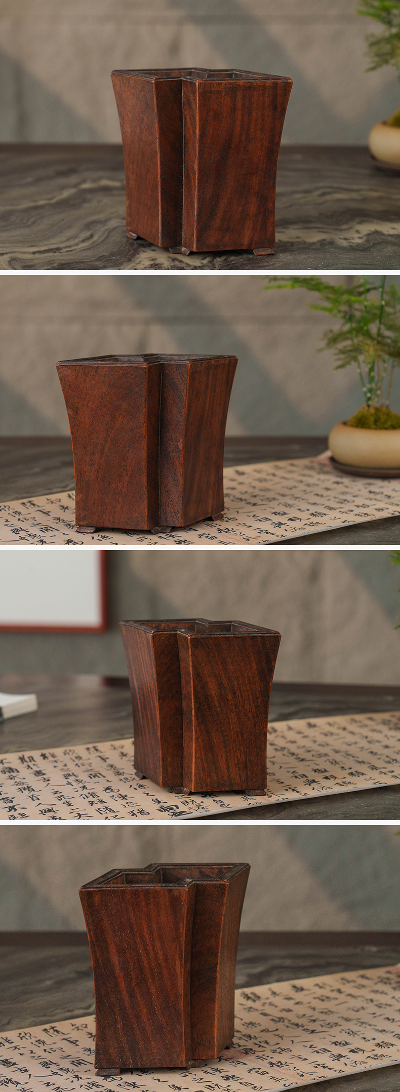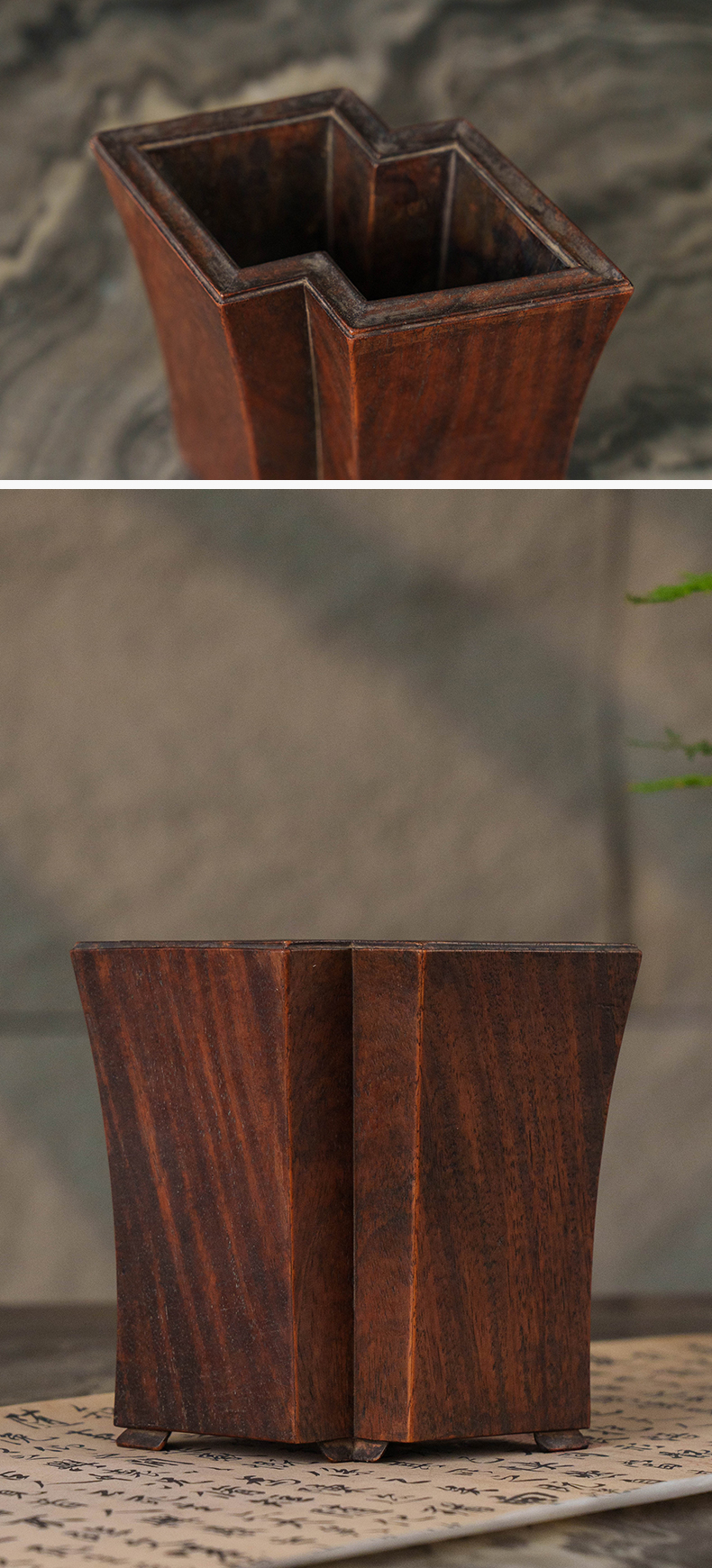 清 黄花梨方胜形笔筒