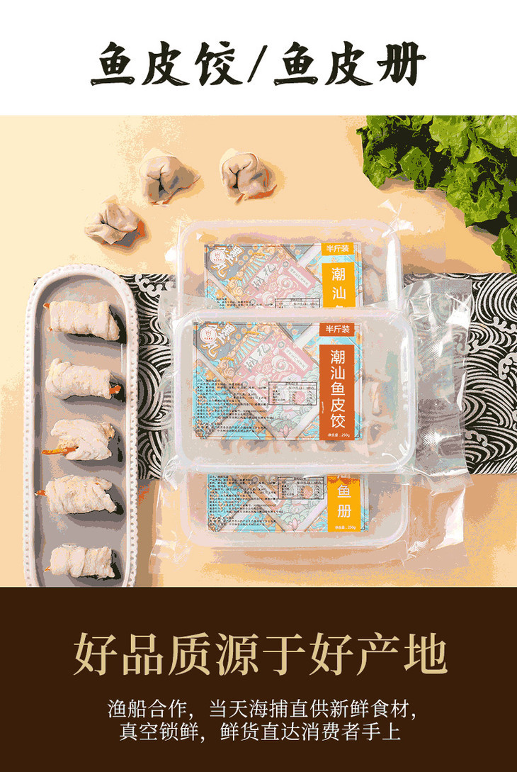 【代餐精选】潮汕鱼皮饺@鱼册 非遗的潮汕味《舌尖上的中国》推荐 潮汕老师傅手工制作 潮汕风味 皮弹馅薄 鲜香嫩爽 满口鱼香 饱满有嚼劲