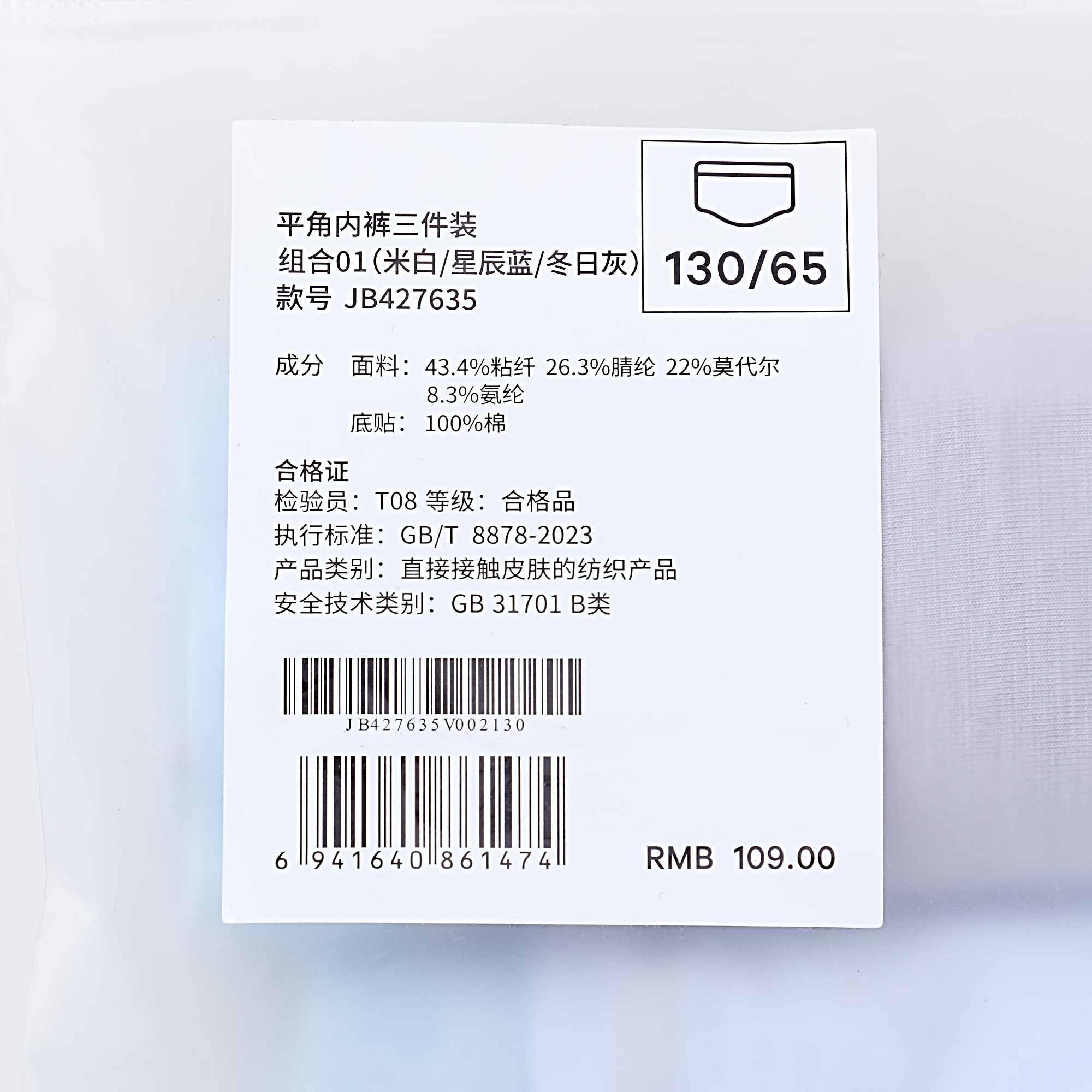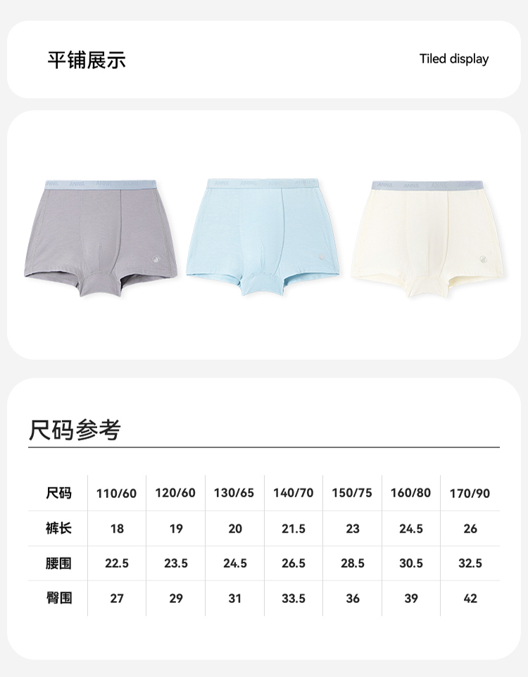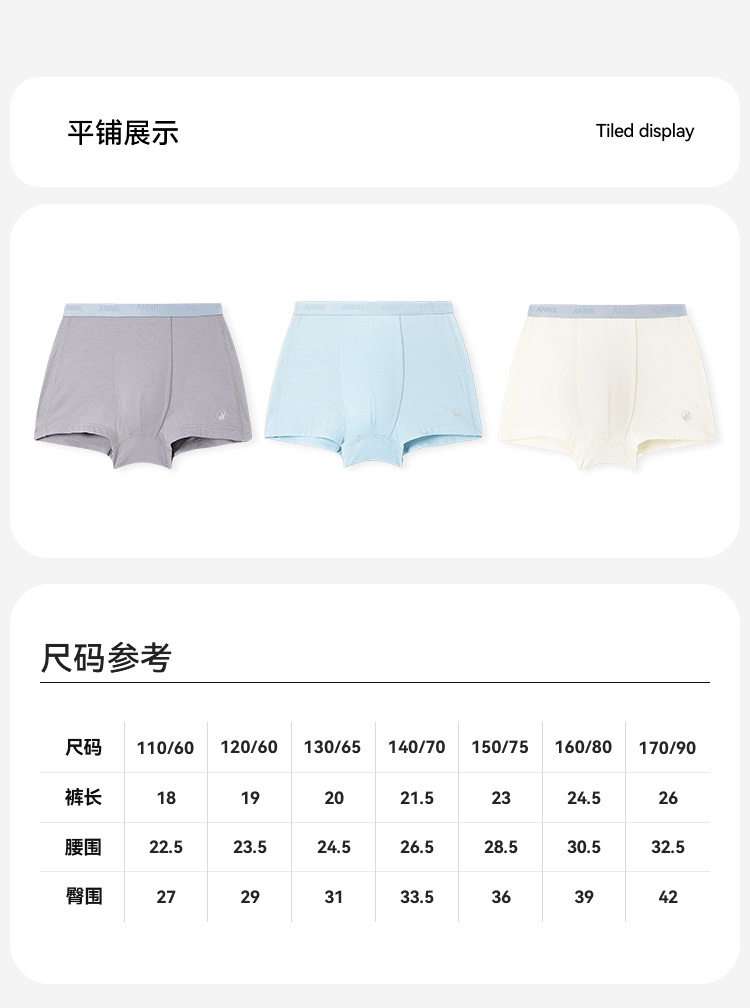 【7A抗菌家居】【天然润肤】【小程序专享】男童平角内裤三件装吸湿透气底裤夏季新款安奈儿童装JB427635