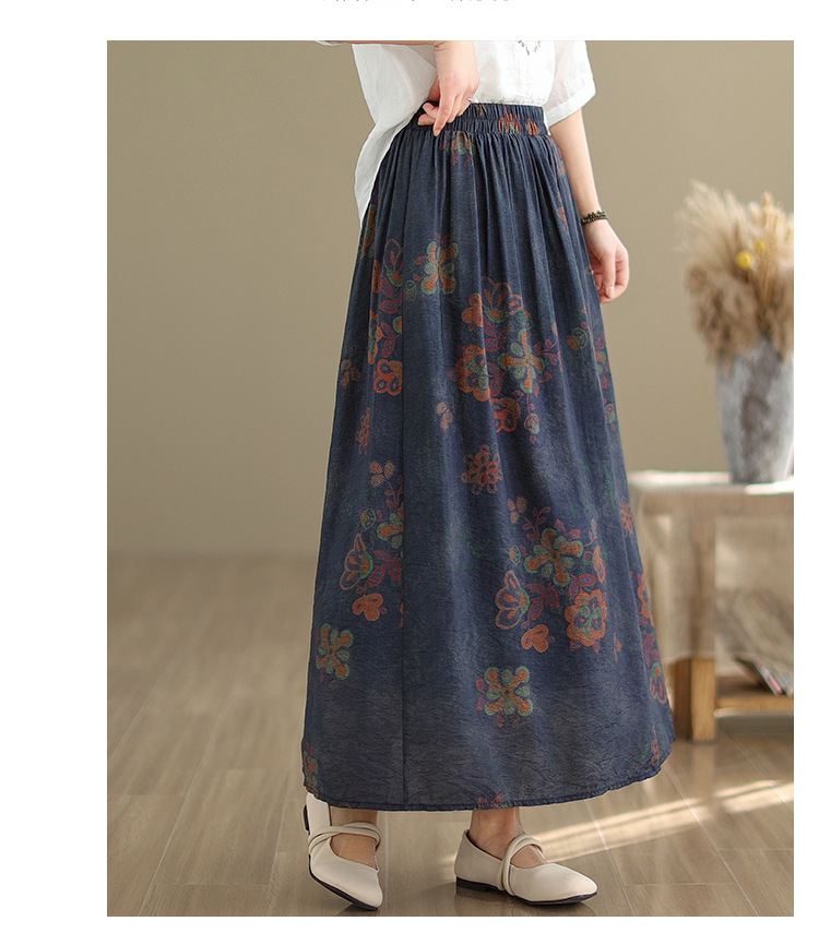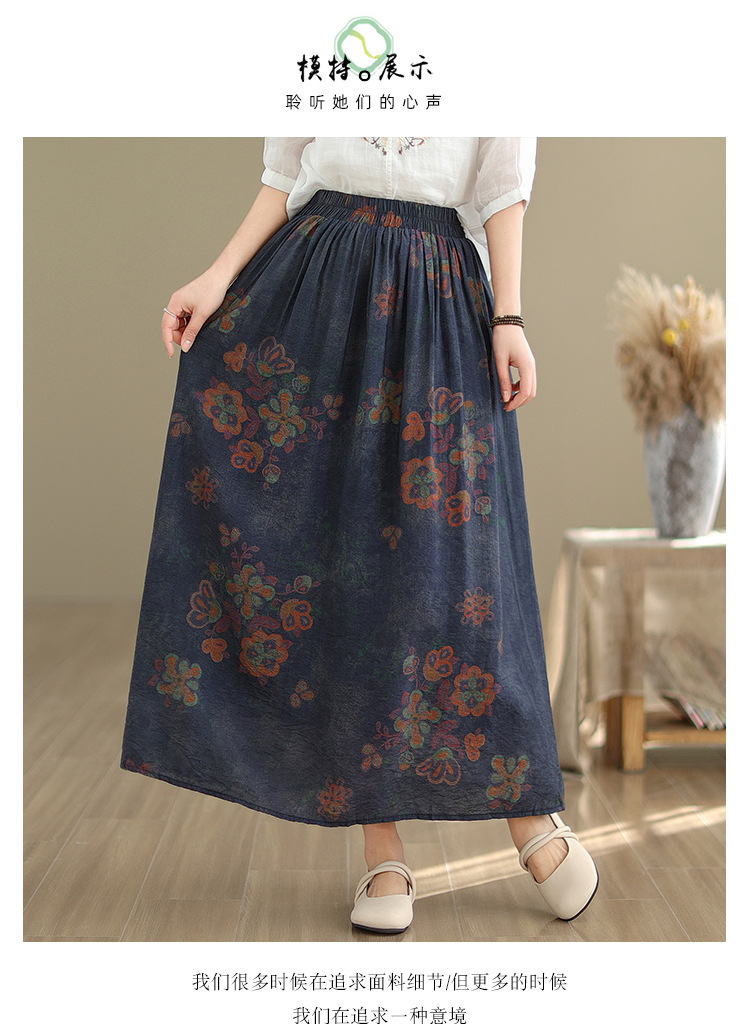 苎麻亚麻半身裙高腰a字裙棉麻长裙7360
