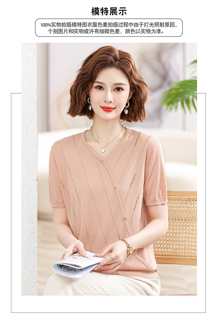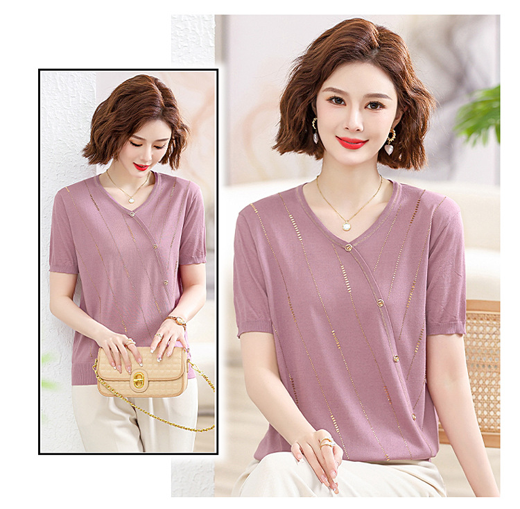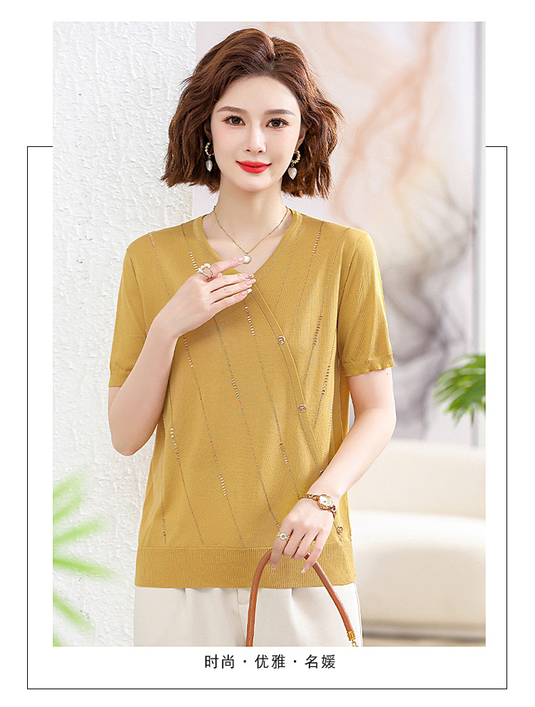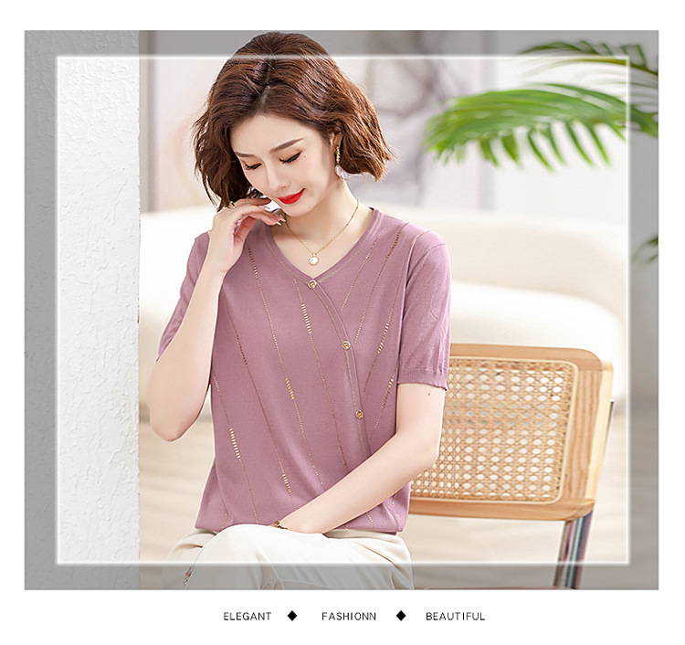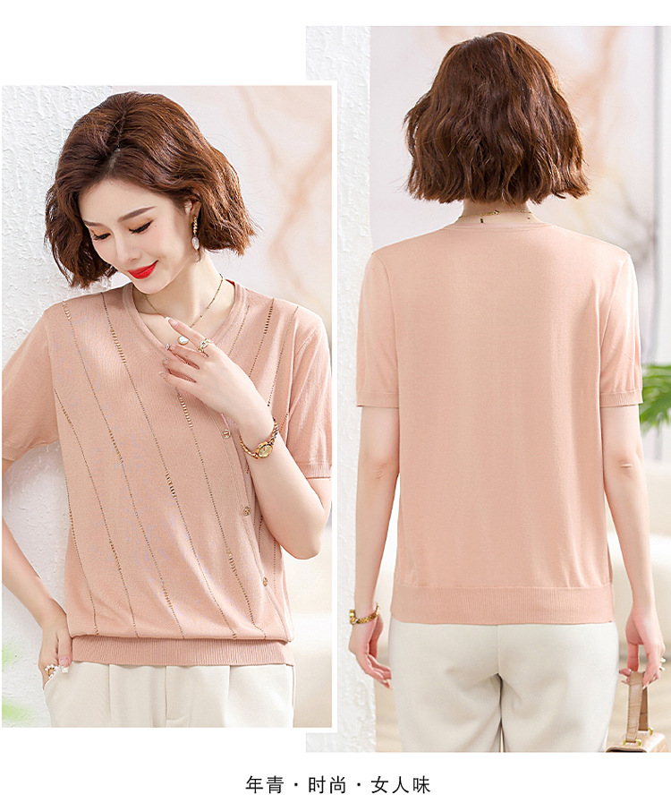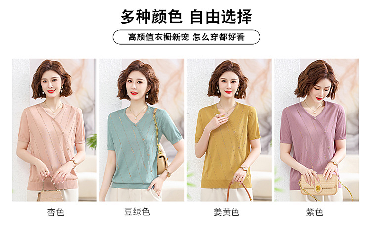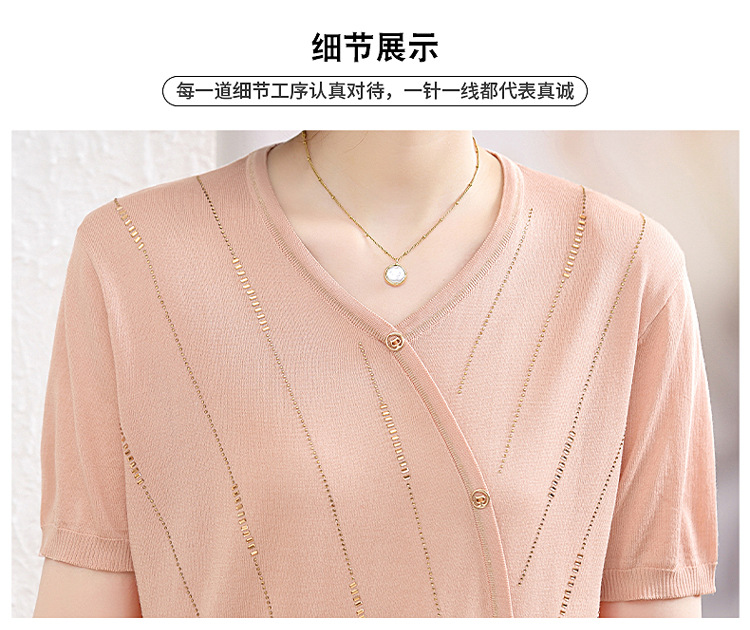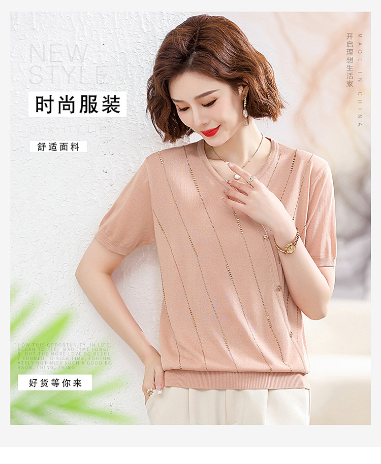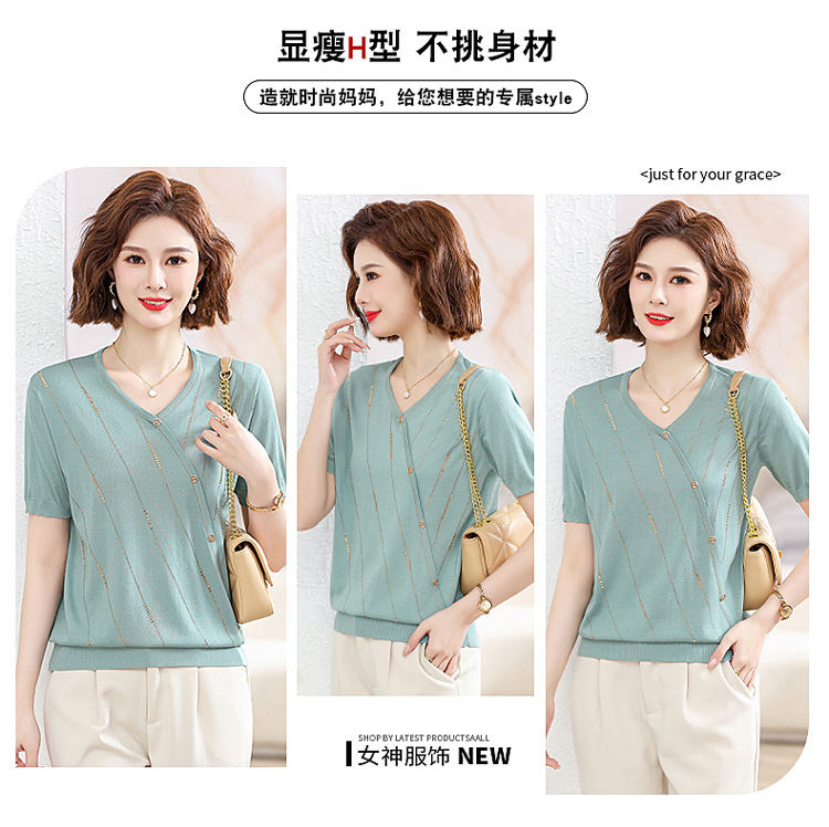丁摩 洋气妈妈装夏装冰丝上衣宽松T恤小衫女士时尚薄款针织衫短袖5ZF-2392