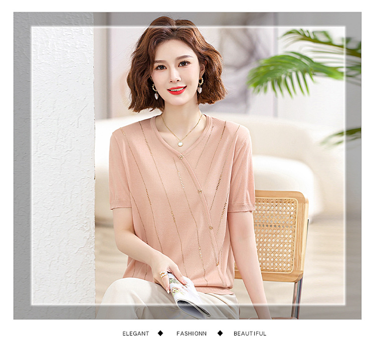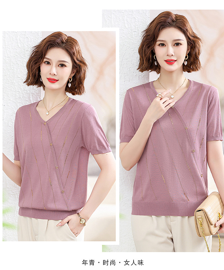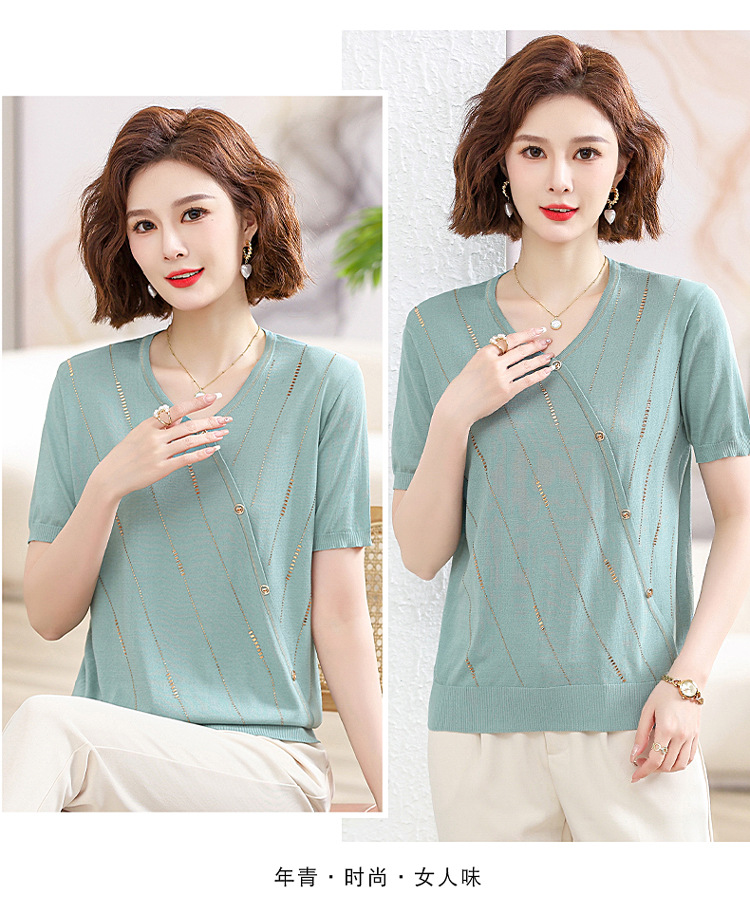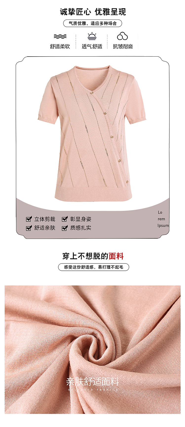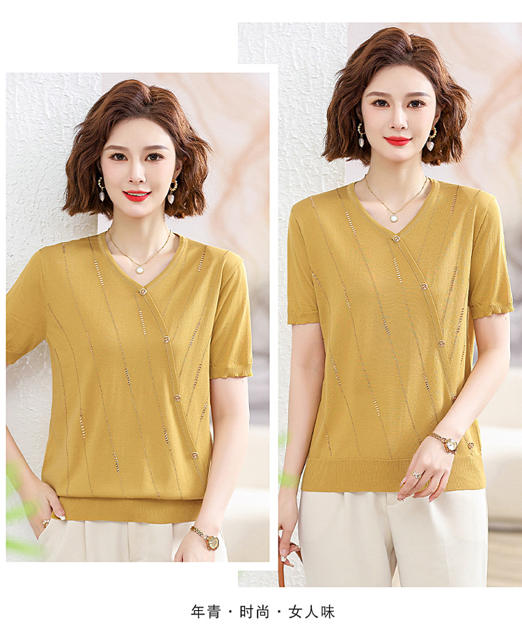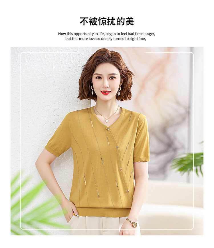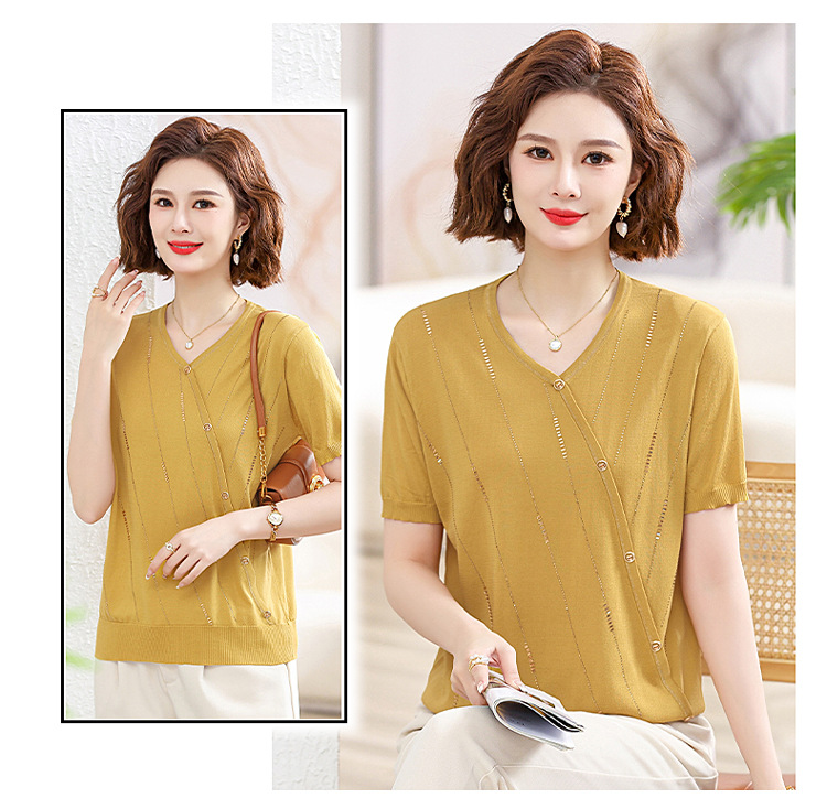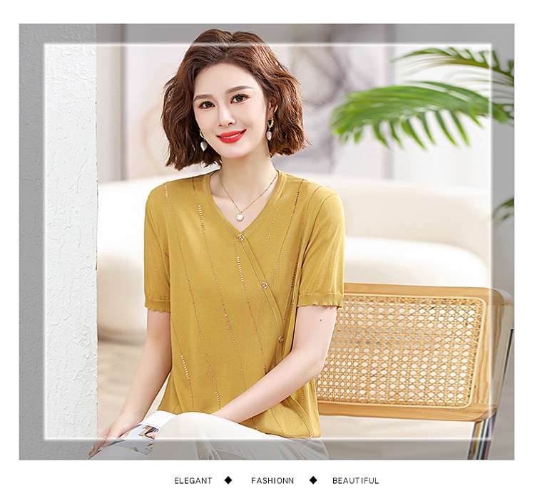 丁摩 洋气妈妈装夏装冰丝上衣宽松T恤小衫女士时尚薄款针织衫短袖5ZF-2392