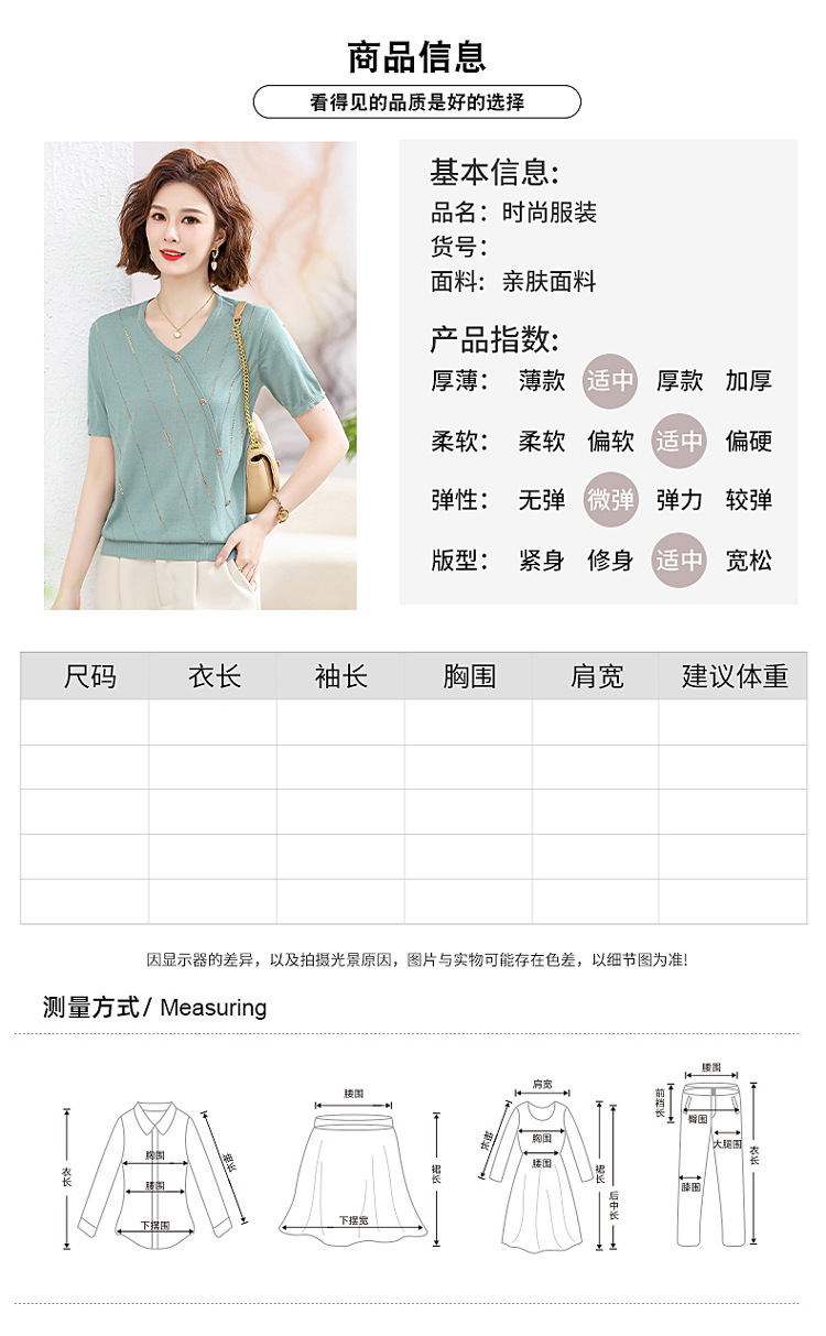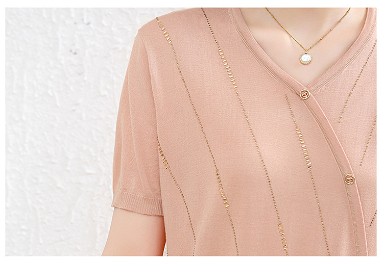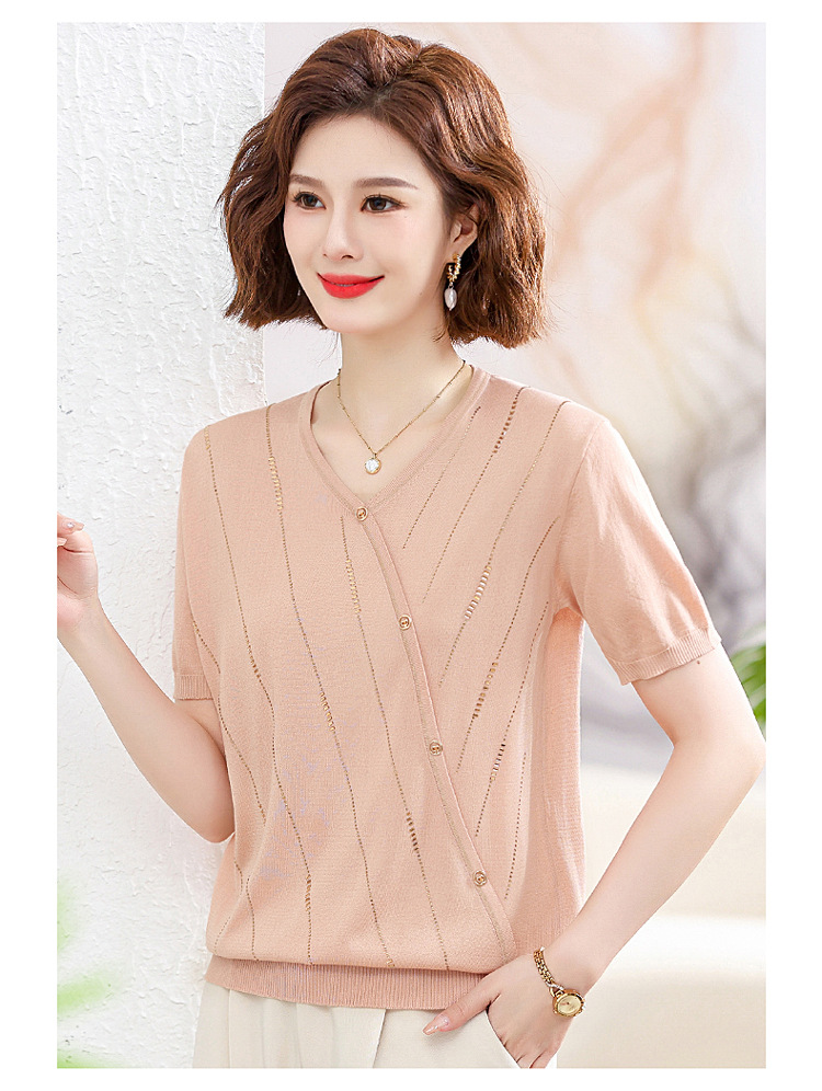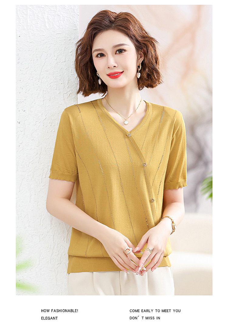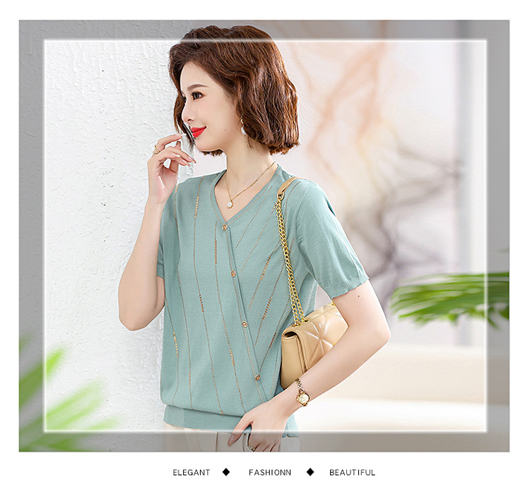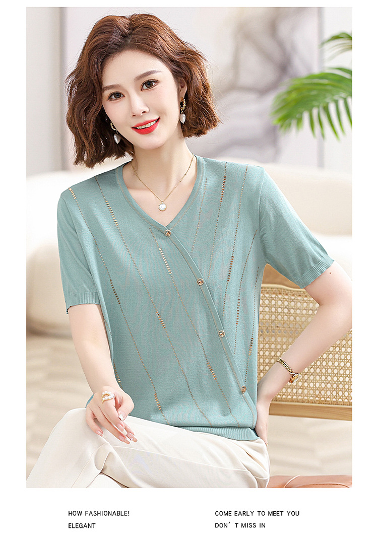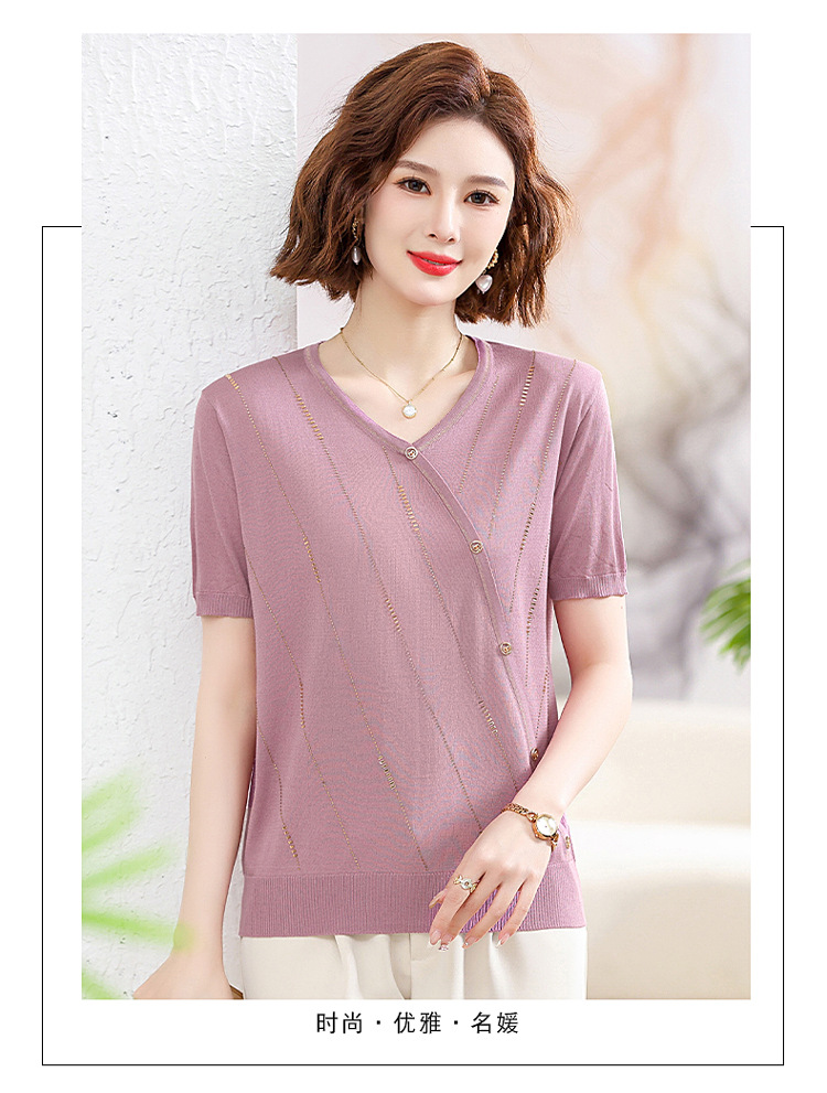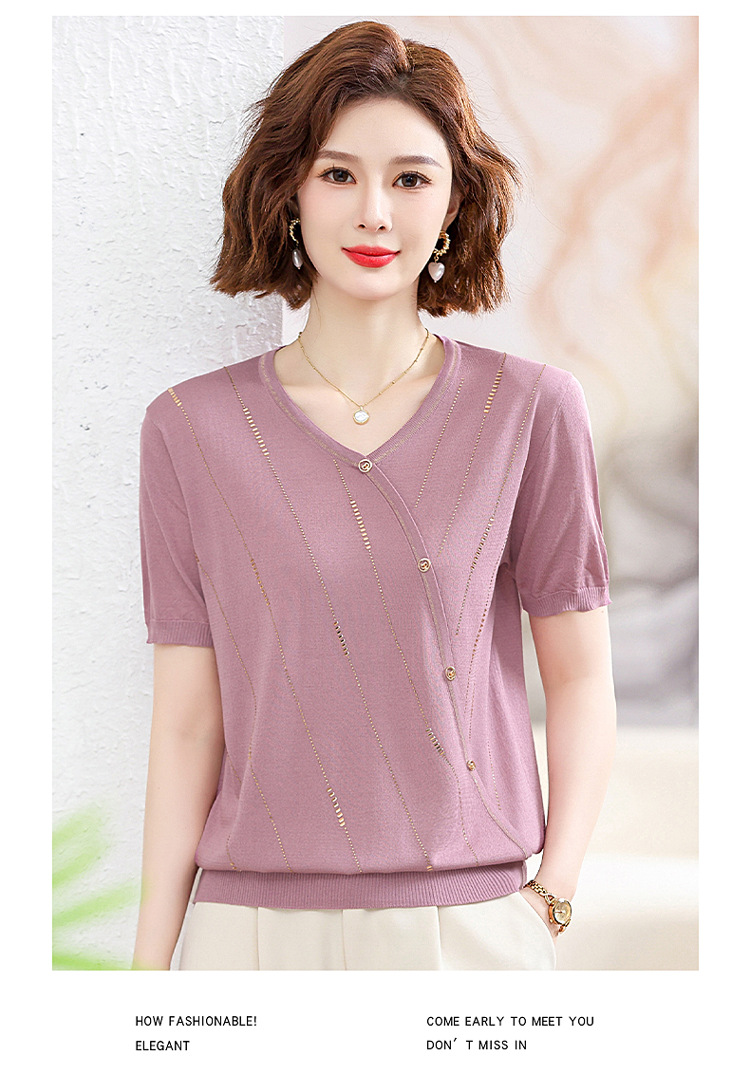 丁摩 洋气妈妈装夏装冰丝上衣宽松T恤小衫女士时尚薄款针织衫短袖5ZF-2392