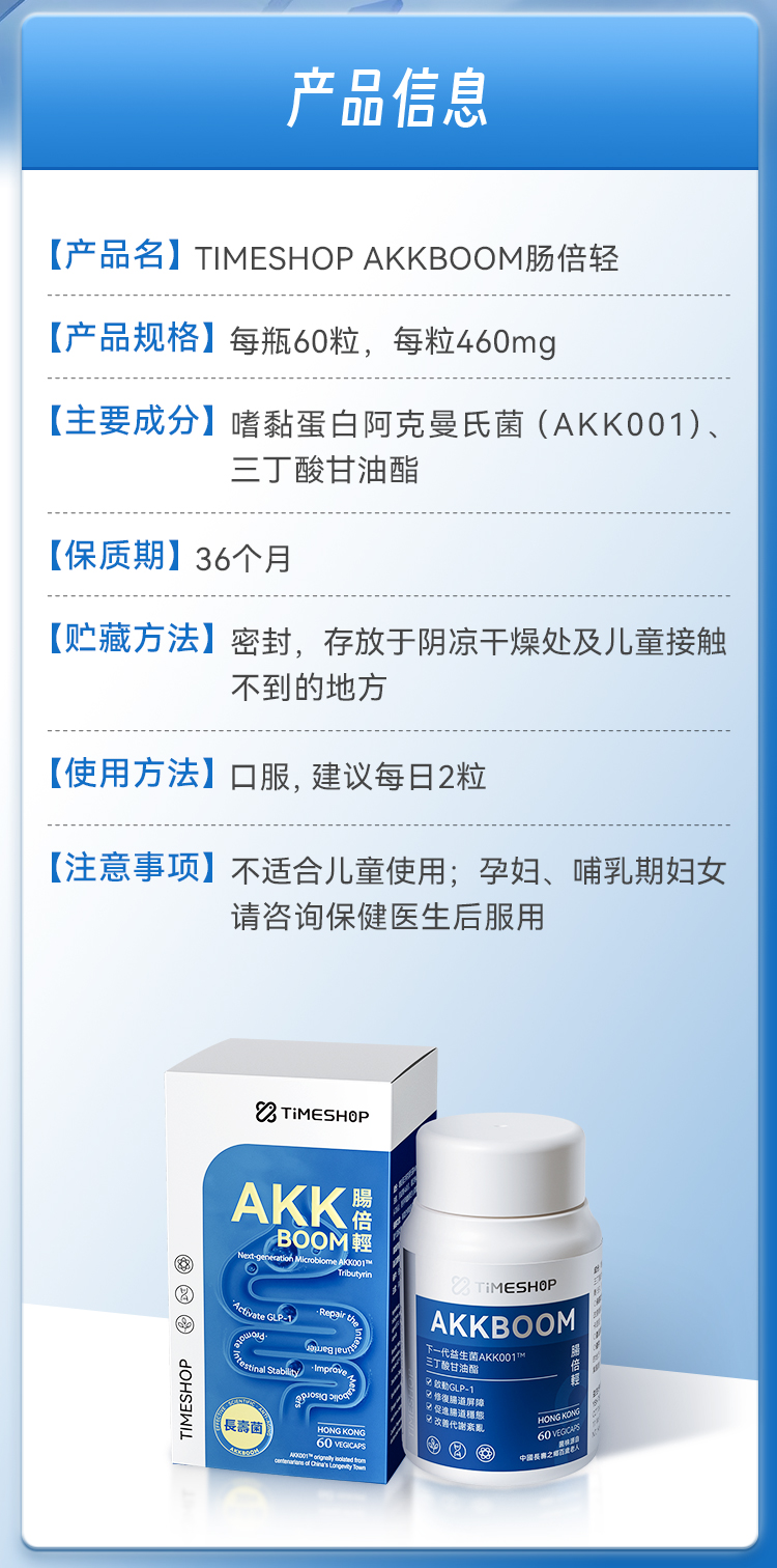 【保税仓发货】Timeshop 肠倍轻AKK益生菌胶囊 60粒/瓶 [多瓶装]-瘦龙
