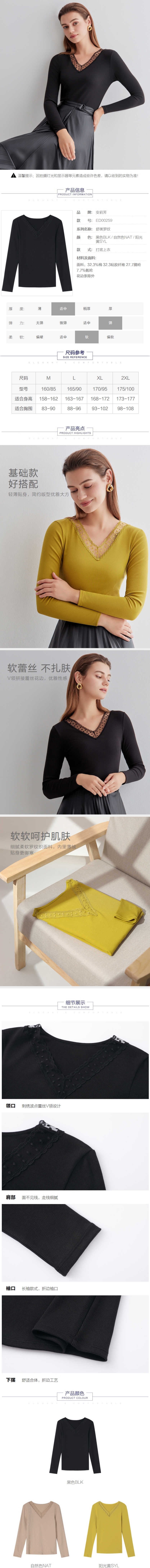 安莉芳秋冬新品蕾丝V领长袖暖衣上装女士修身打底棉毛衫ED00259 商品图0