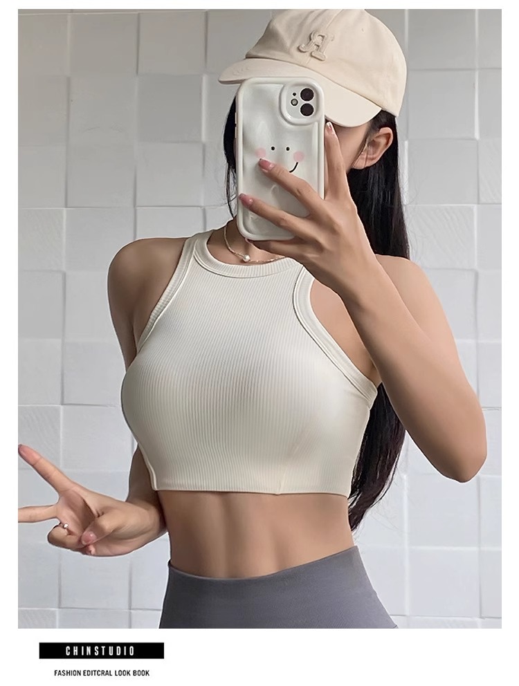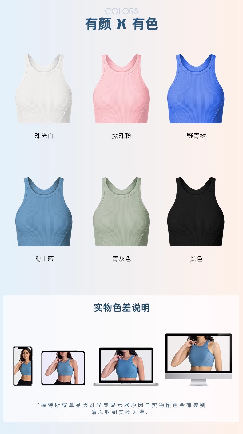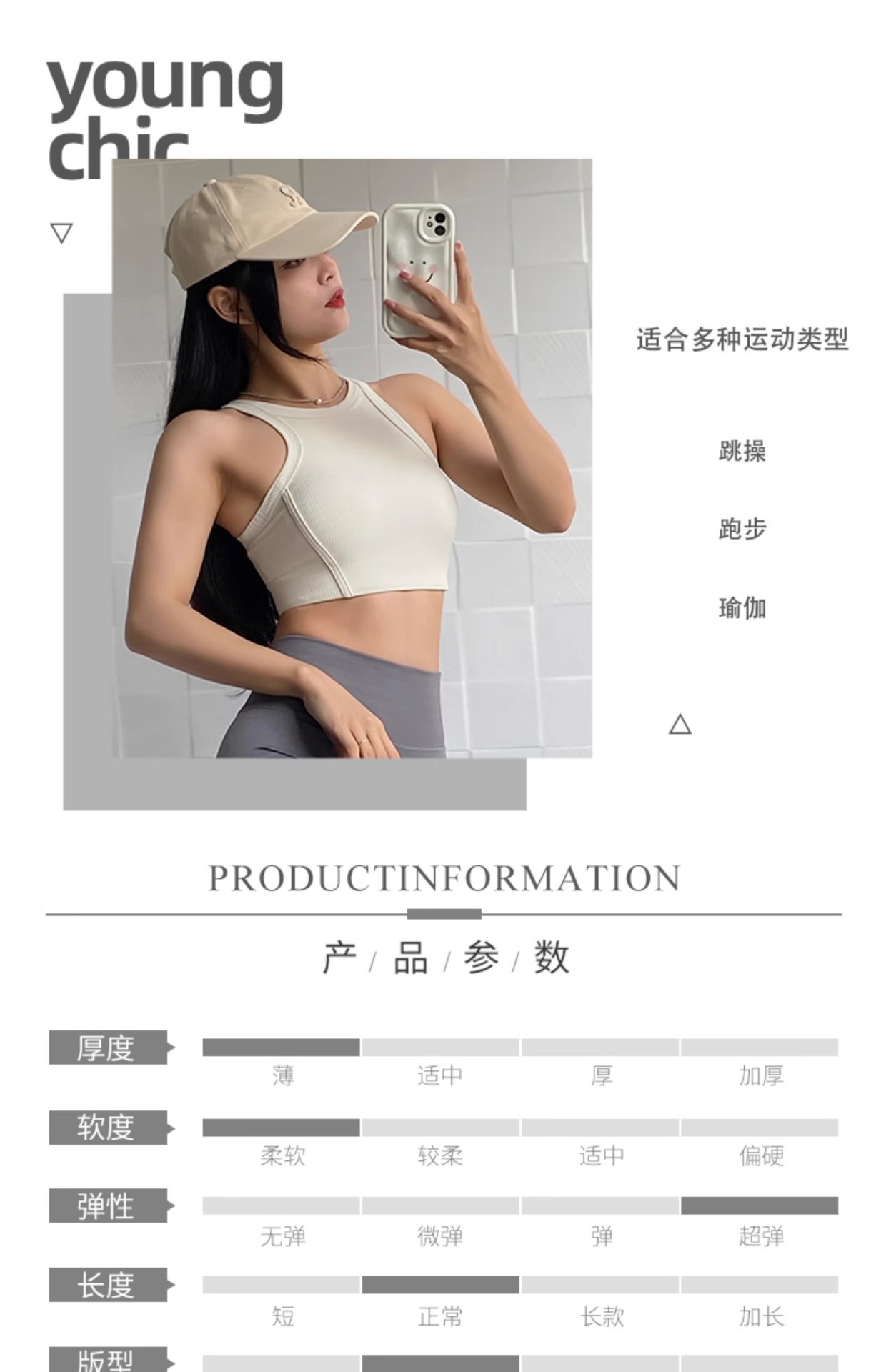 跃牌【轻匀系列】一体式运动背心女固定胸垫健身文胸紧身美背60127