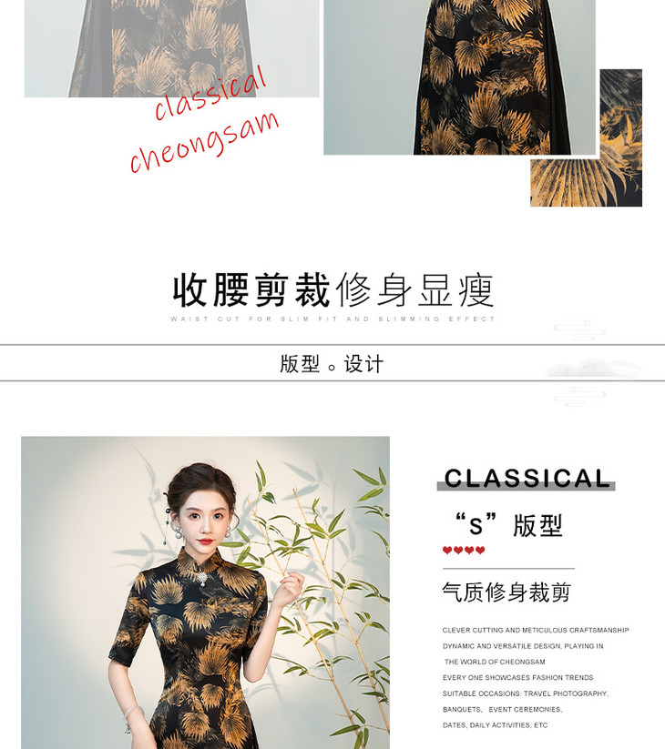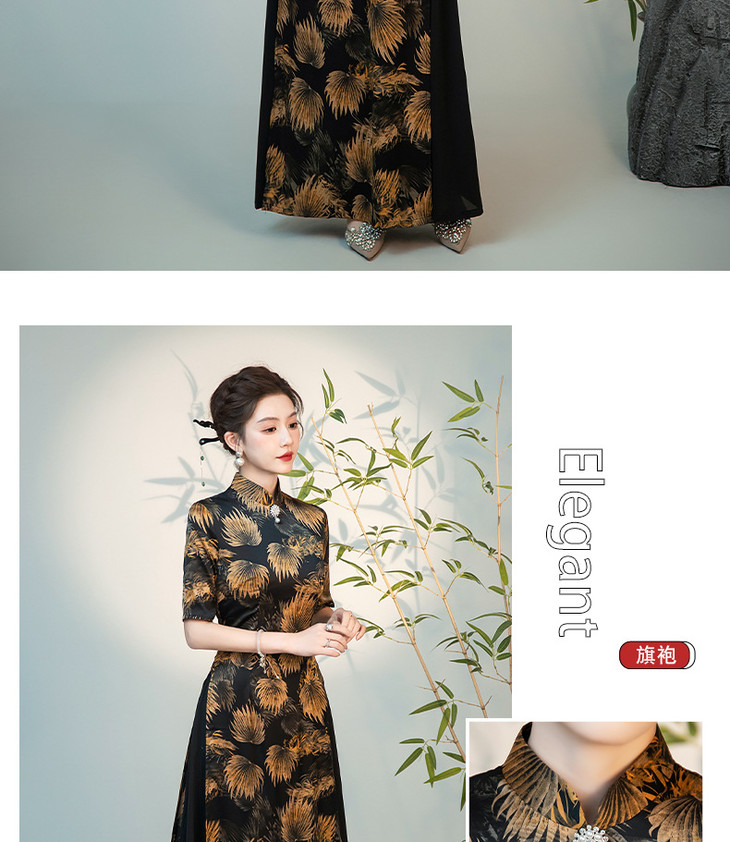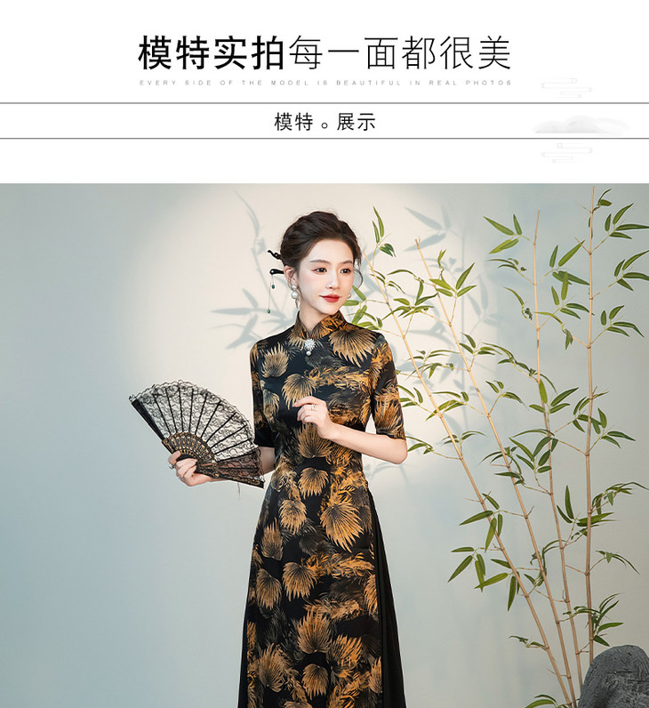 日常端庄大气显瘦,改良奥黛长旗袍QC159 商品图2