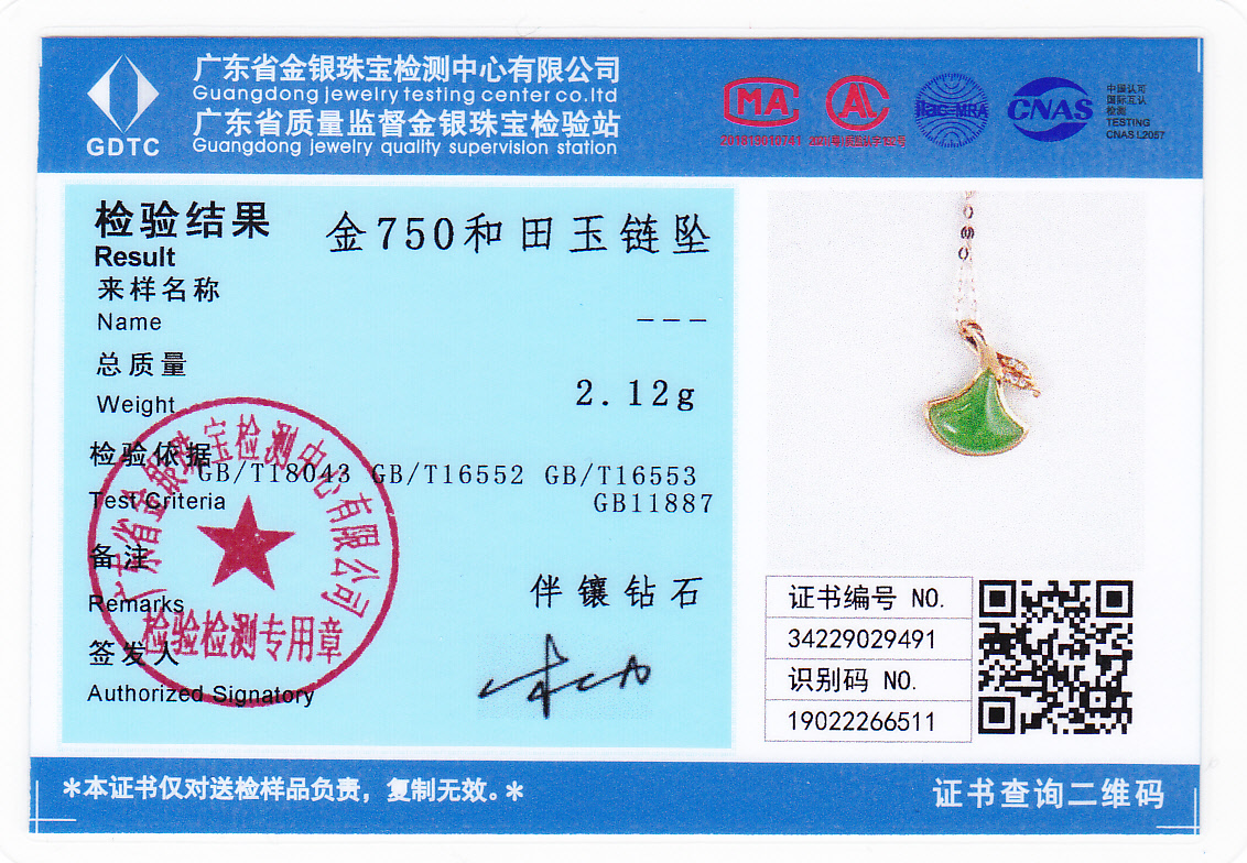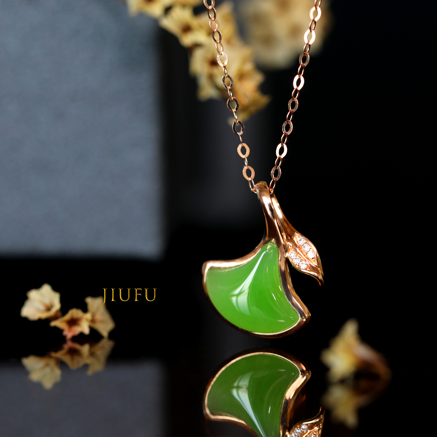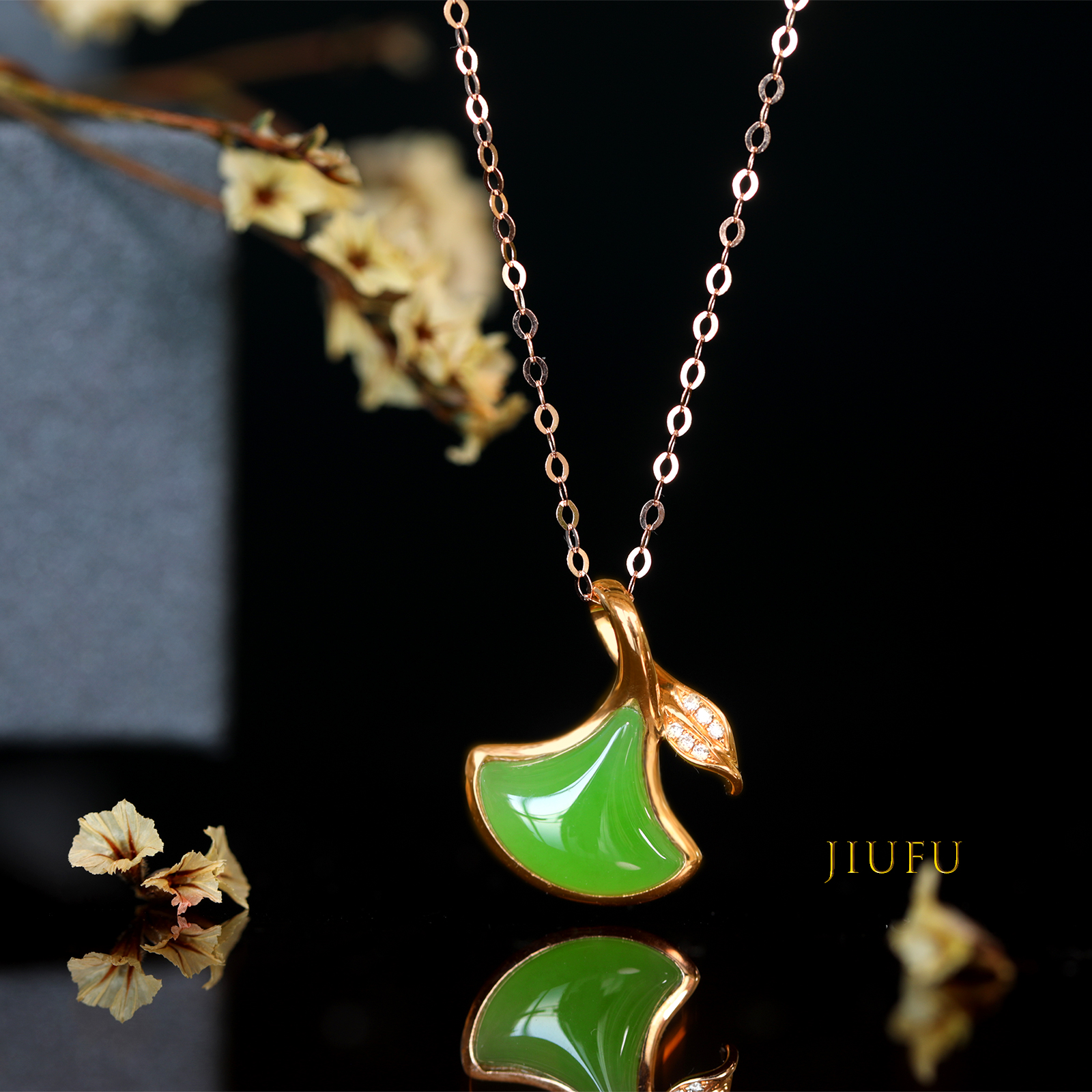 18K玫瑰金和田玉(碧玉)项链