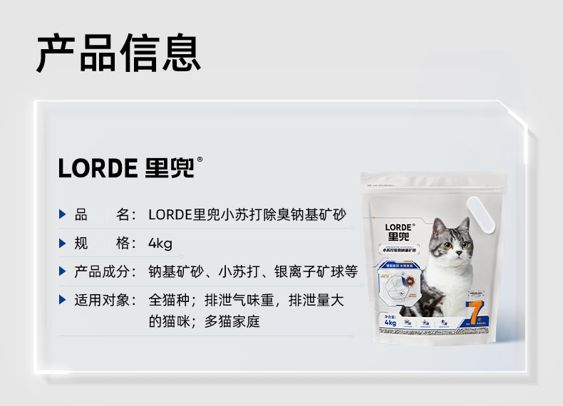 LORDE里兜除臭低尘钠基矿砂小苏打膨润土猫砂4kg