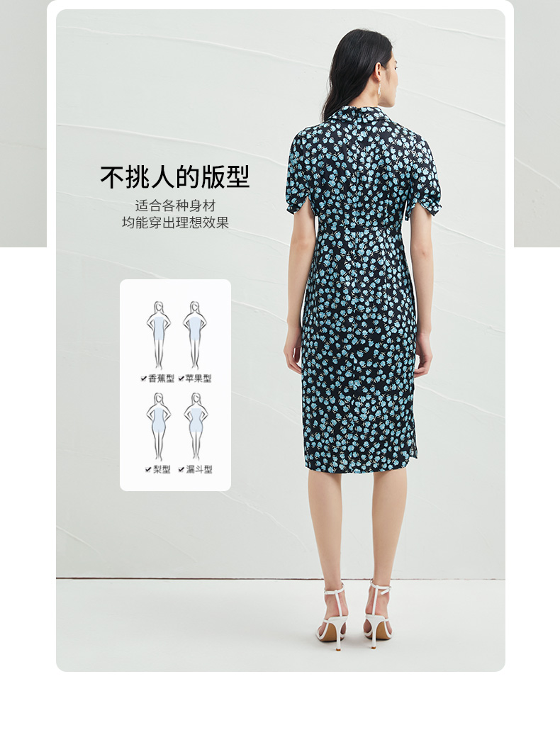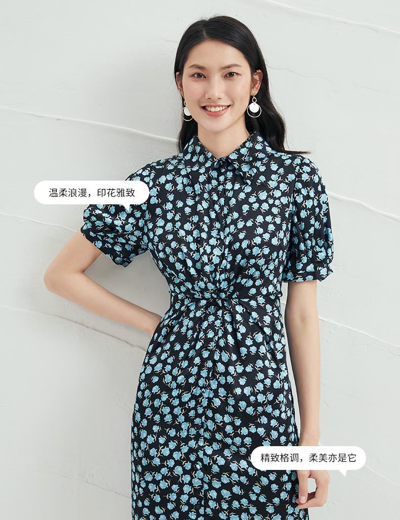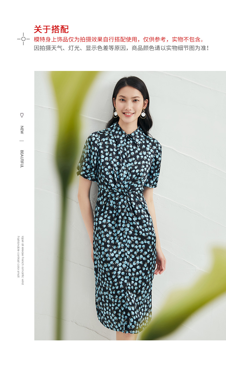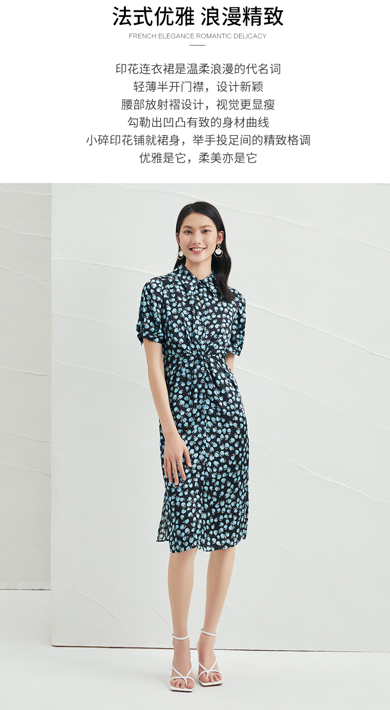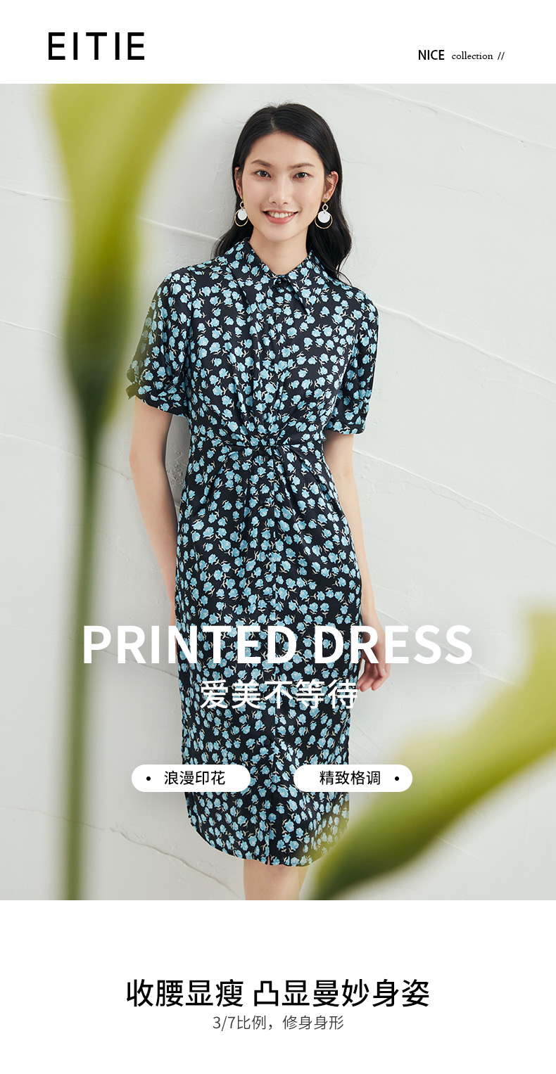 EITIE爱特爱夏季新款短袖立领收腰显瘦印花连衣裙6607370