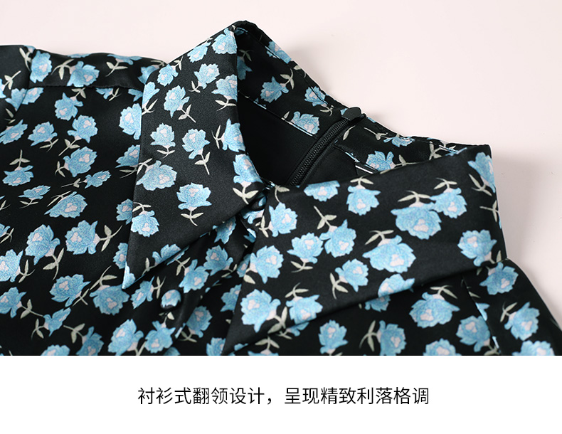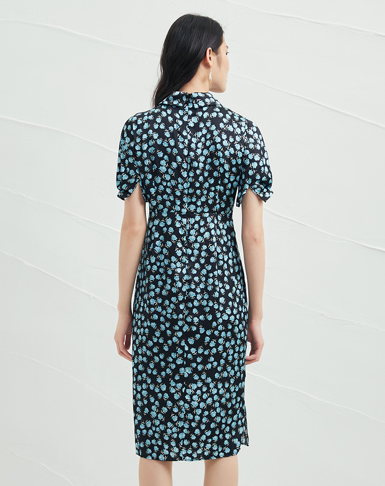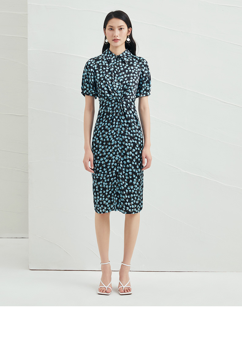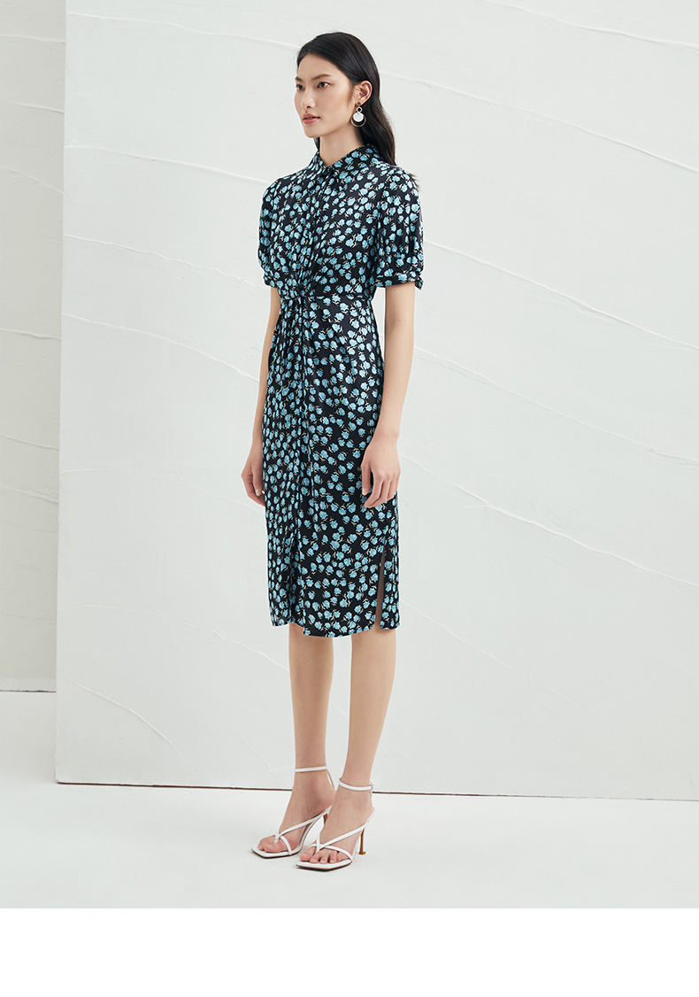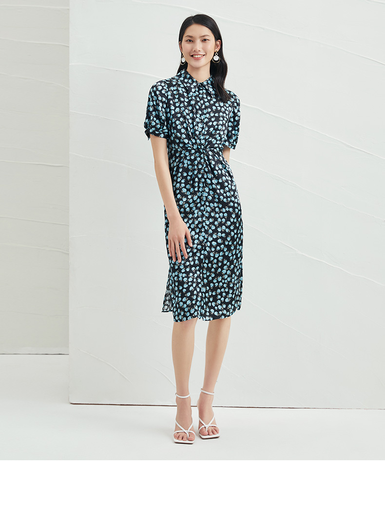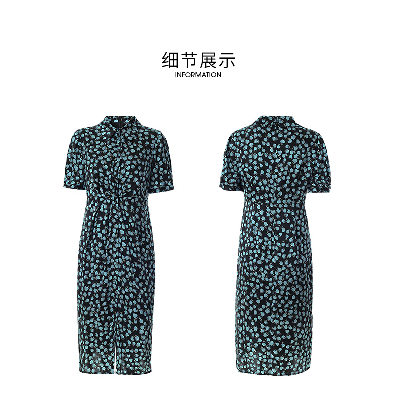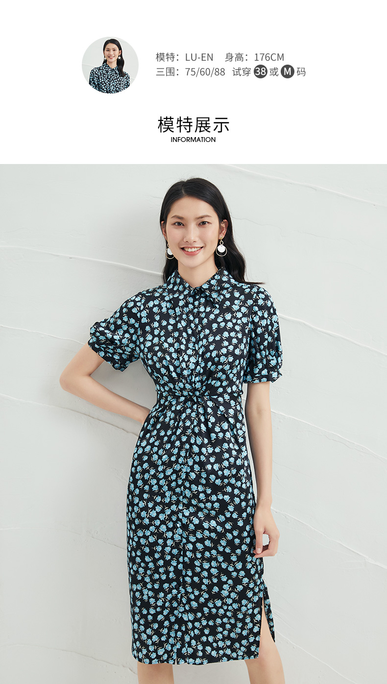 EITIE爱特爱夏季新款短袖立领收腰显瘦印花连衣裙6607370