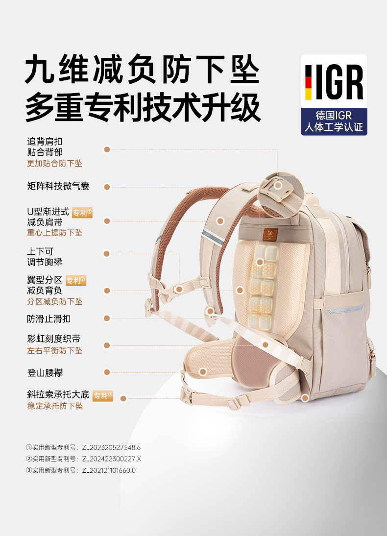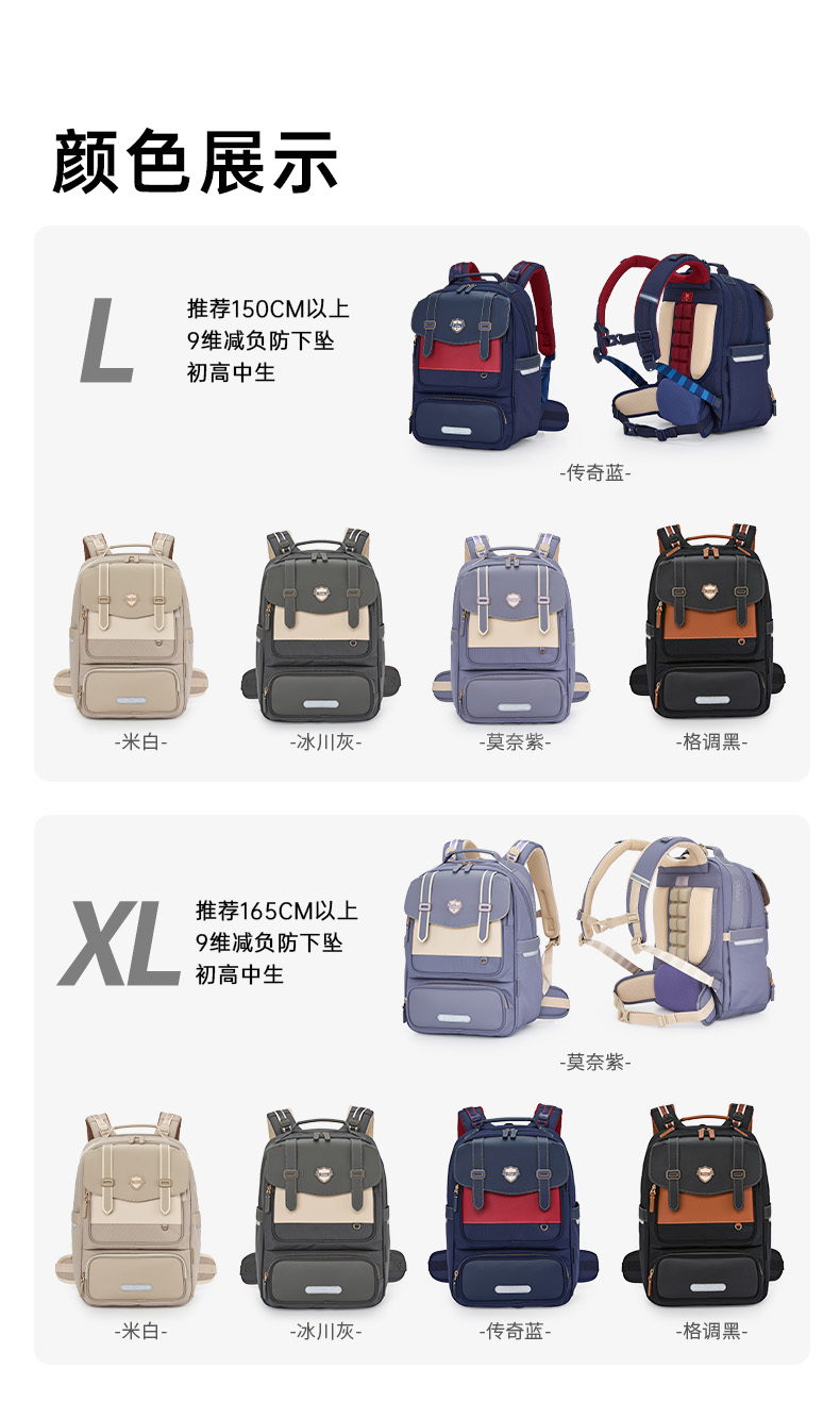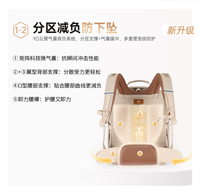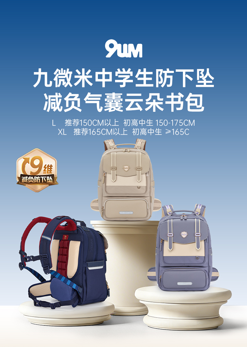 九微米中学生9维减负防下坠气囊云朵书包圣马可系列 U5095/L