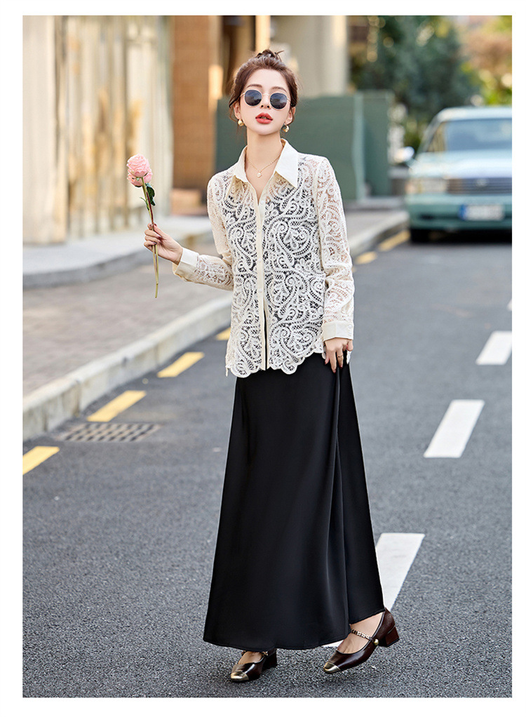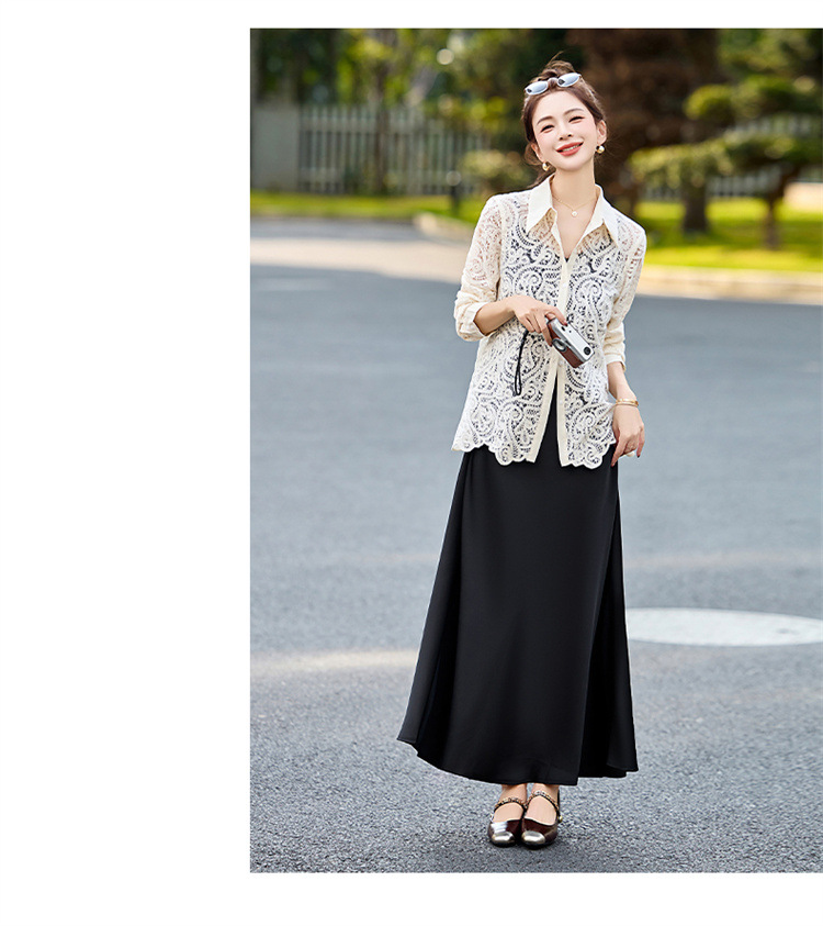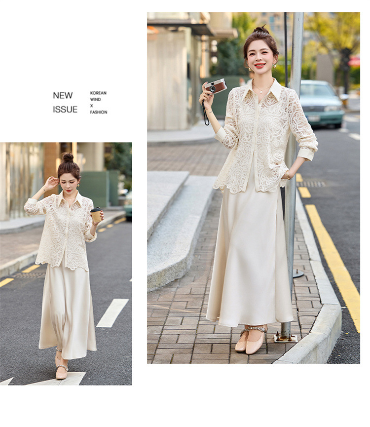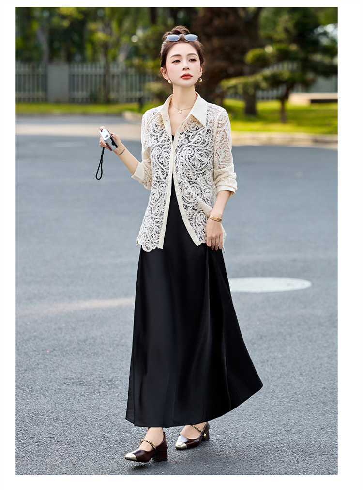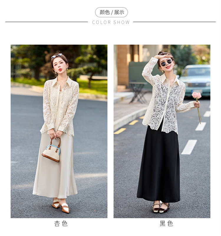 HR CPYY8122蕾丝镂空衬衫吊带连衣裙两件套遮肉显瘦时尚套装裙 商品图1