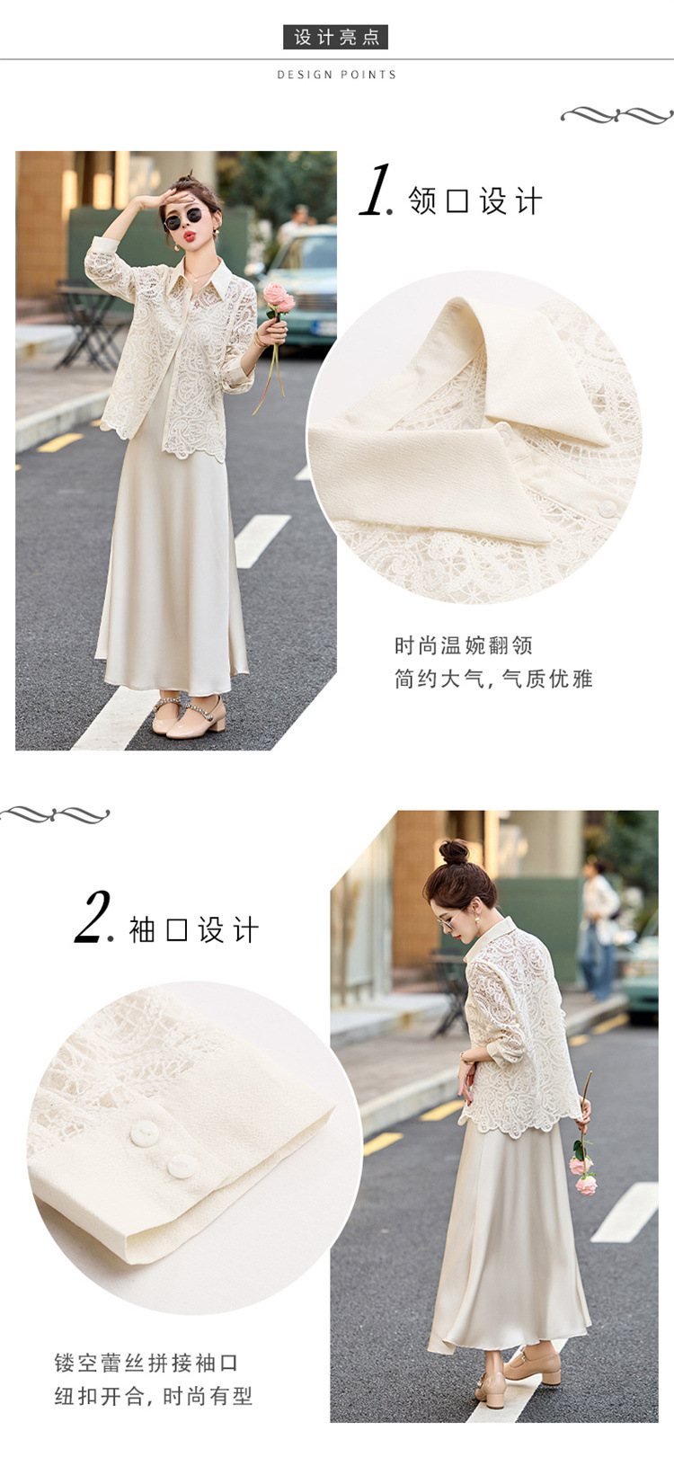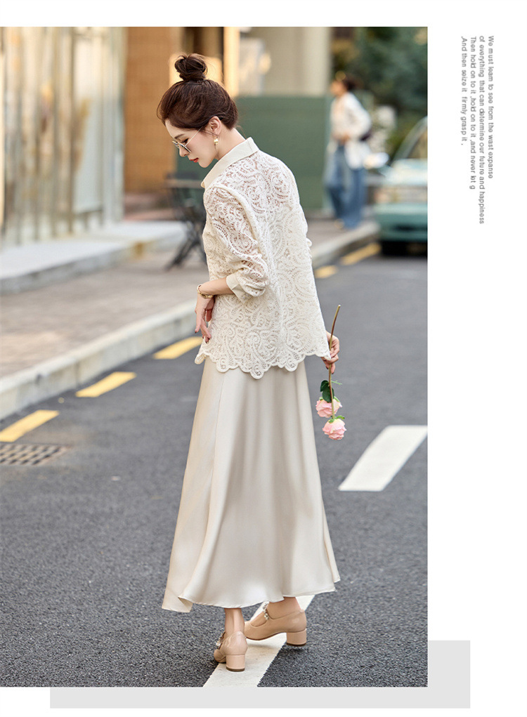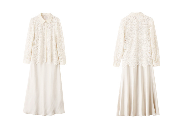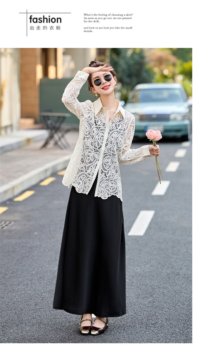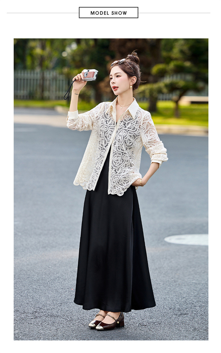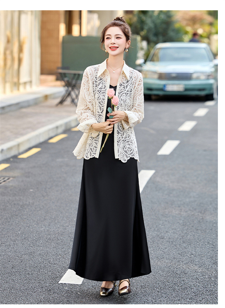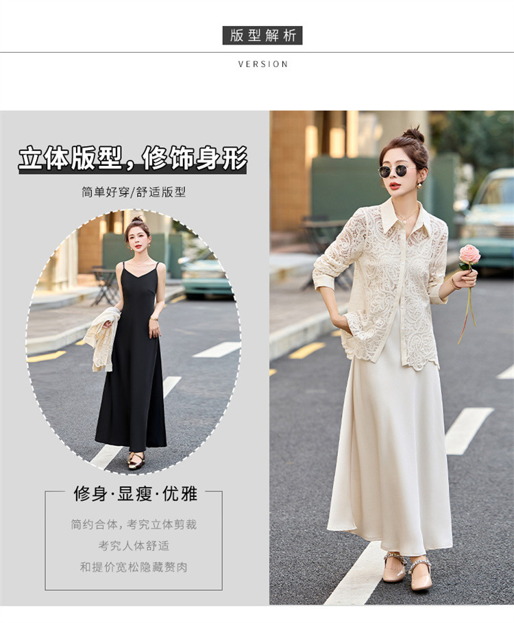 HR CPYY8122蕾丝镂空衬衫吊带连衣裙两件套遮肉显瘦时尚套装裙 商品图4