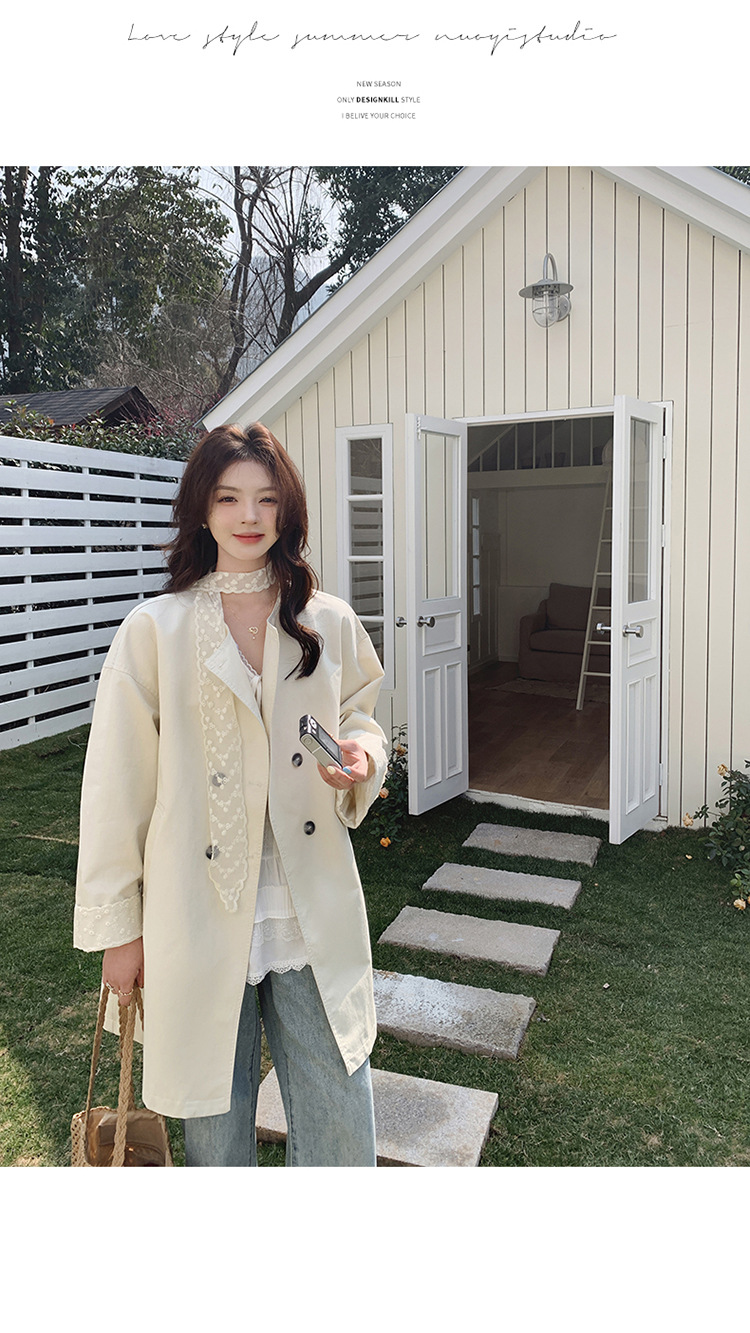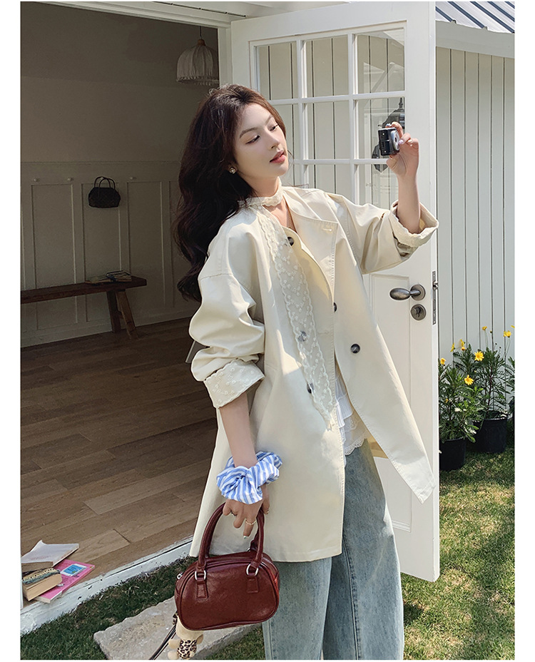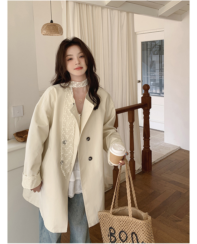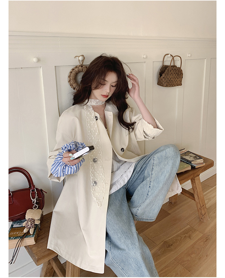 HR MDN25007法式蕾丝拼接风衣外套韩版宽松大衣 商品图6