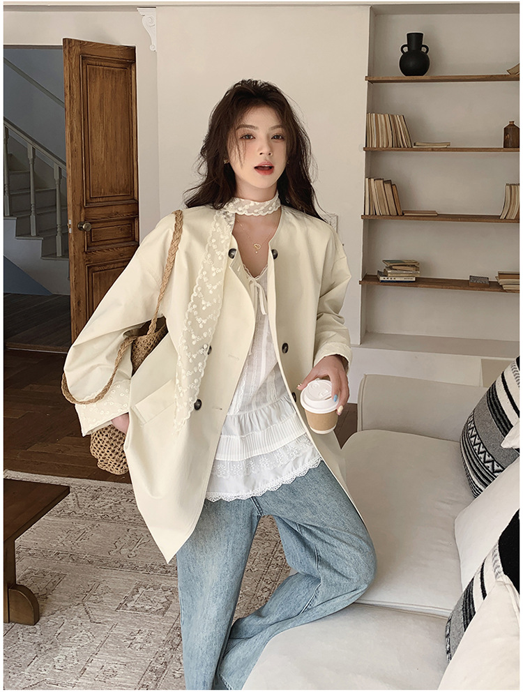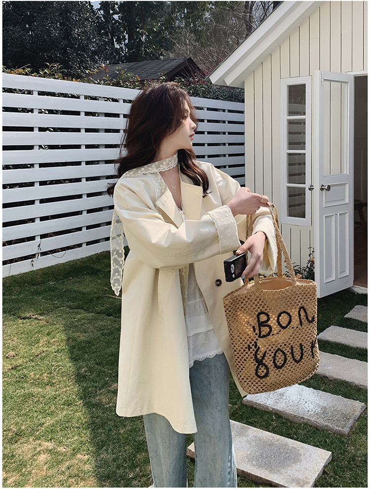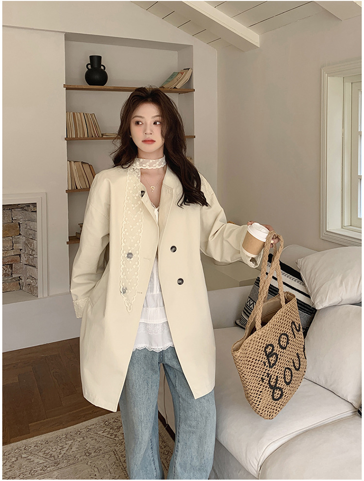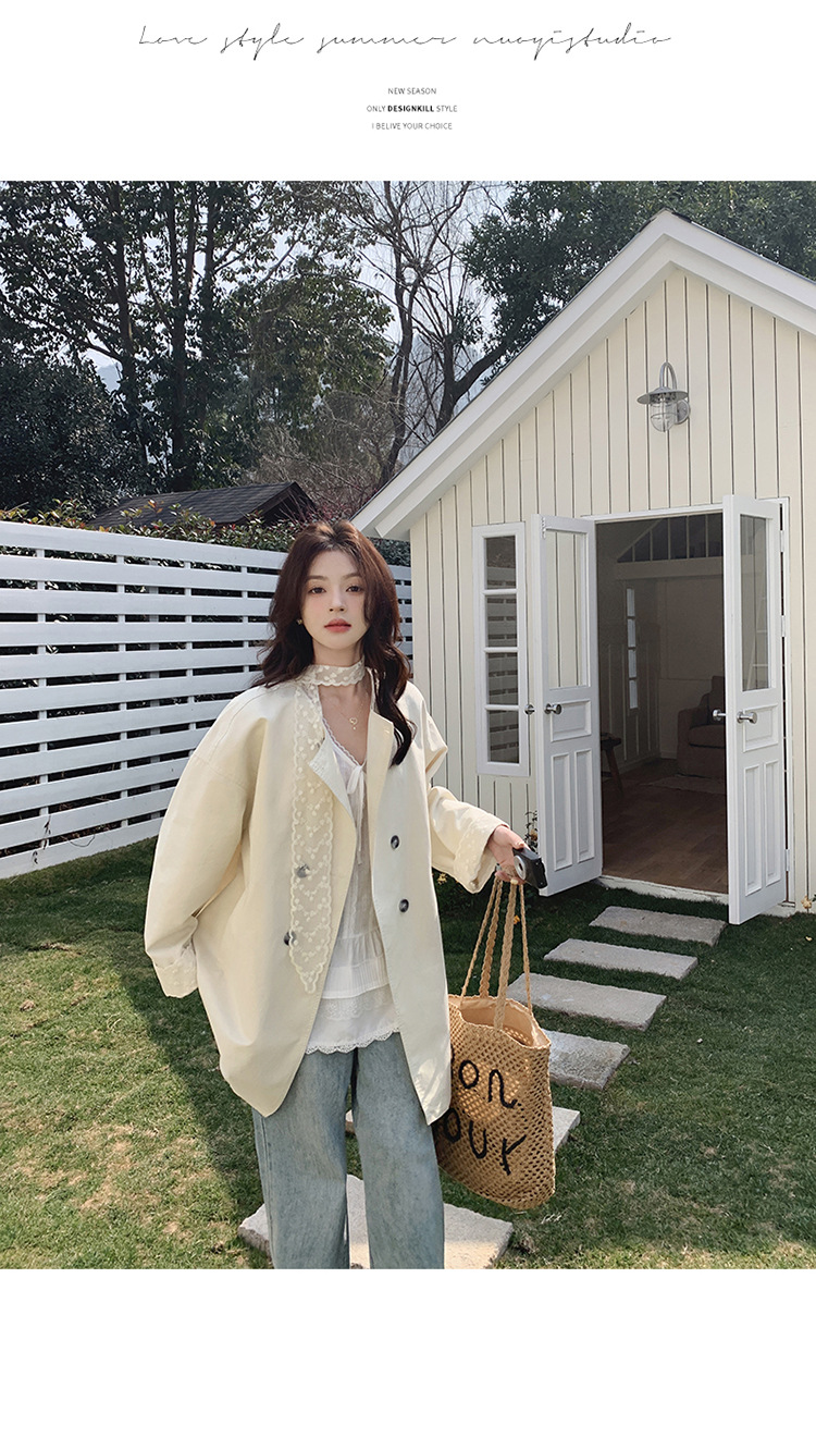 HR MDN25007法式蕾丝拼接风衣外套韩版宽松大衣 商品图6