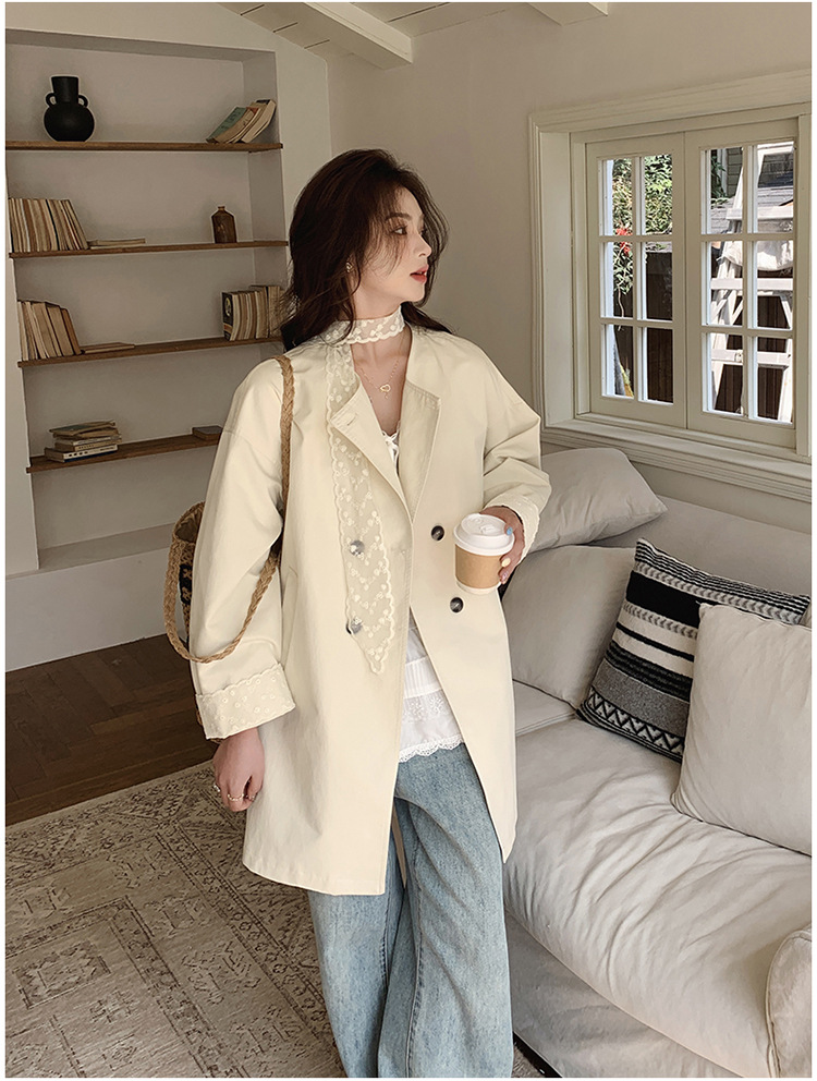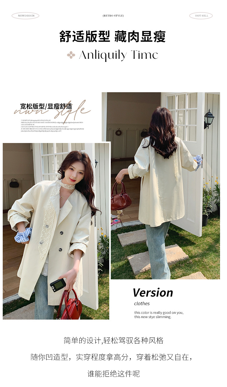 HR MDN25007法式蕾丝拼接风衣外套韩版宽松大衣 商品图5