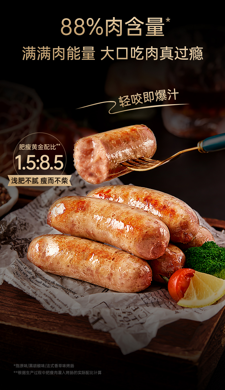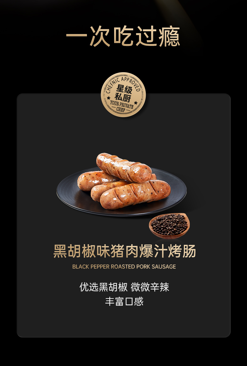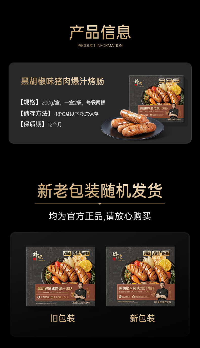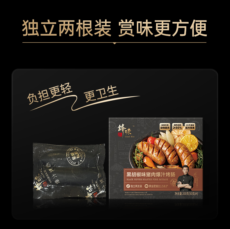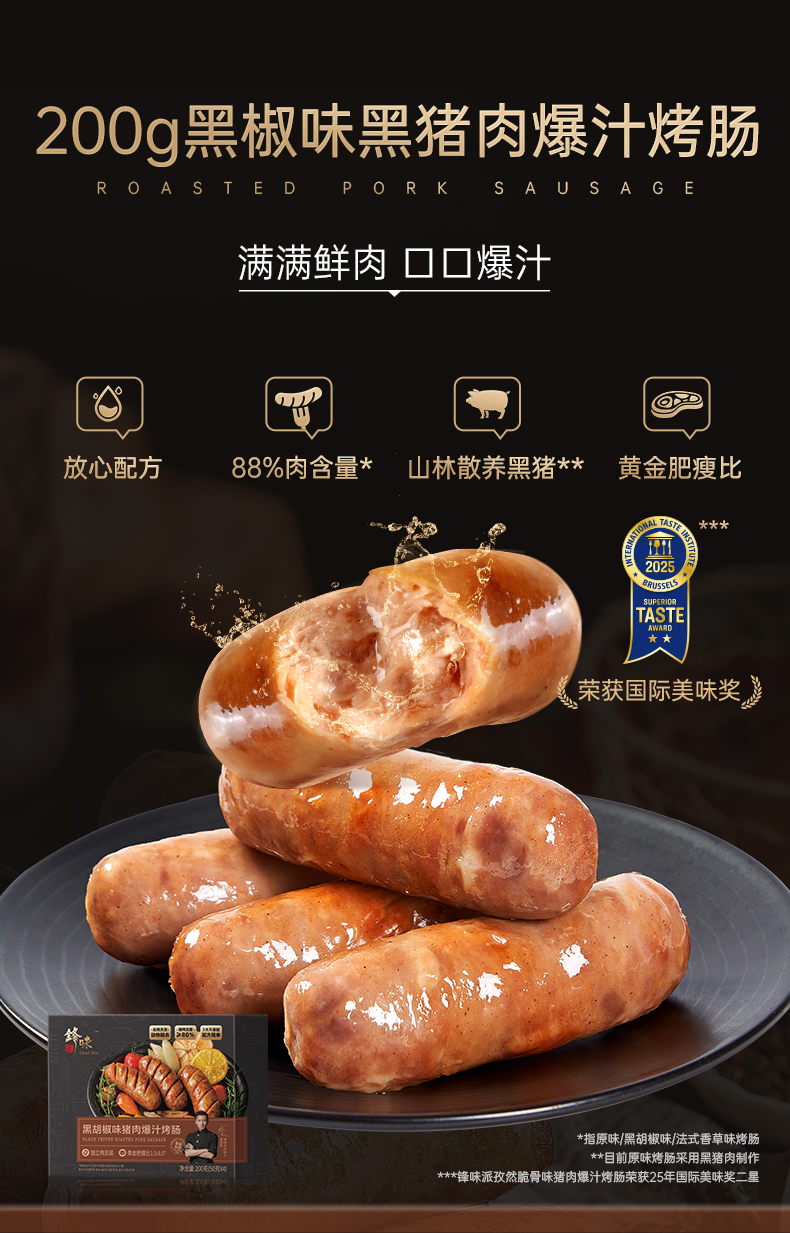【预售-12月29日配送】锋味派黑胡椒猪肉爆汁烤肠/1盒(4根,共200g)生产日期:25年9月