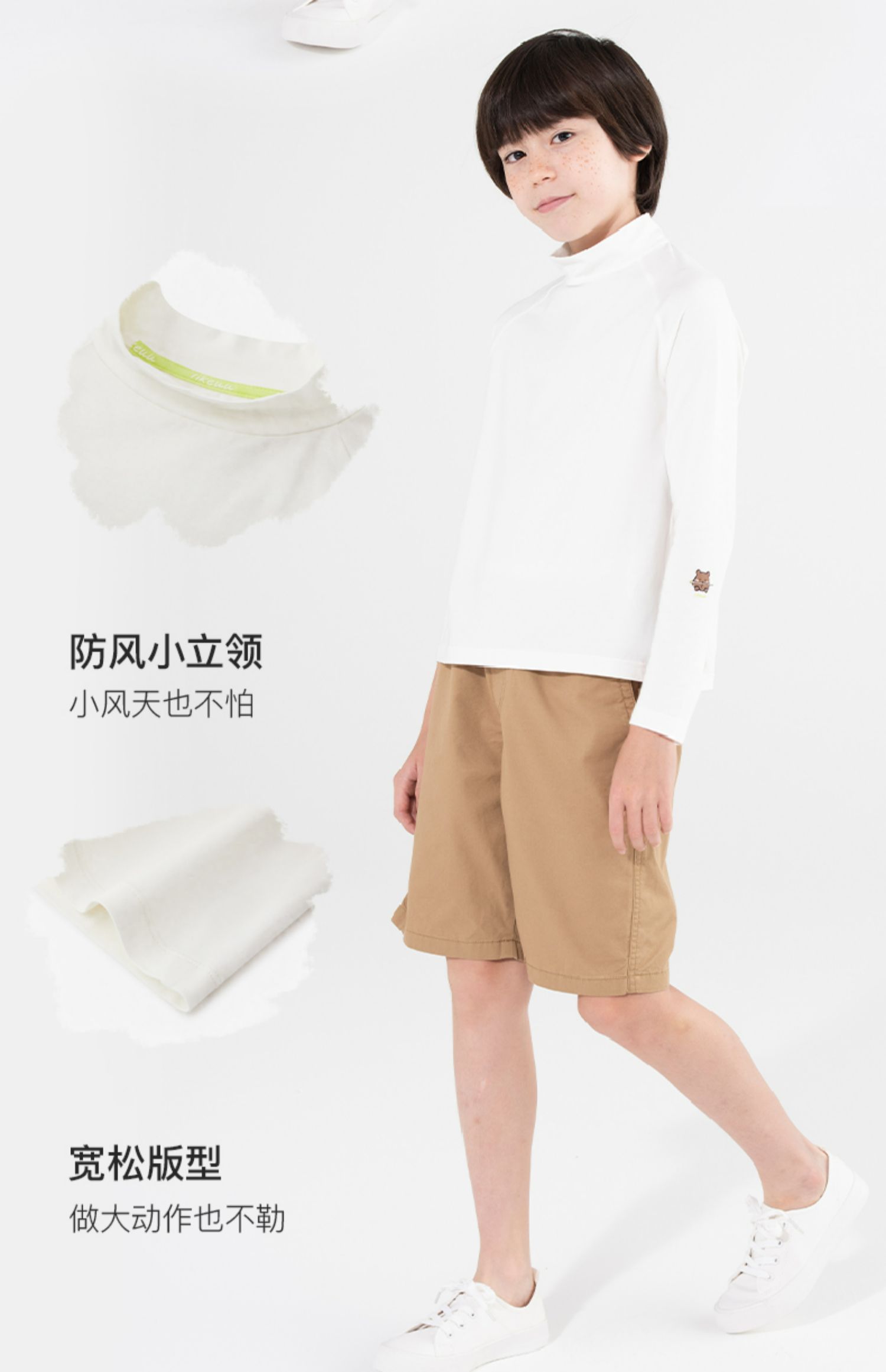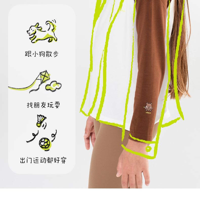 likeuu好奇小熊艺术家插肩袖印花T恤立领打底运动防风纯色拼色ZY