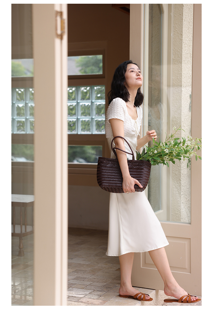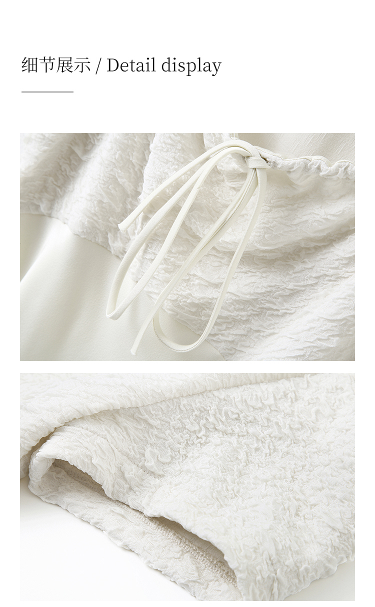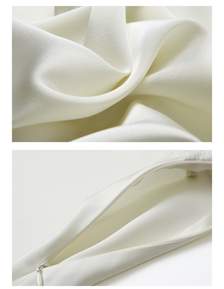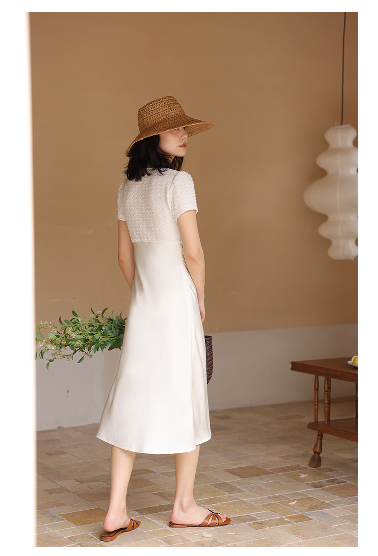 HeyDress方领连衣裙女夏季拼接设计感缎面白色气质小众裙子