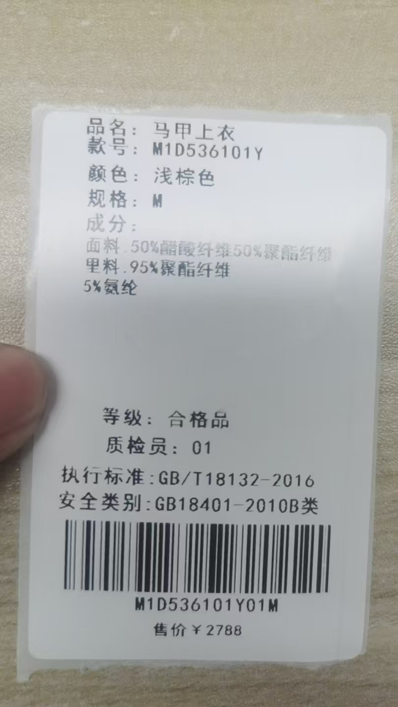 面料:50%醋酸纤维50%聚酯纤维 里料:95%聚酯纤维 5%氨纶