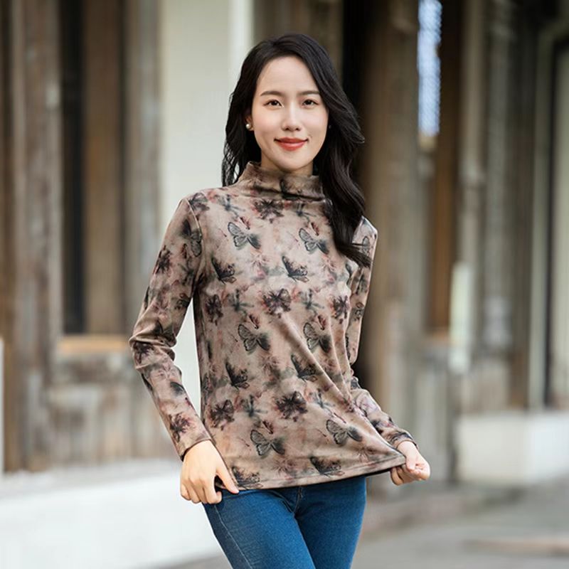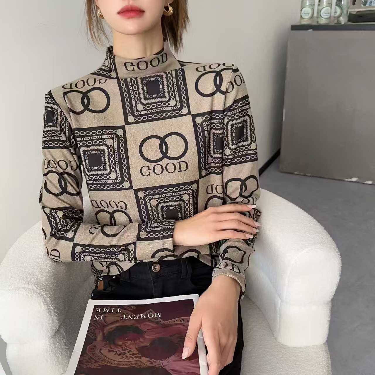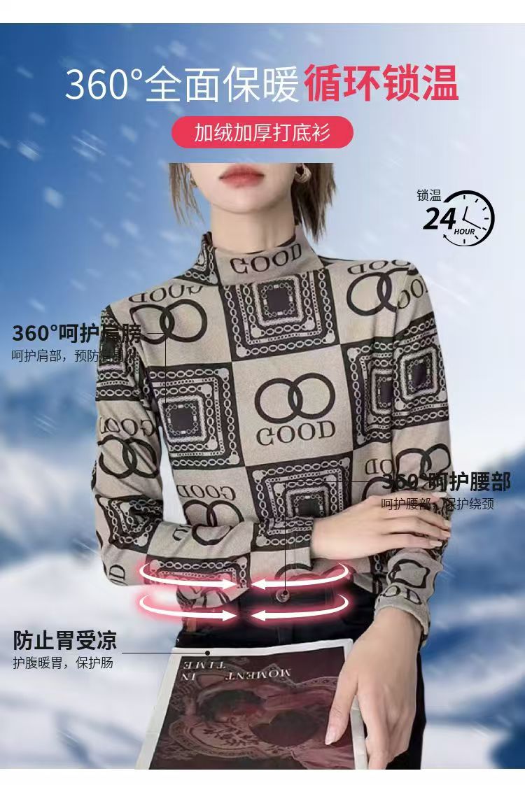 【现货直发】秋冬女新款半高领德绒双面花色百搭修身气质保暖上衣-喜出