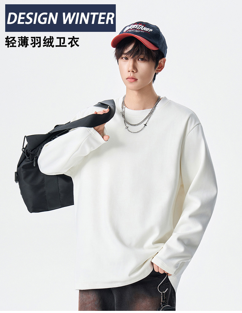 J.S.WANGZI 圆领轻薄鹅绒卫衣 JS5662 90%绒子含量;男女同款,防风领口设计,全方位保暖;不臃肿立体有型;