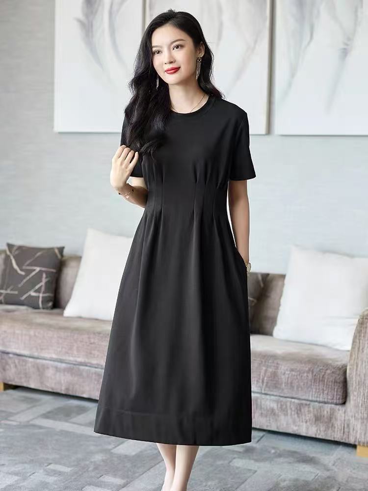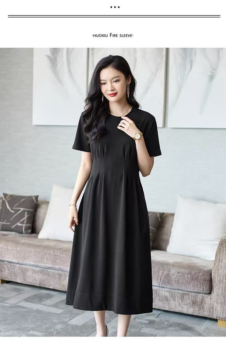 中秋大力度清仓~(不支持退)X7608 古泥/亦文压皱32%天丝小黑裙压皱气质宽边连衣裙-喜出