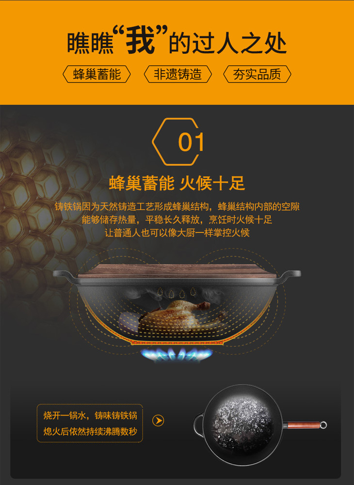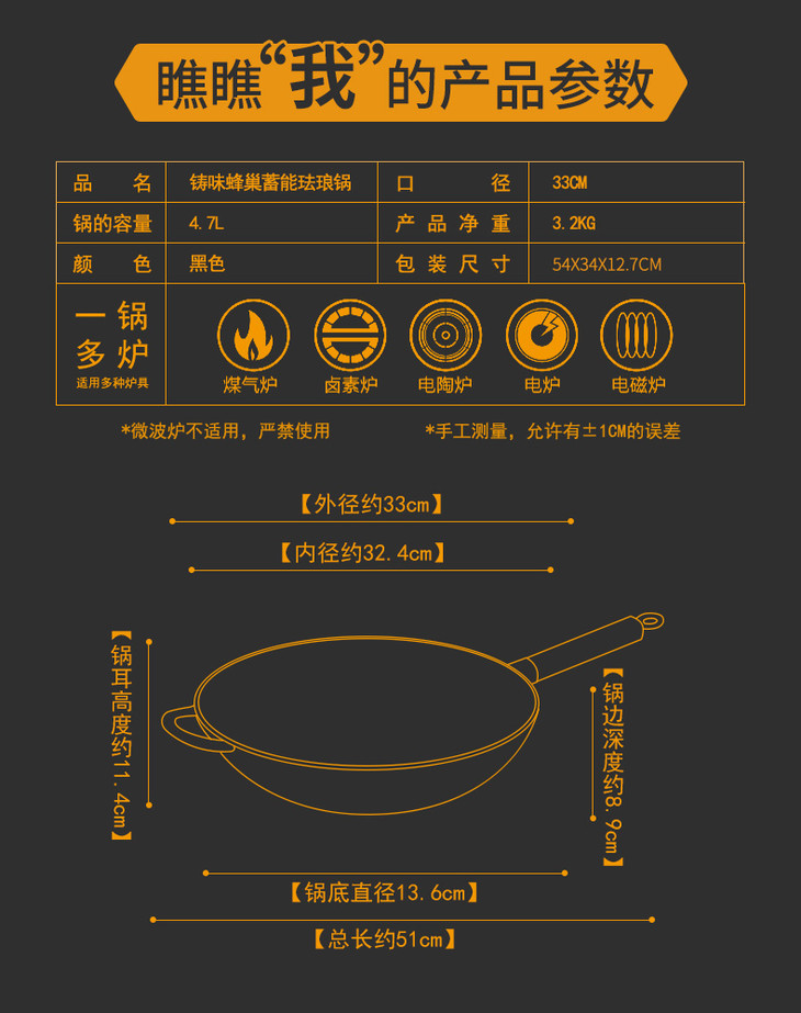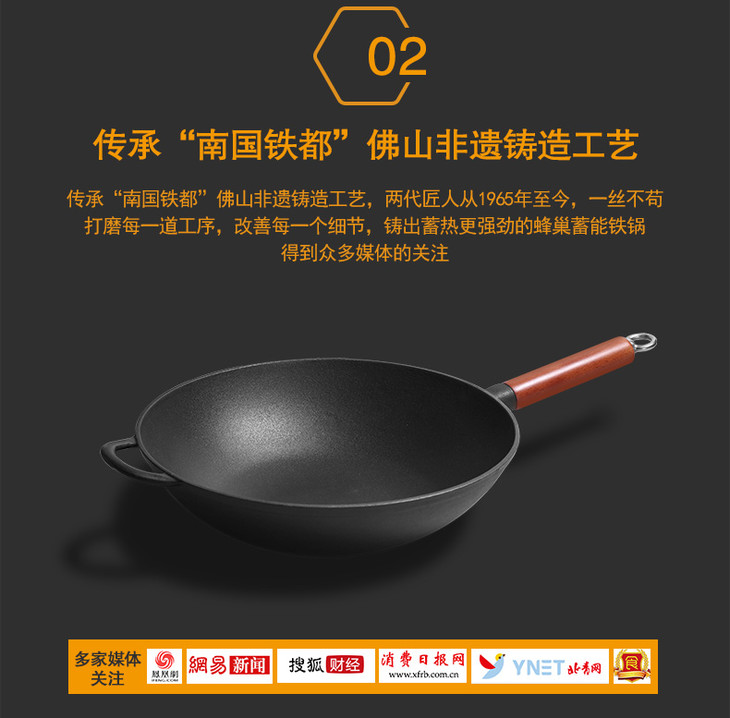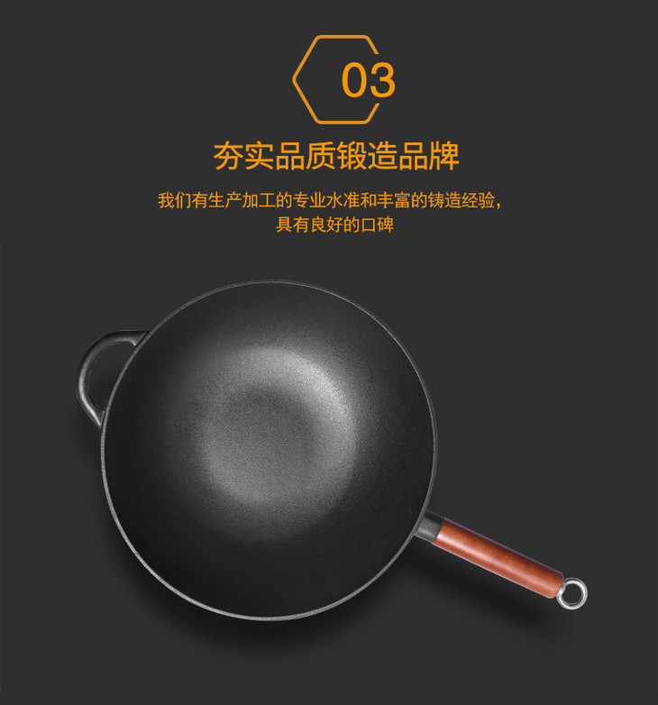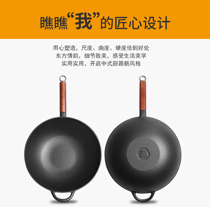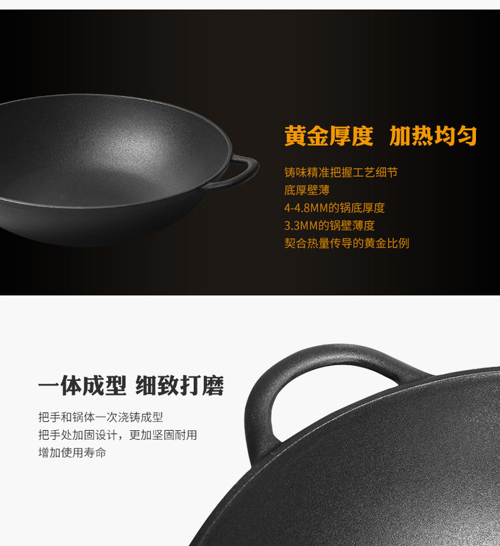 铸味铸铁锅33cm珐琅平底炒锅不易生锈老式家用生铁炒菜锅