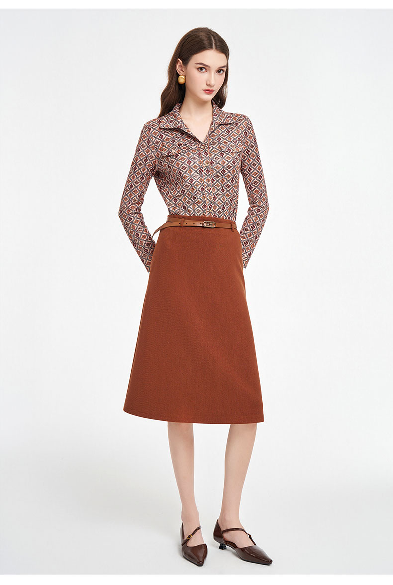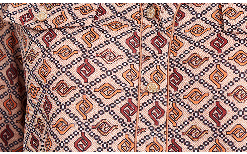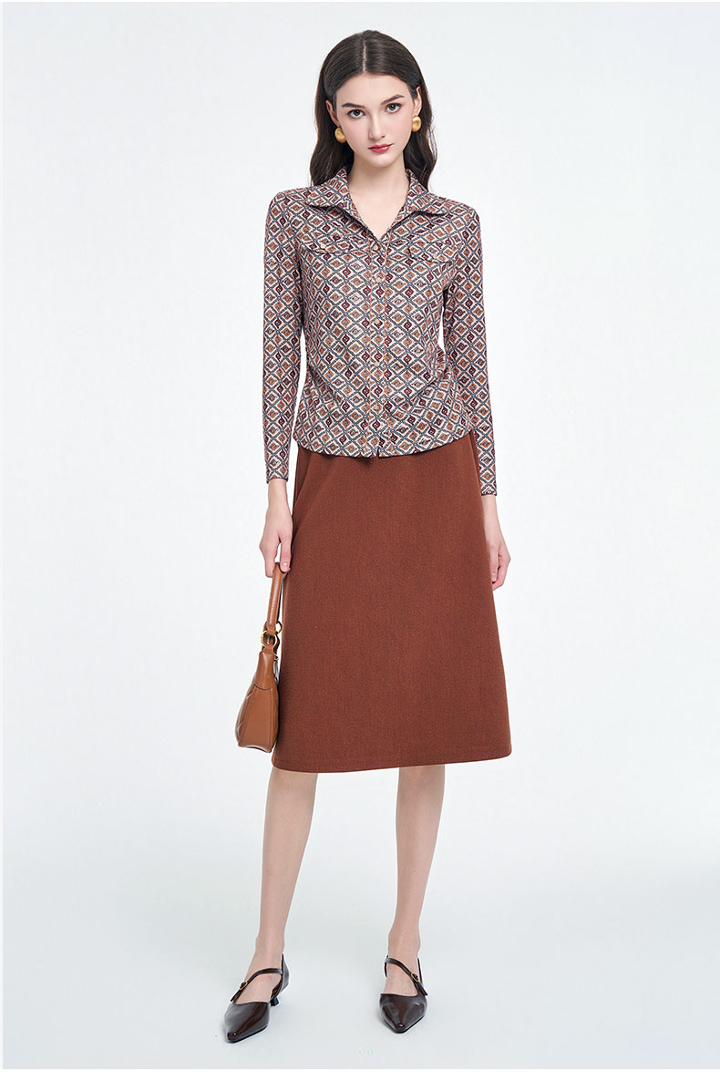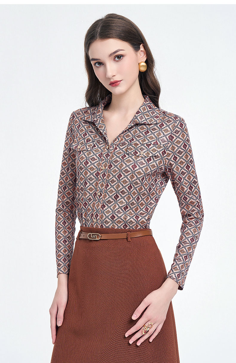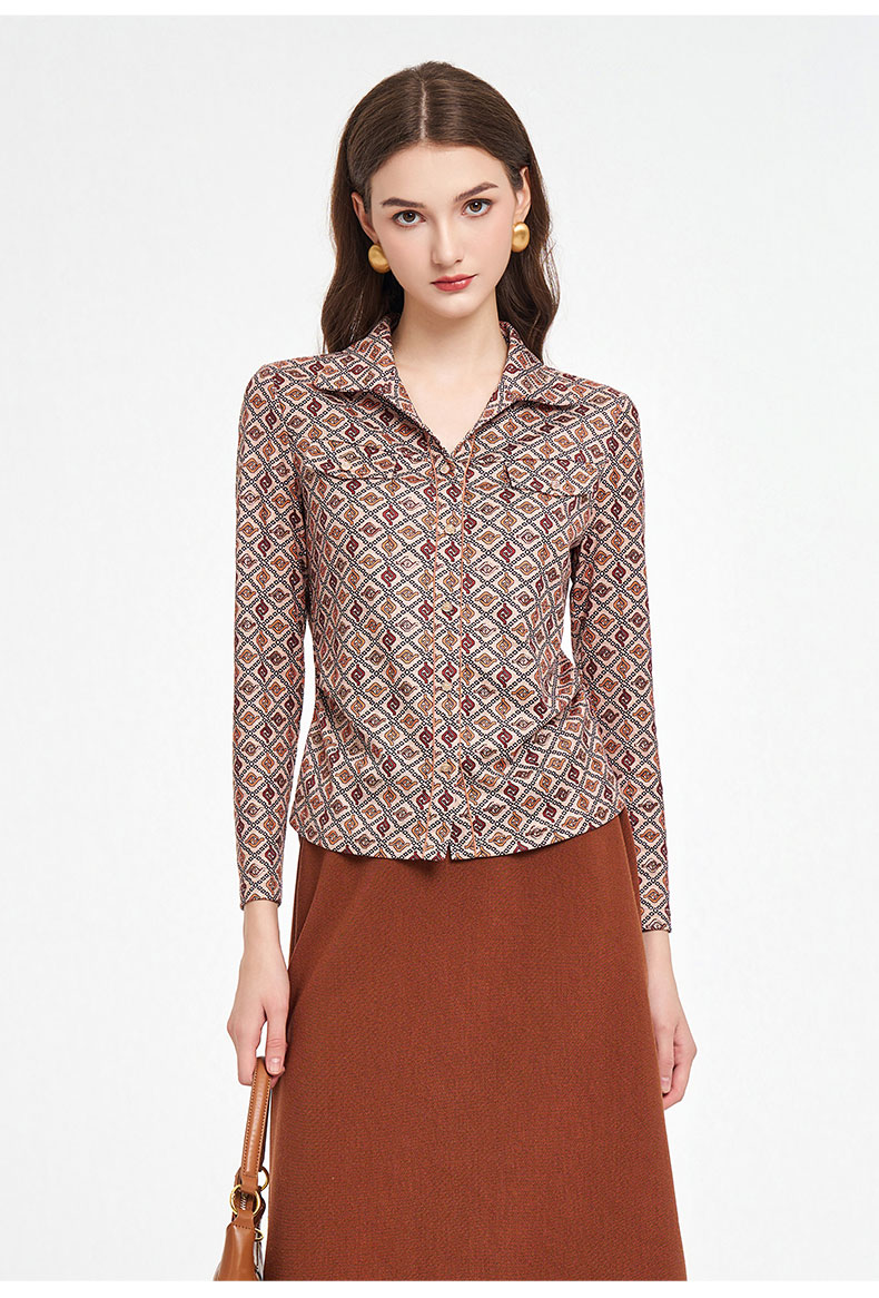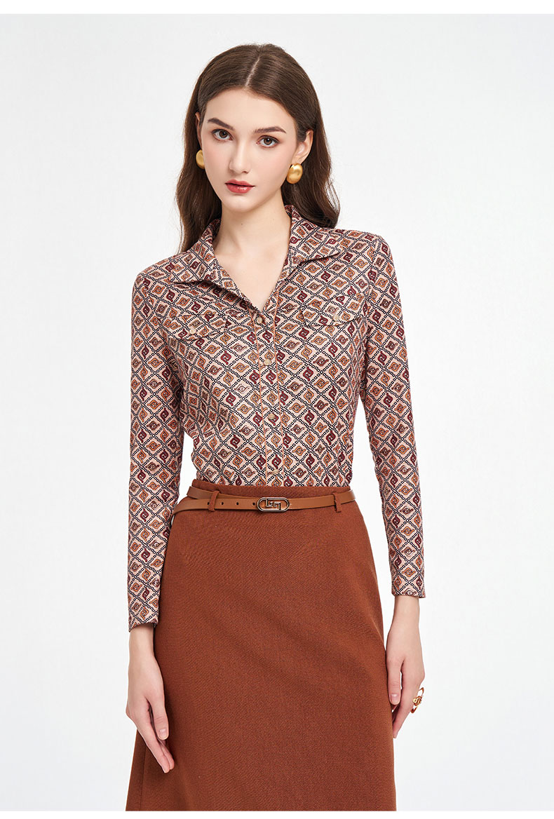 乔万尼2025秋季新品印花复古燕领长袖T恤衬衫ED3C326