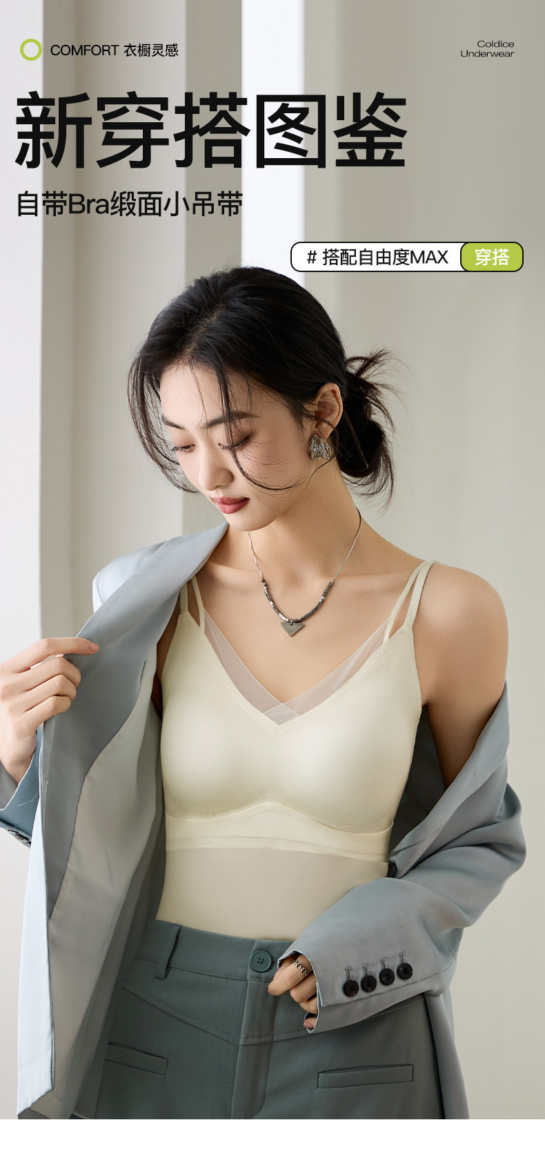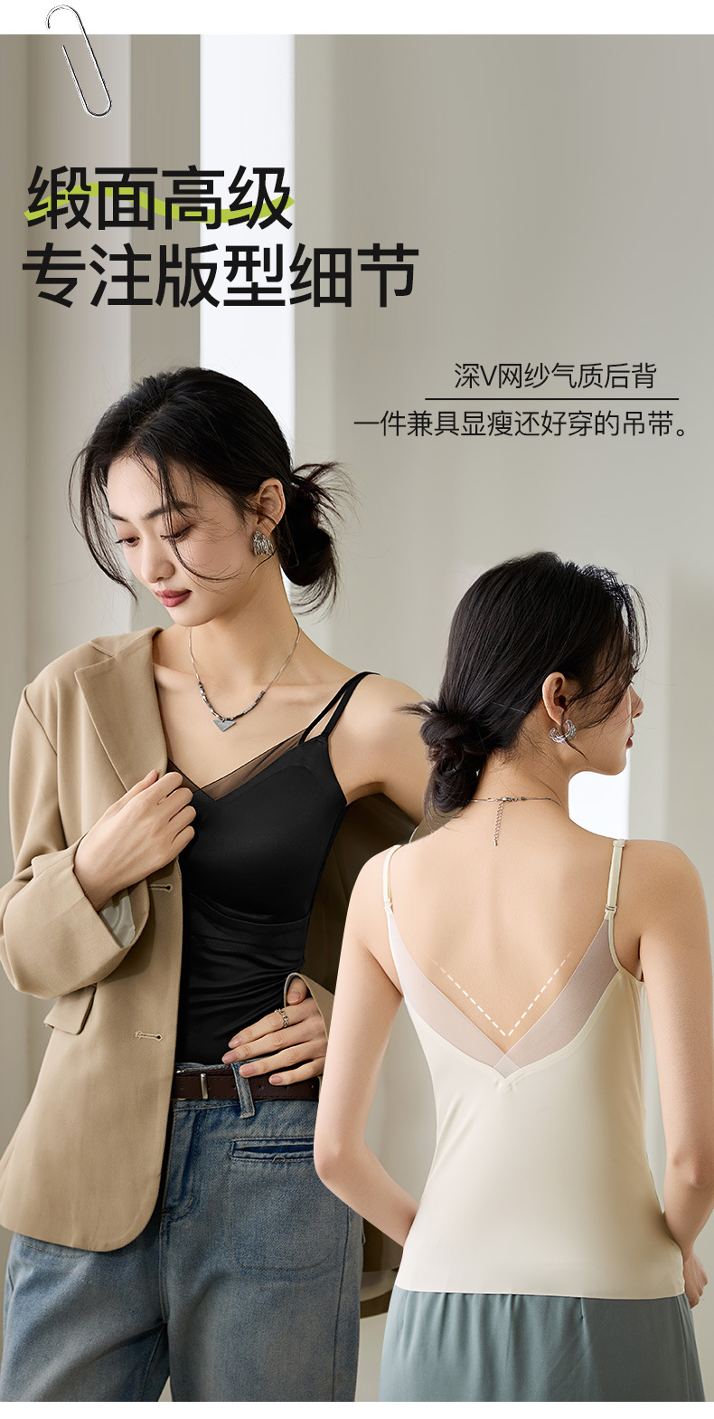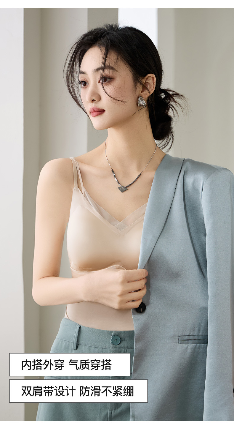 TZW-夏季缎面网纱内衣女薄款法式吊带背心
