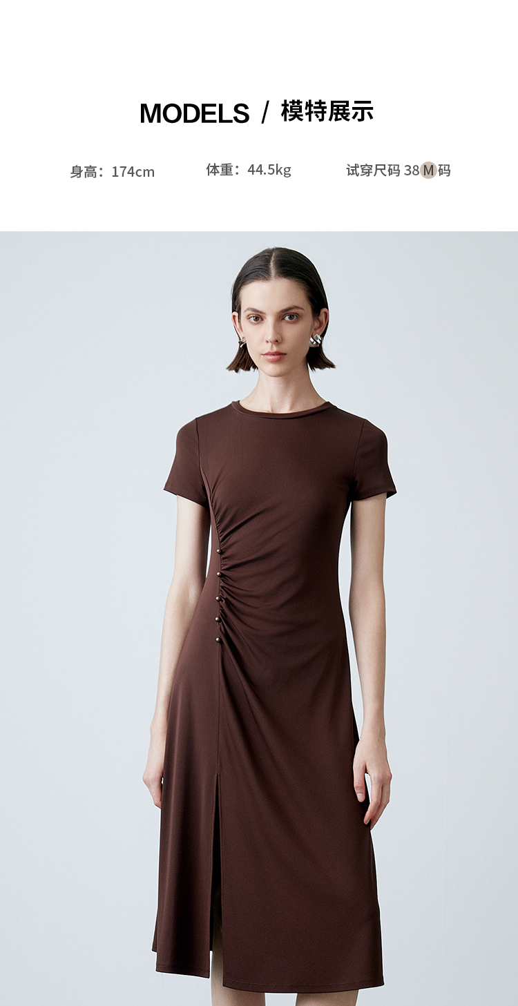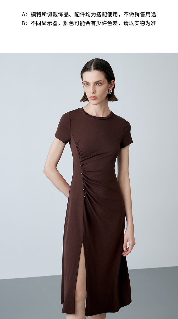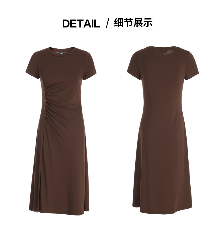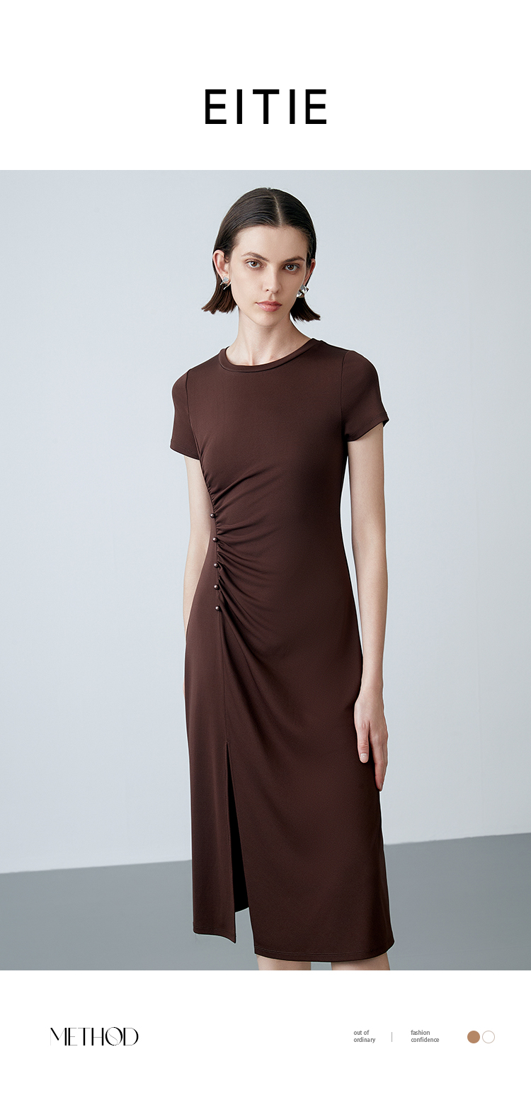 先下架-EITIE爱特爱夏季新款气质通勤高级压褶显瘦修身连衣裙7807547