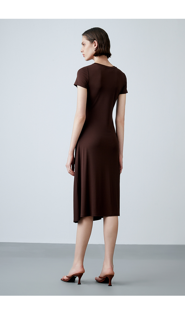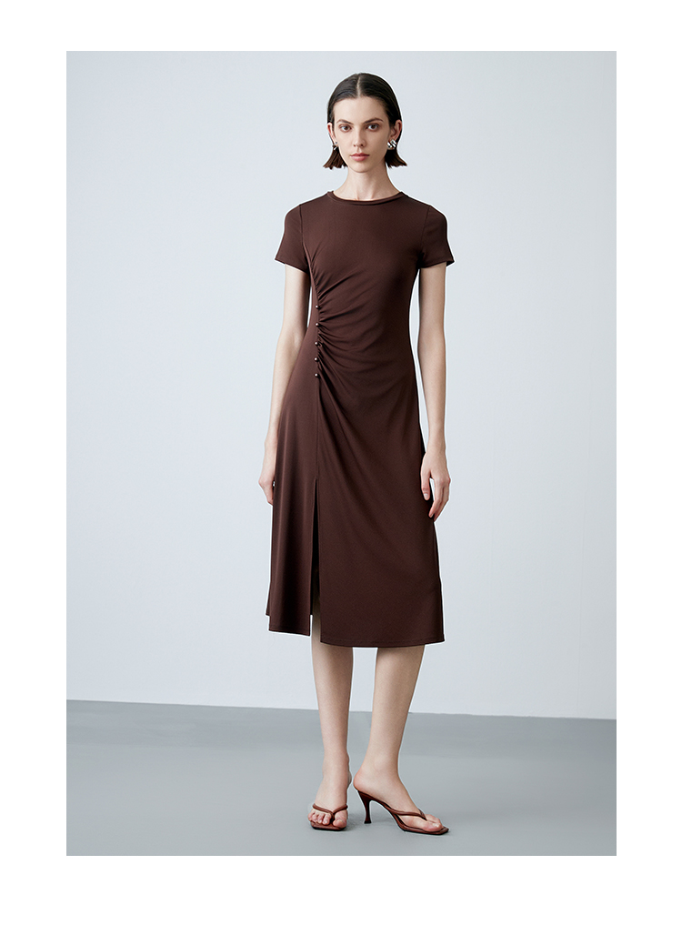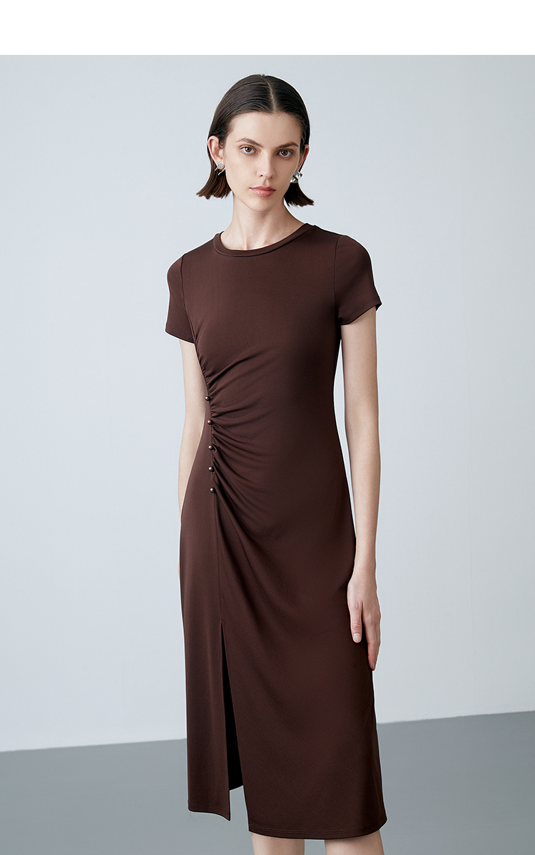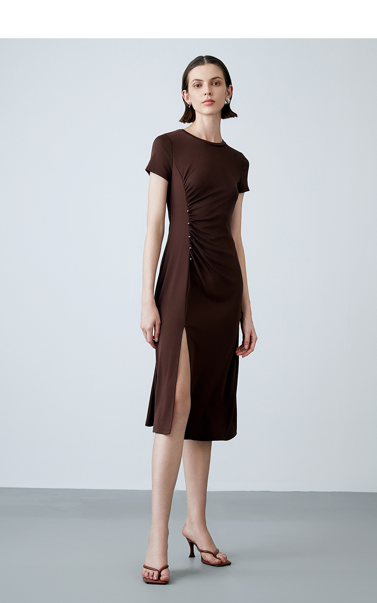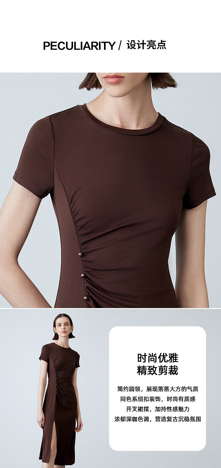 先下架-EITIE爱特爱夏季新款气质通勤高级压褶显瘦修身连衣裙7807547