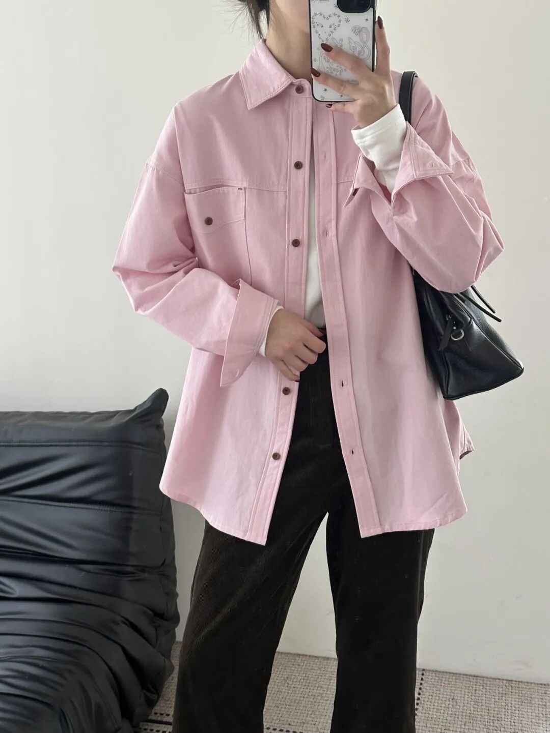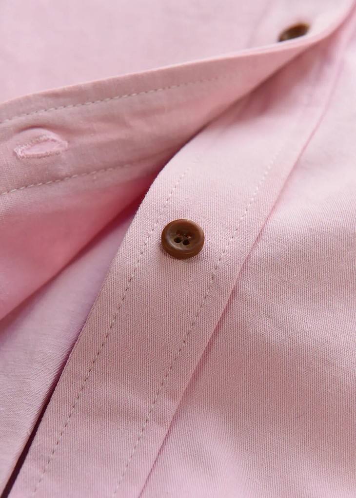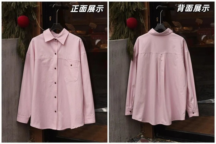 市面上粉色衬衫很多,但像这件连调色都这么较真的,没有多少设计师能做到。