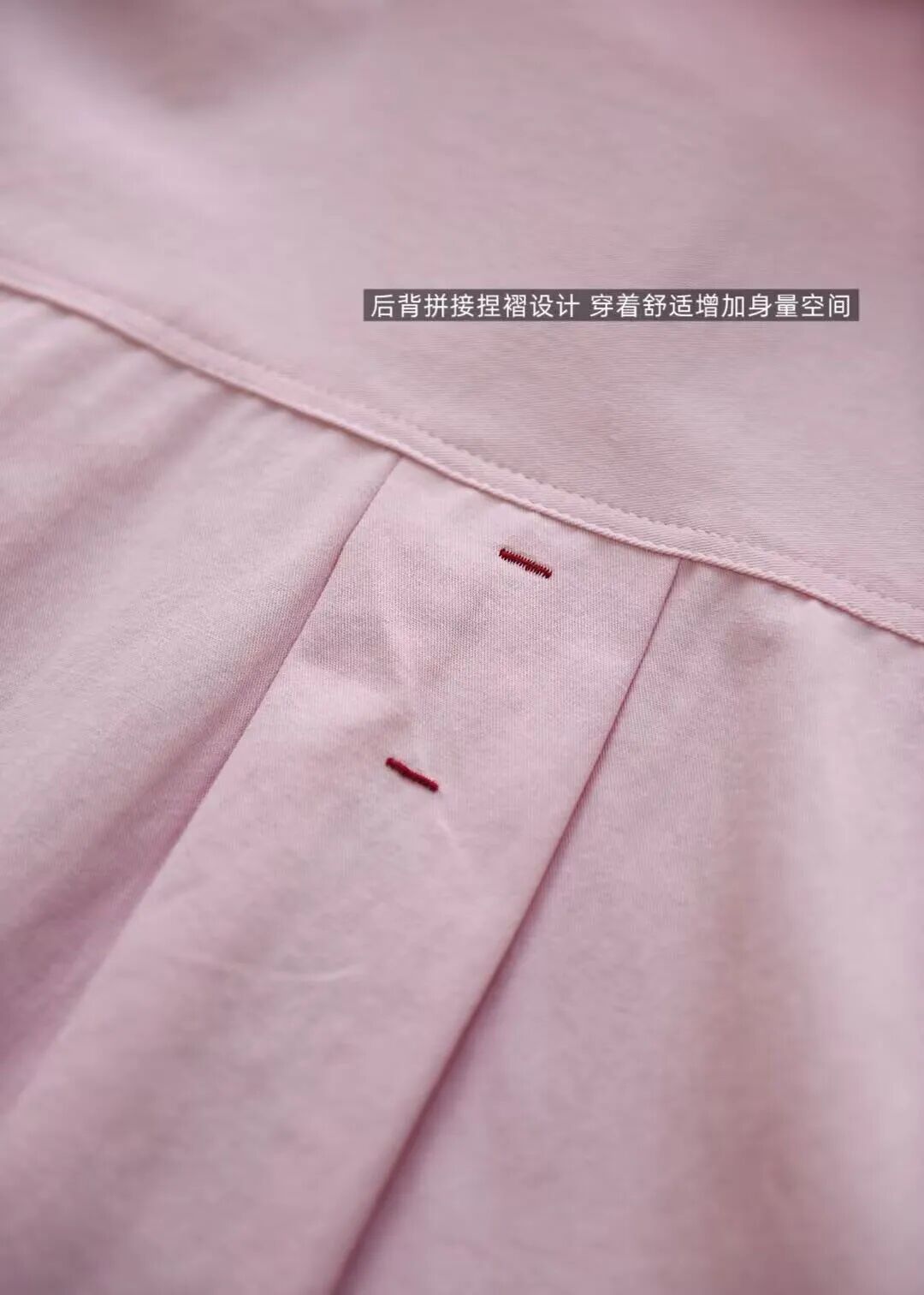 后背拼接捏褶设计,增加身量空间,穿着舒适、松弛。