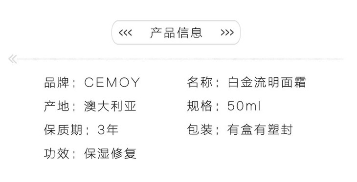 现货~澳洲cemoy白金流明超级复活面霜保湿锁水修护滋润精华霜50ml~广东发货