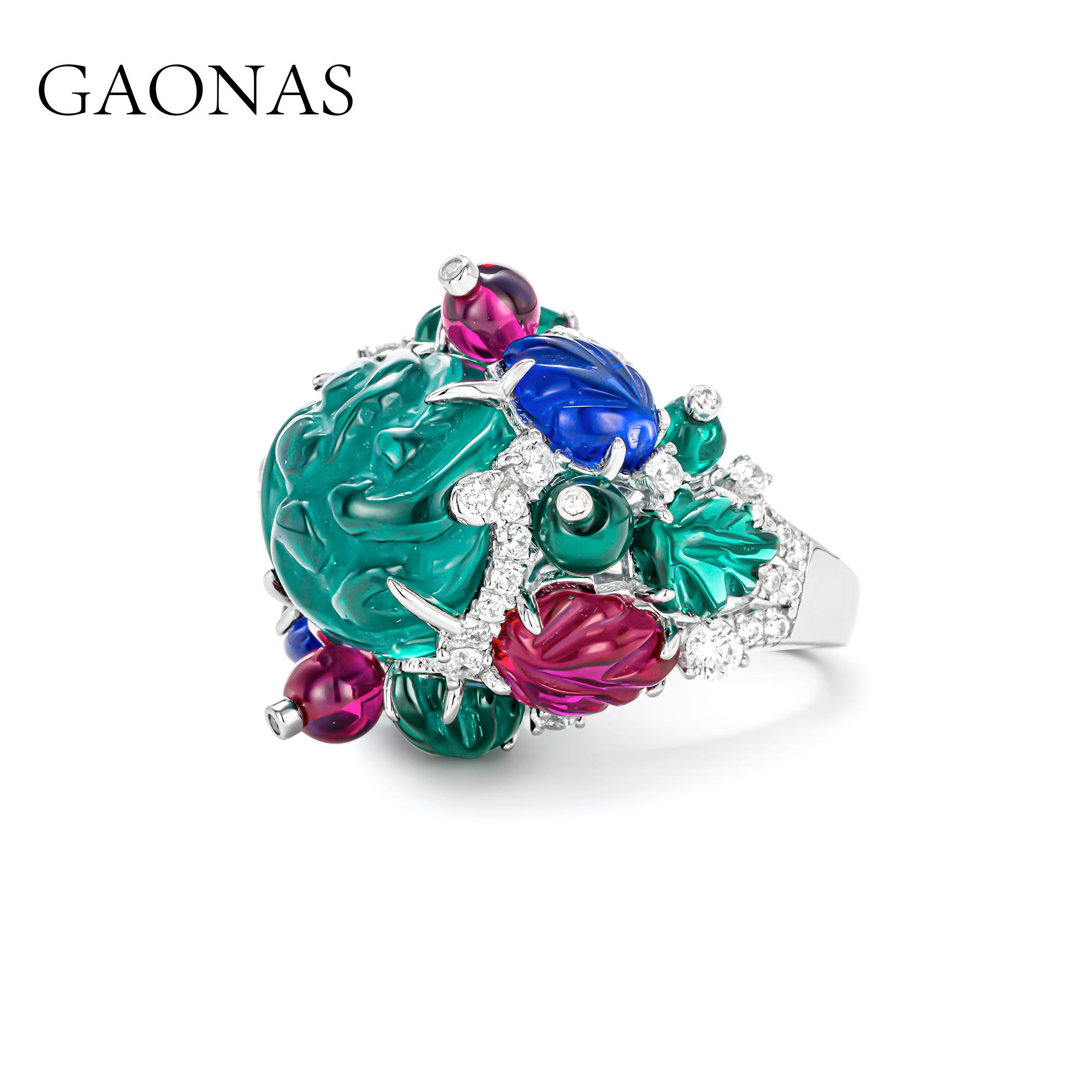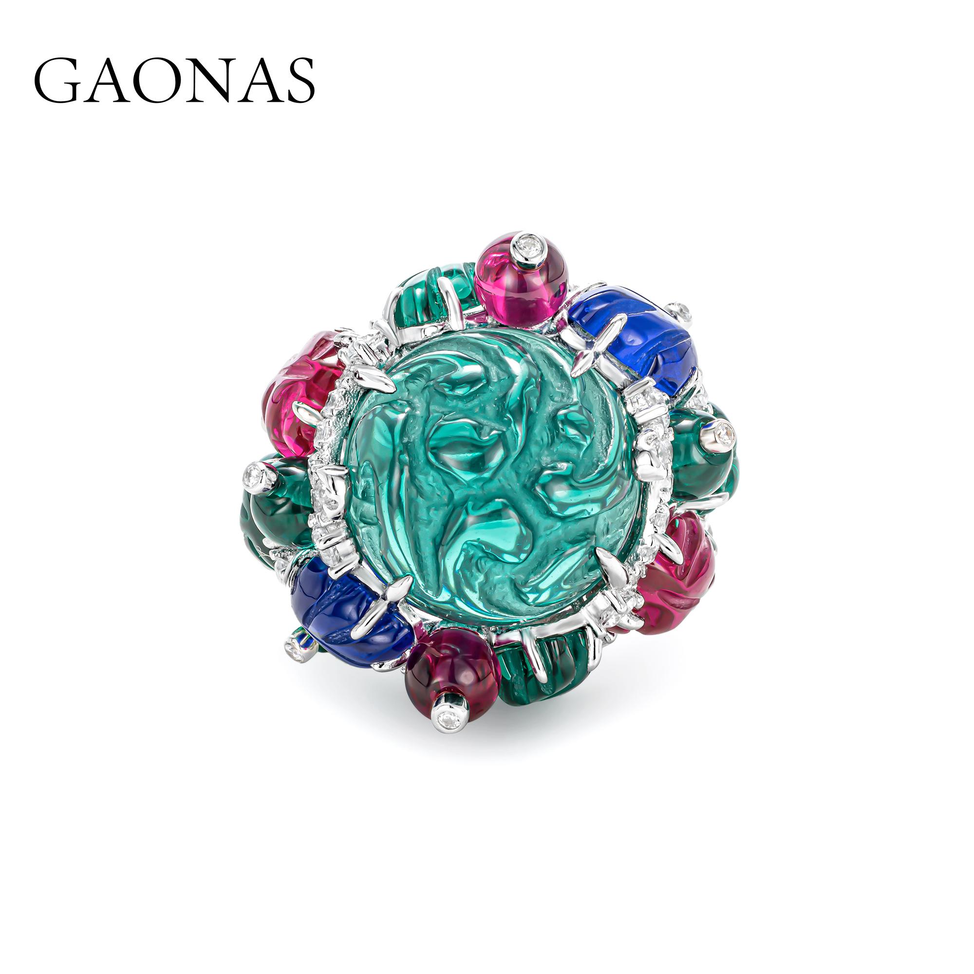 GAONAS高纳仕水果锦囊戒指高珠Tutti Frutti霸气重磅晚宴人造宝石