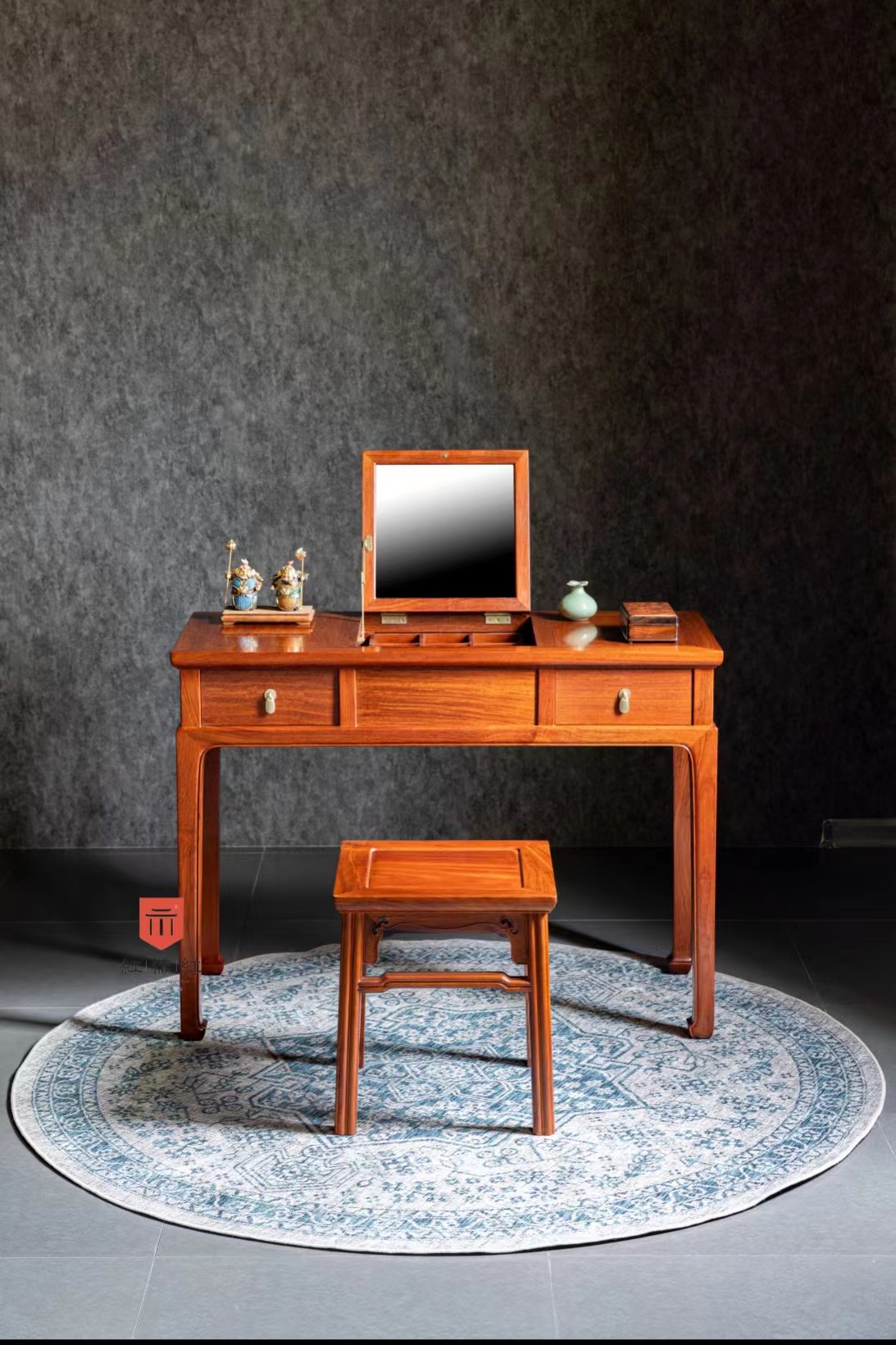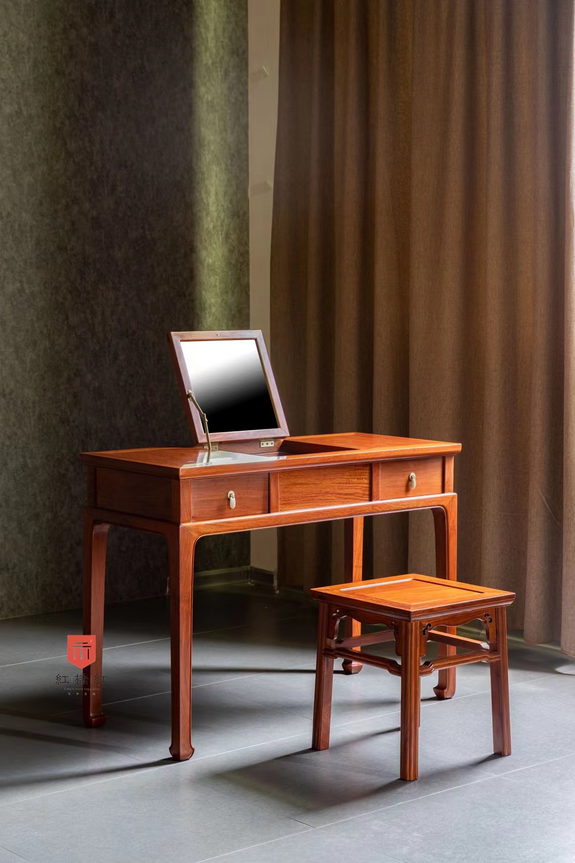 以传统文房实用器经改良而成卧室、闺房梳妆之用,亦可兼做小书桌、小课桌使用。