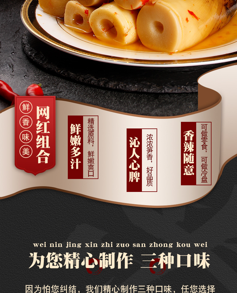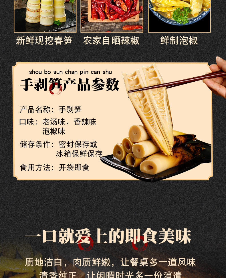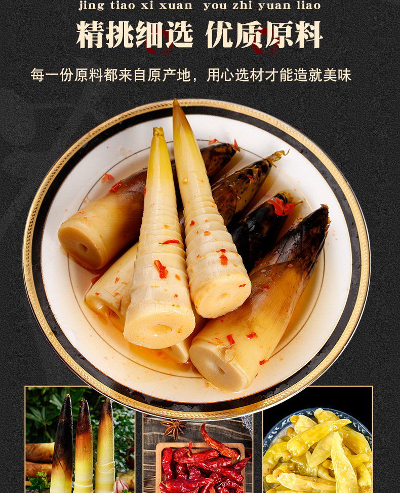 手剥笋开袋即食网红手拨笋雷竹笋泡椒尖酸笋500g香辣休闲零食酸笋