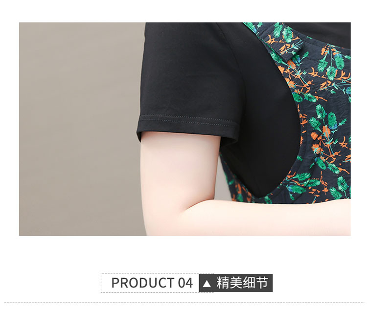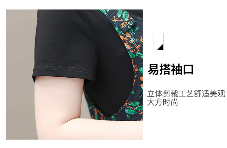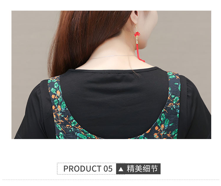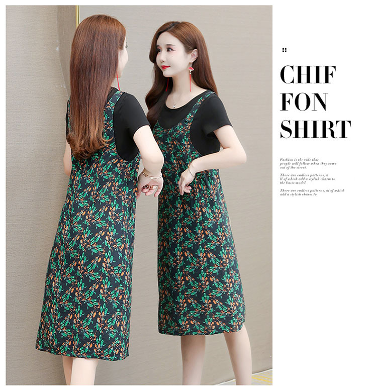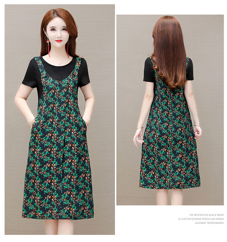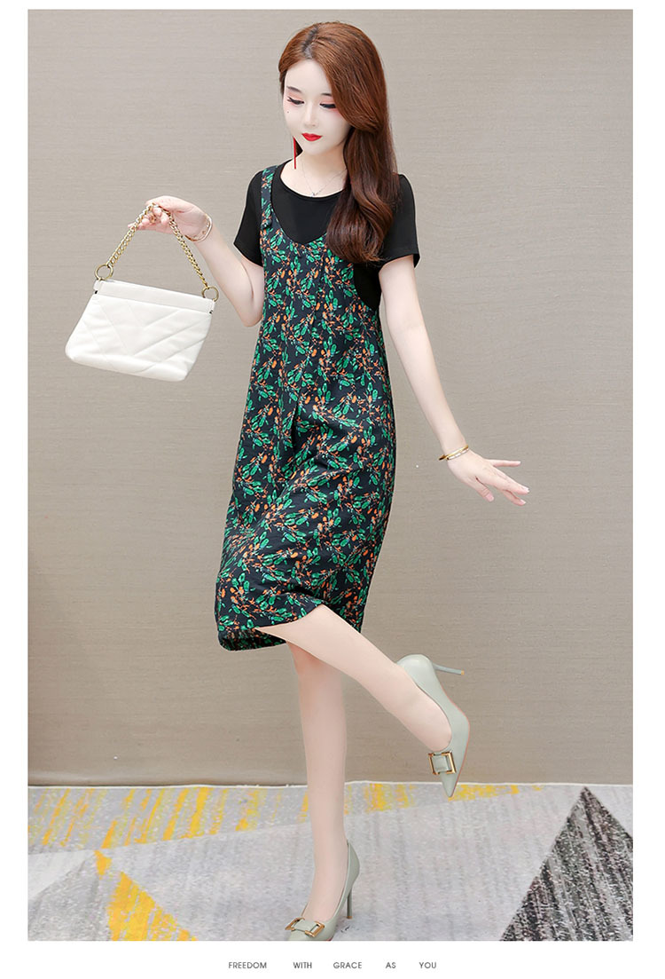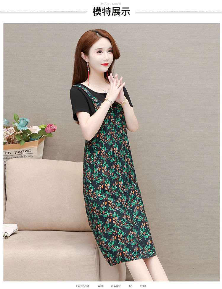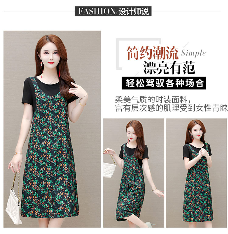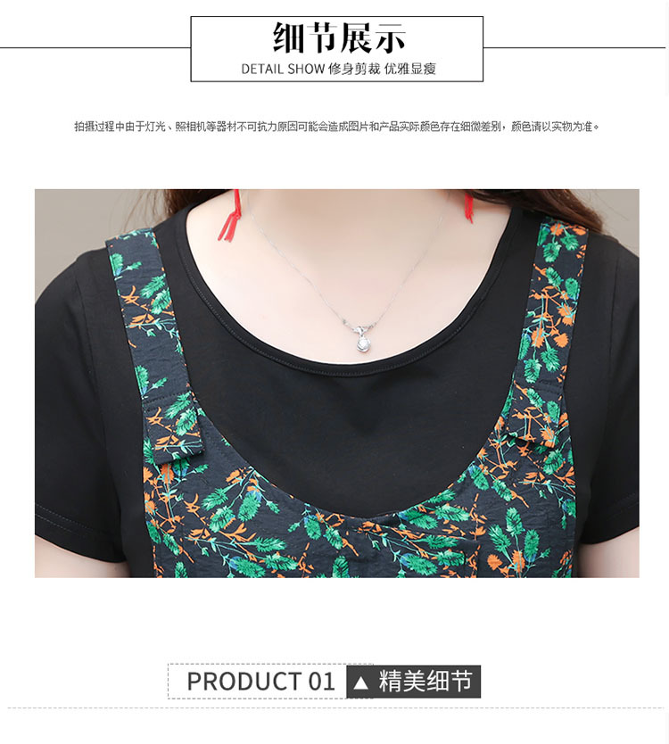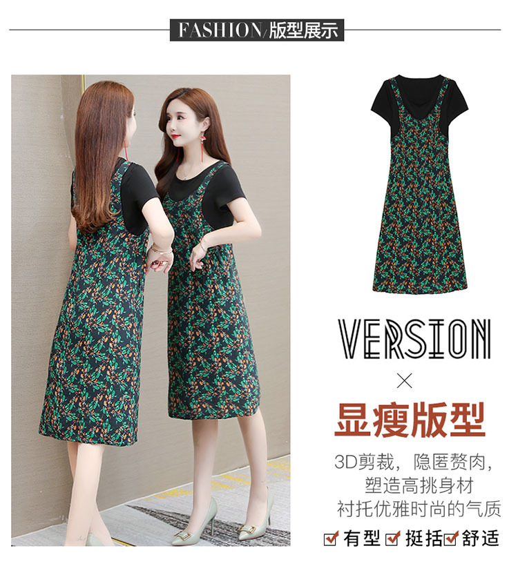 时尚假两件套装连衣裙修身短袖气质减龄印花背带裙子