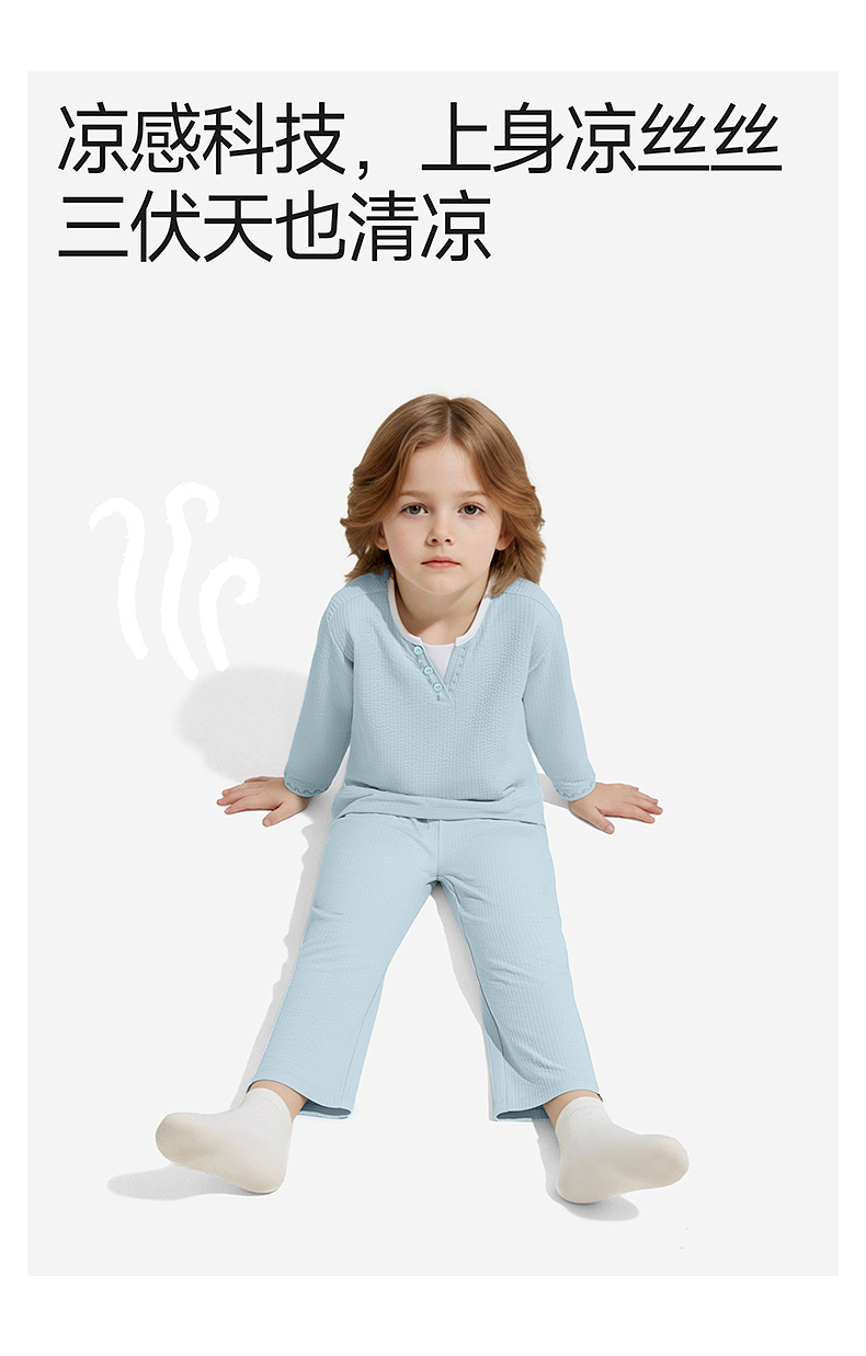 【商场同款】英氏童装儿童长袖凉感上衣男童睡衣春秋家居服新款